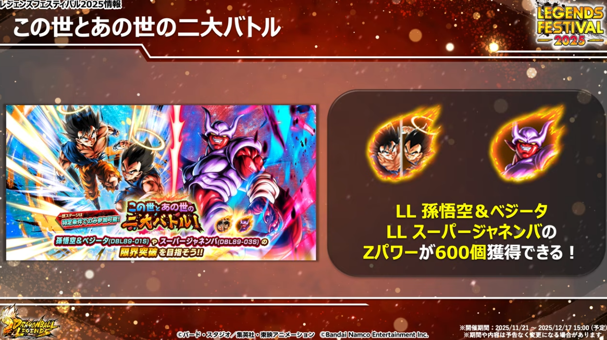 最新キャラ孫悟空&ベジータとジャネンバのZパワーが配布!