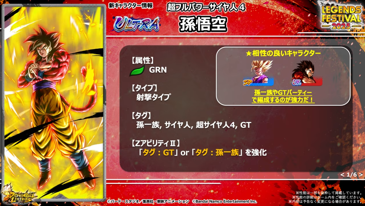 も、もうLL孫悟飯の不利属性出すの???。超フルパワーサイヤ人4孫悟空の属性はGRNとなります。