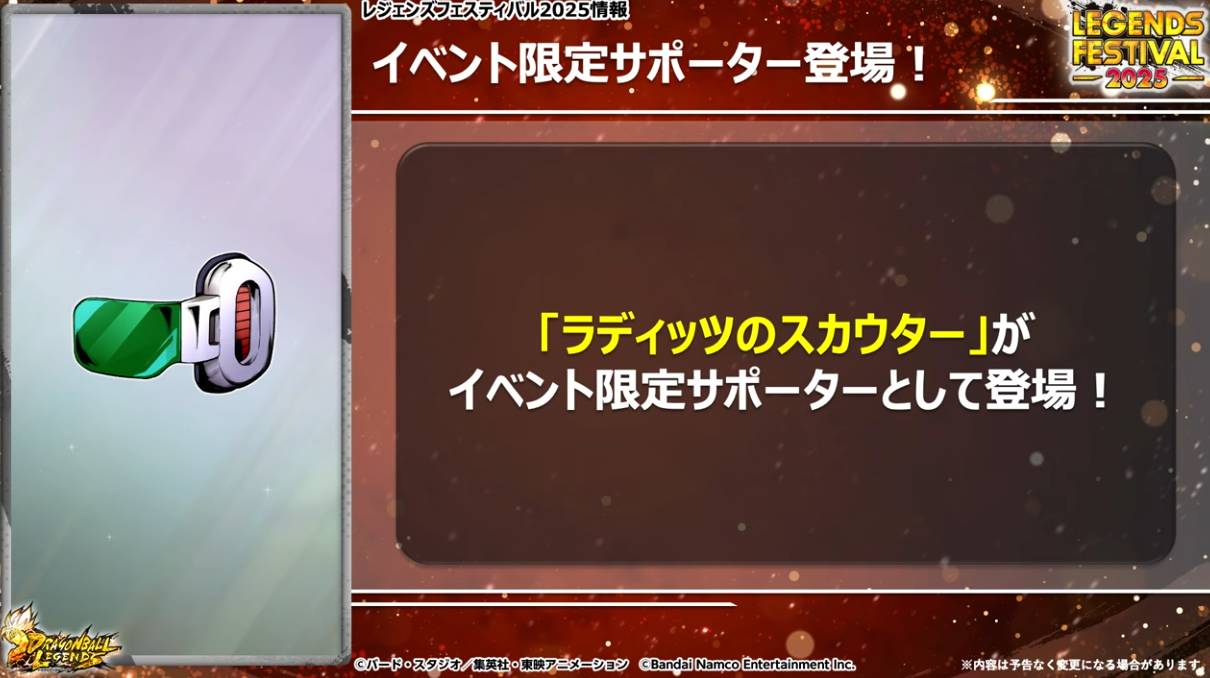 イベント限定のサポーター「ラディッツのスカウター」が初の実装。