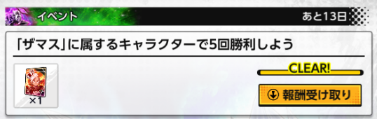 スリーブ【ザマスとゴクウブラック】はミッション「ザマス」に属するキャラクターで5回勝利しようをクリアで入手できます。