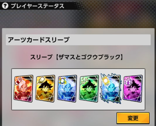 入手したアーツカードスリーブは「メニュー」→「その他」→「ステータス」→「アーツカードスリーブ」で変更しましょう。