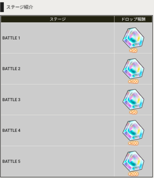 | ステージ | ドロップ報酬 |