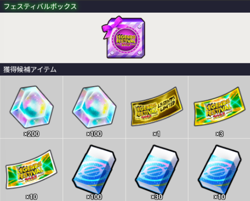 レジェンズフェスティバルを記念して、ランダム形式アイテム「フェスティバルボックス」が登場!