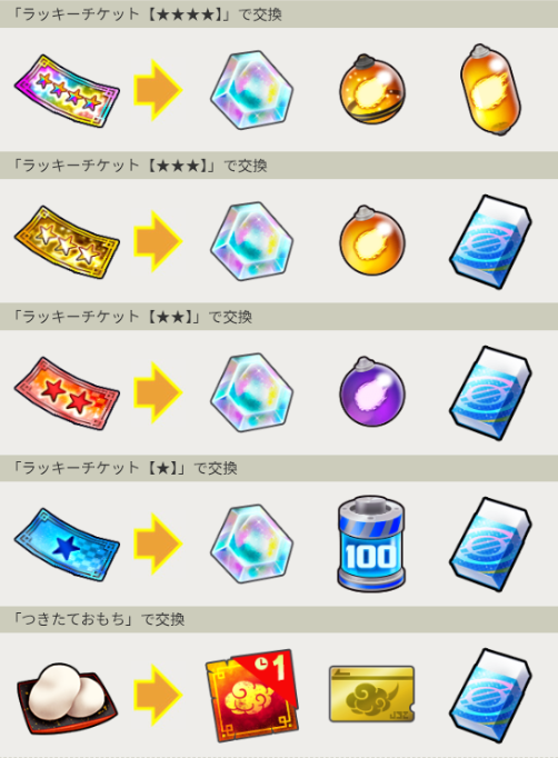 ラッキーチケットを豪華報酬と交換しよう!今回は特別につきたておもちで「冒険スロットキー」が交換可能!
