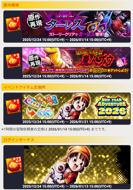 ~2025/1/21 15:00 ※1時間の冒険依頼書の交換は 2026/1/21 15:00まで |