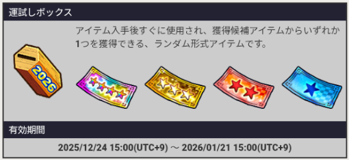 レアアイテム「運試しボックス」からはどれかのチケットを1枚入手!