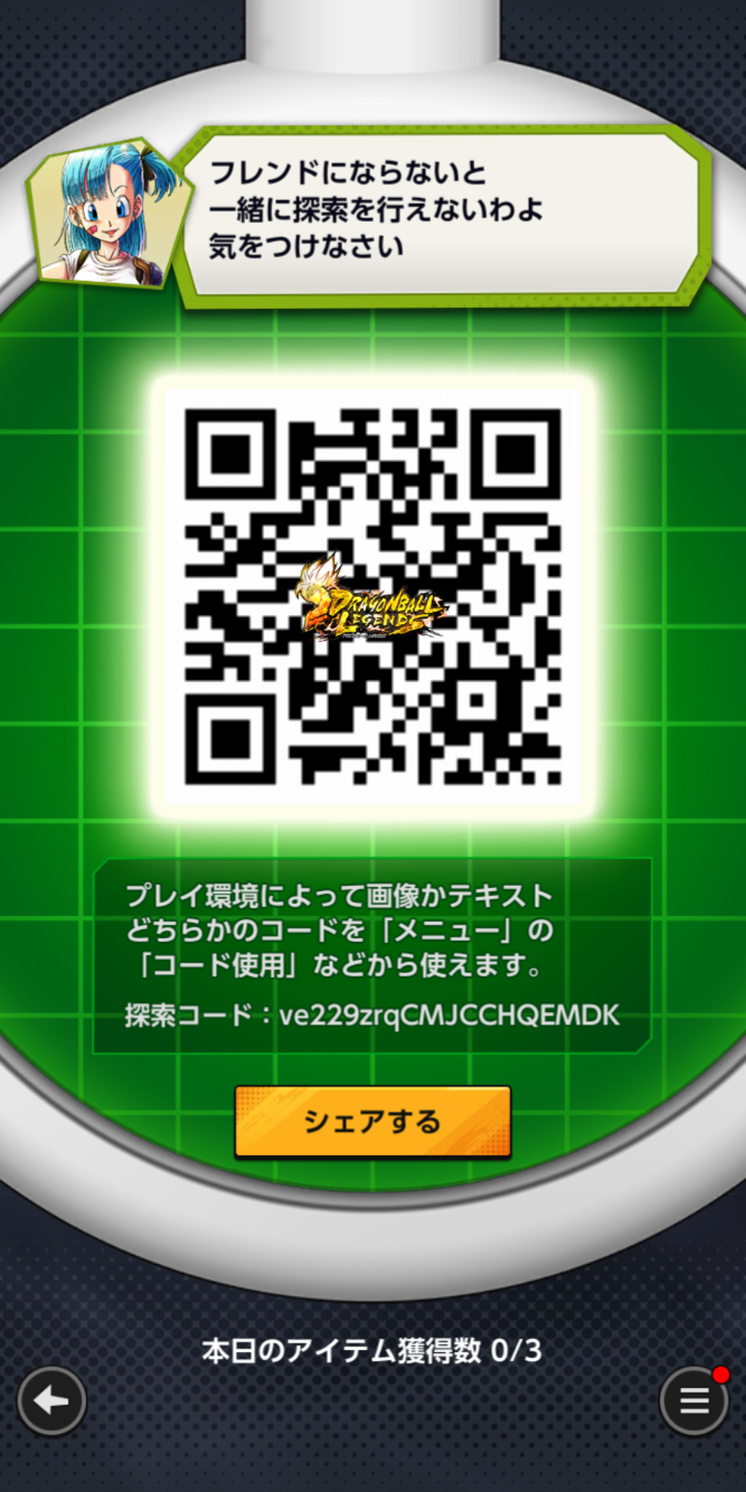 • フレンドのQRコードを読み込む事でドラゴンボールを探索できる