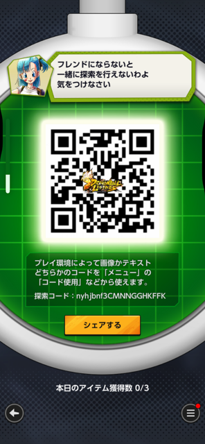 • フレンドのQRコードを読み込む事でドラゴンボールを探索できる