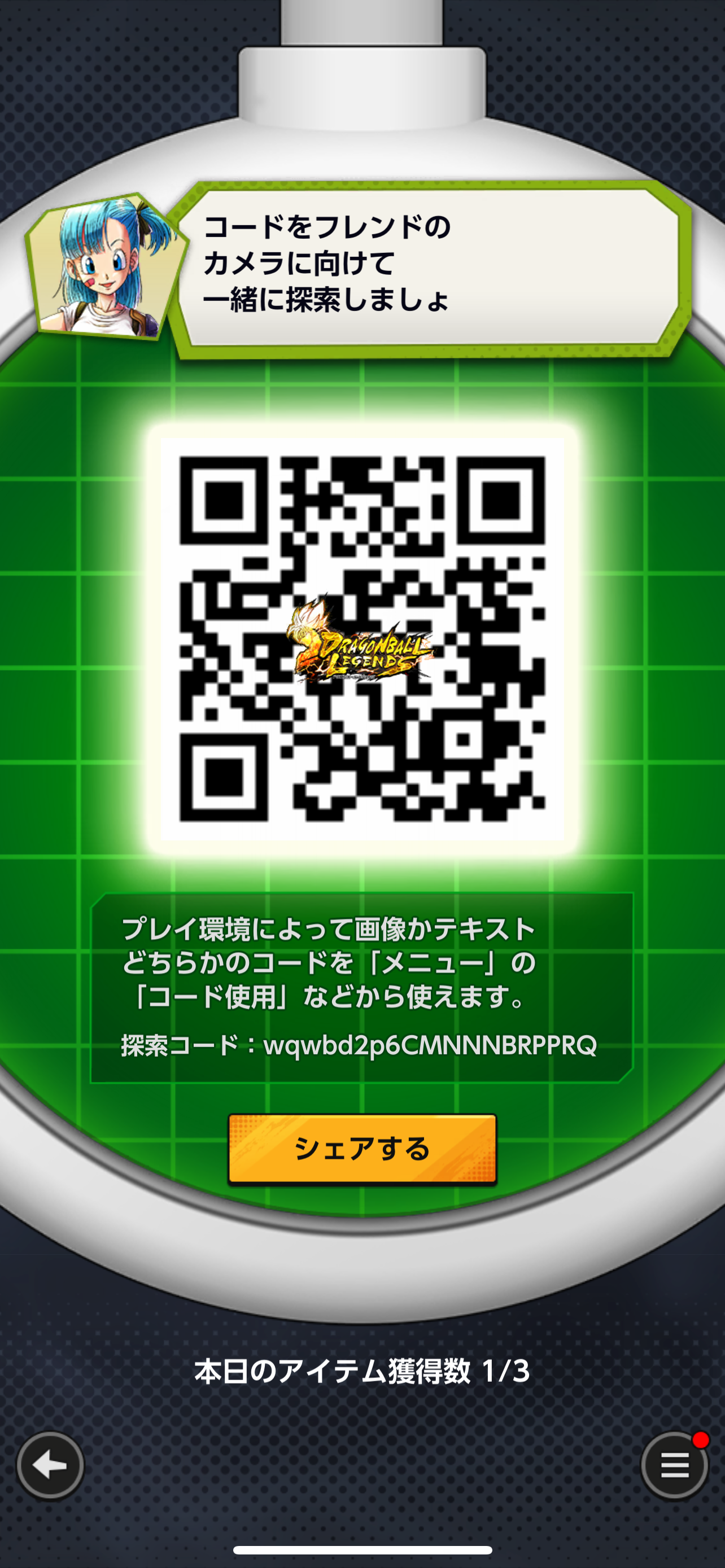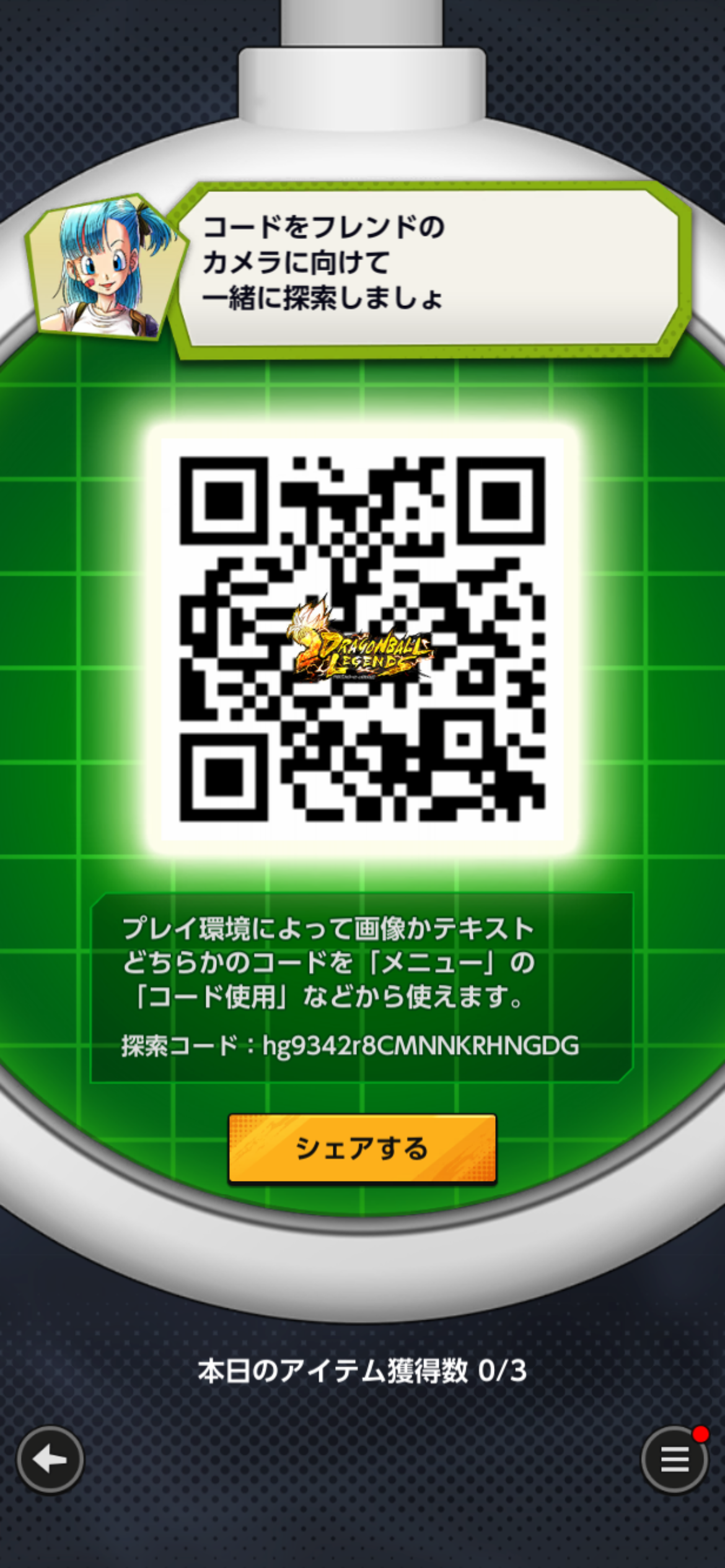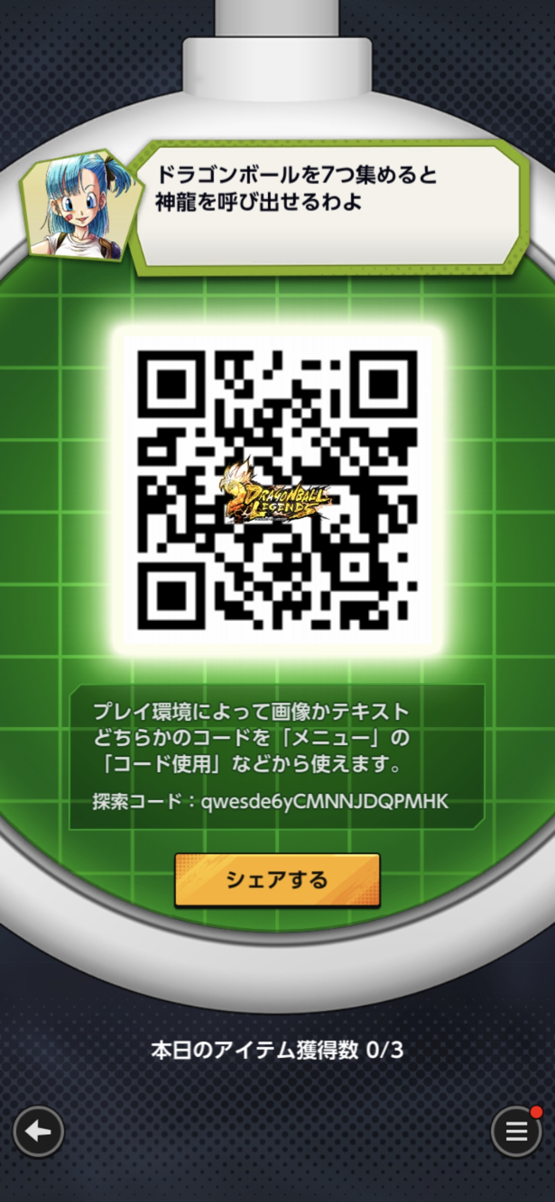 • フレンドのQRコードを読み込む事でドラゴンボールを探索できる