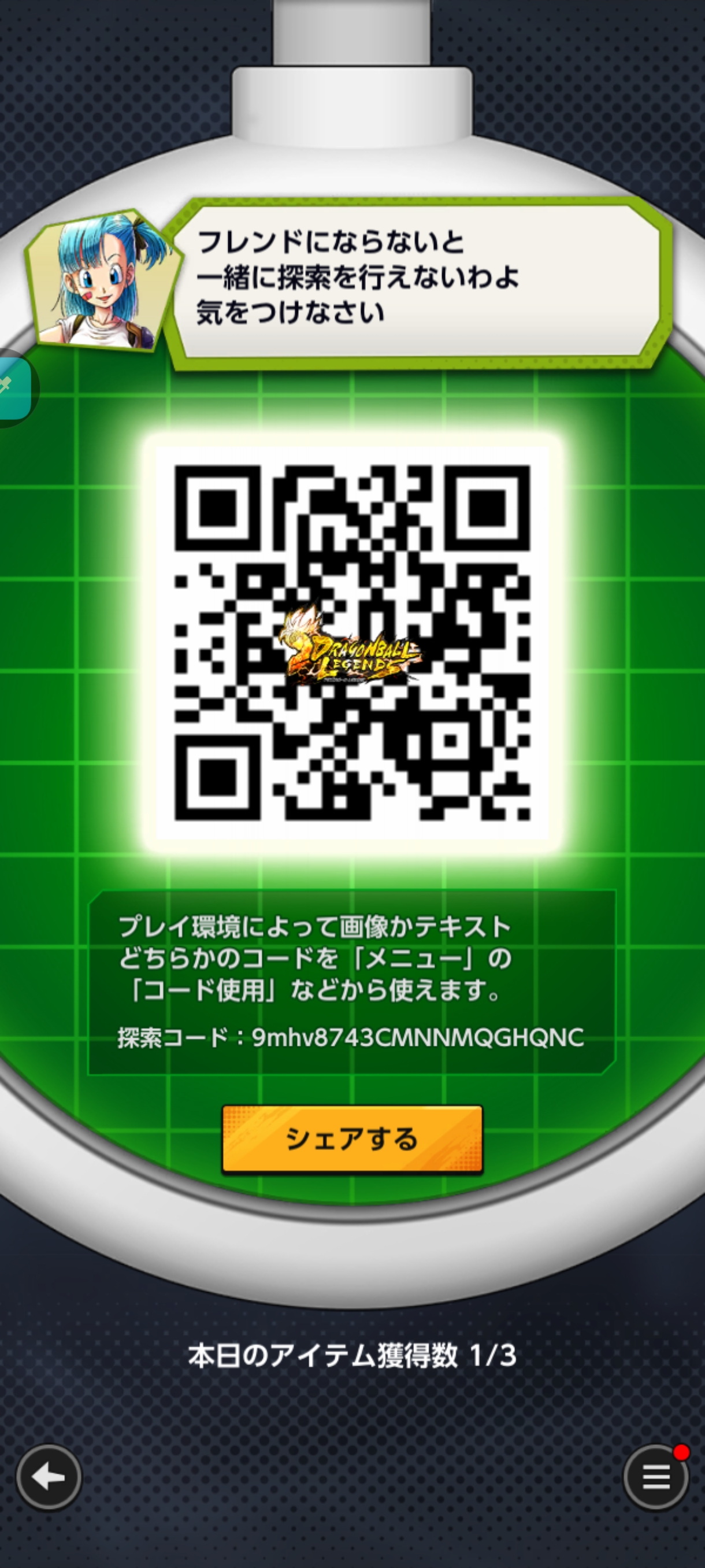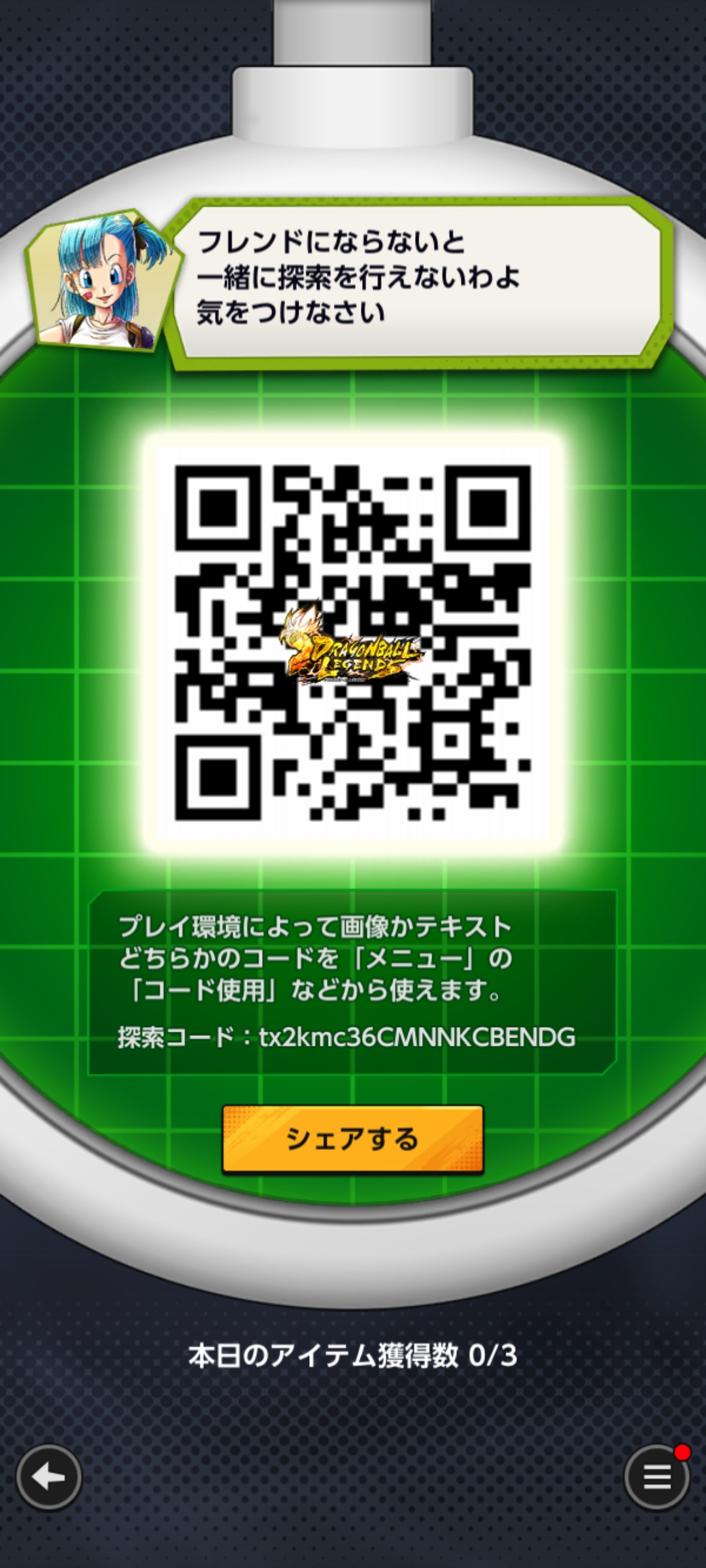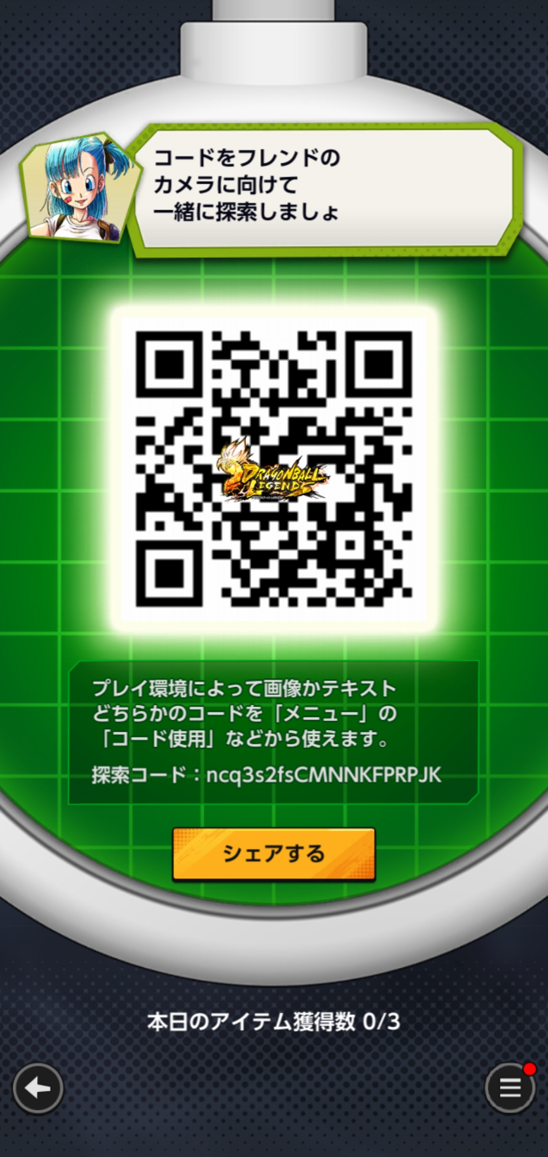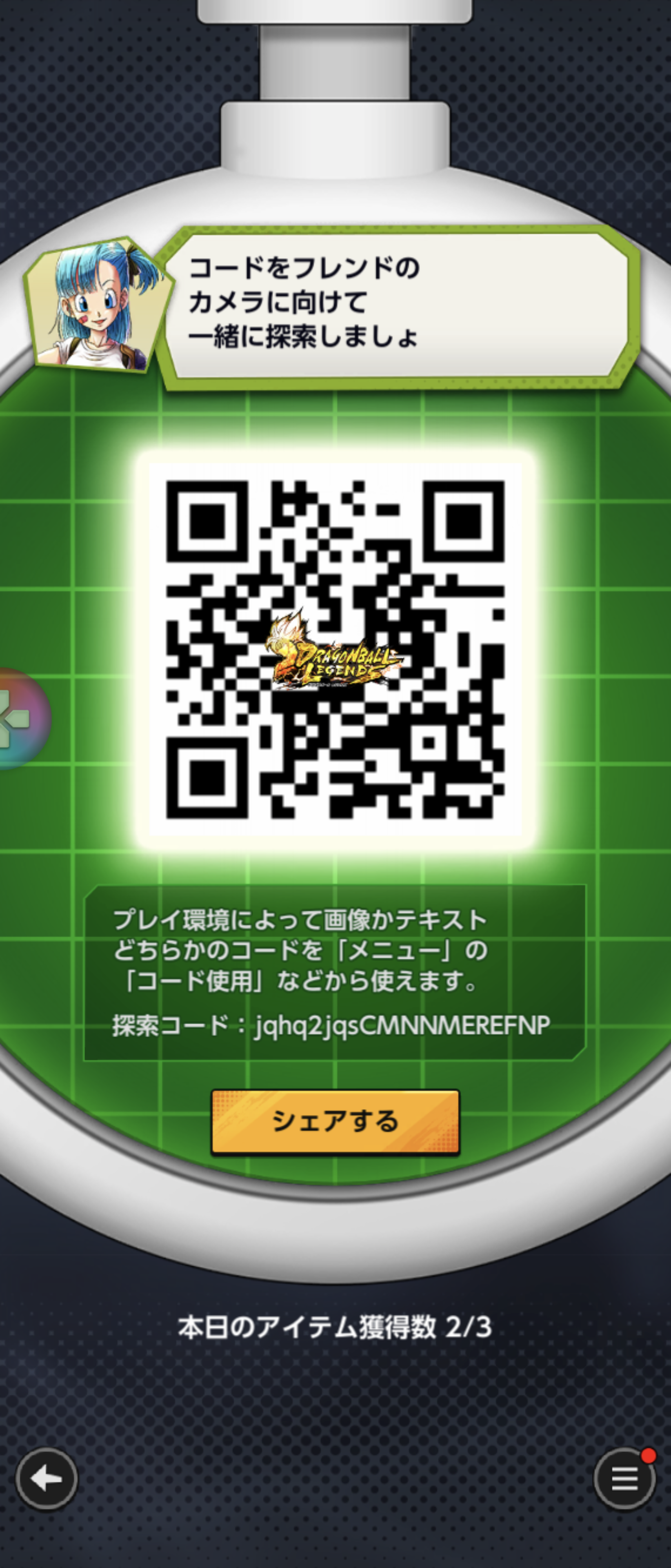• フレンドのQRコードを読み込む事でドラゴンボールを探索できる