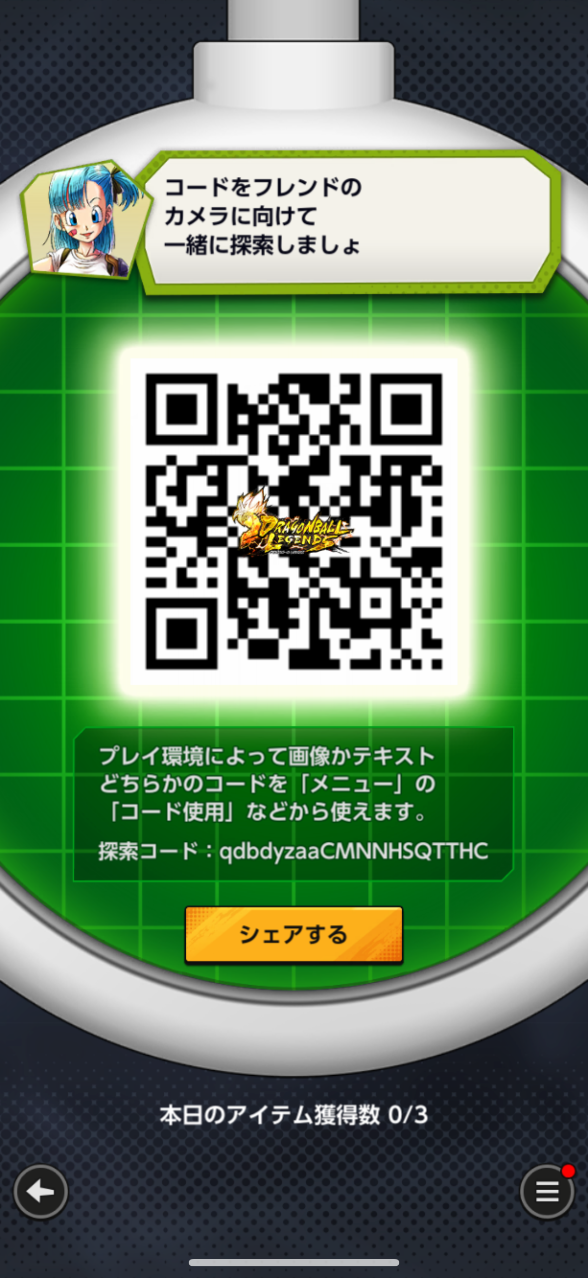 - フレンドのQRコードを読み込む事でドラゴンボールを探索できる