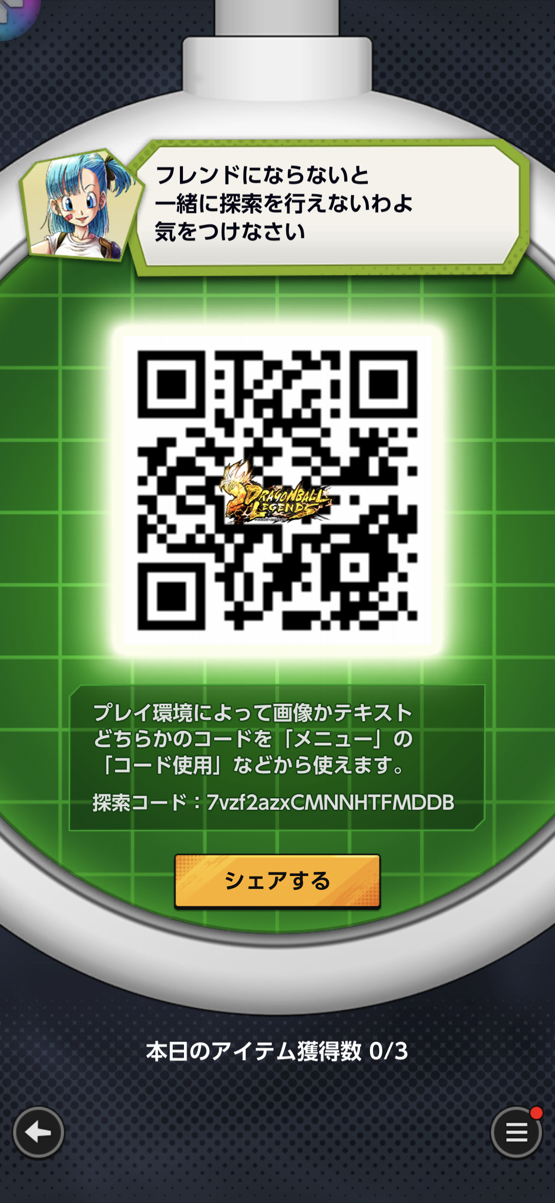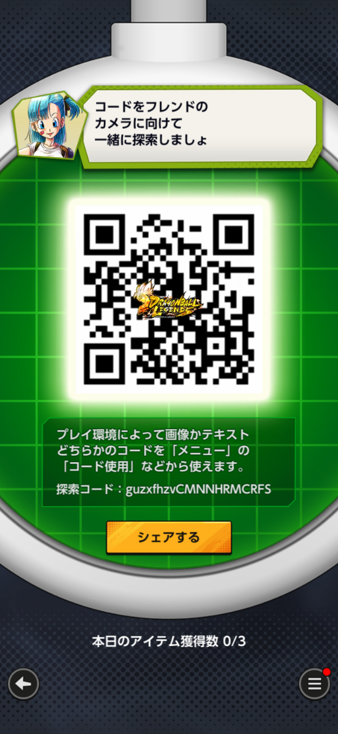 - フレンドのQRコードを読み込む事でドラゴンボールを探索できる