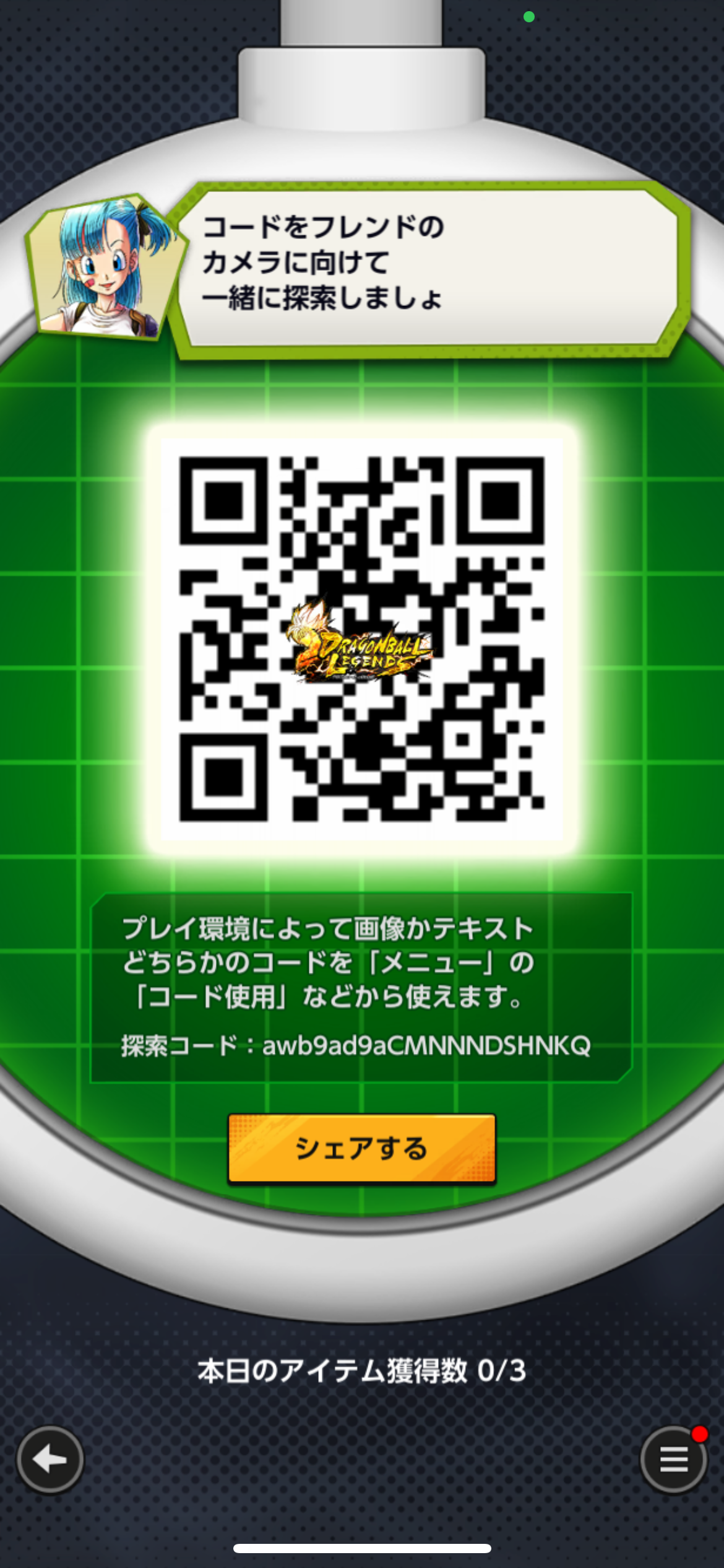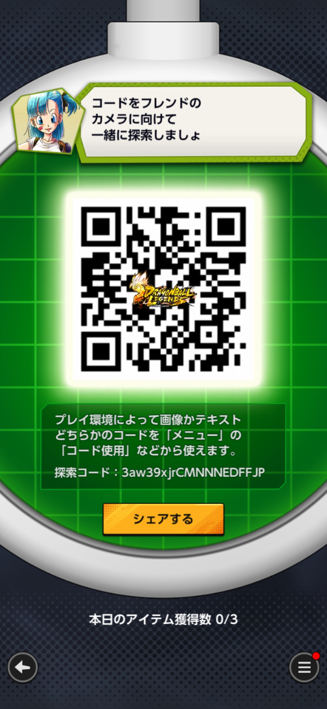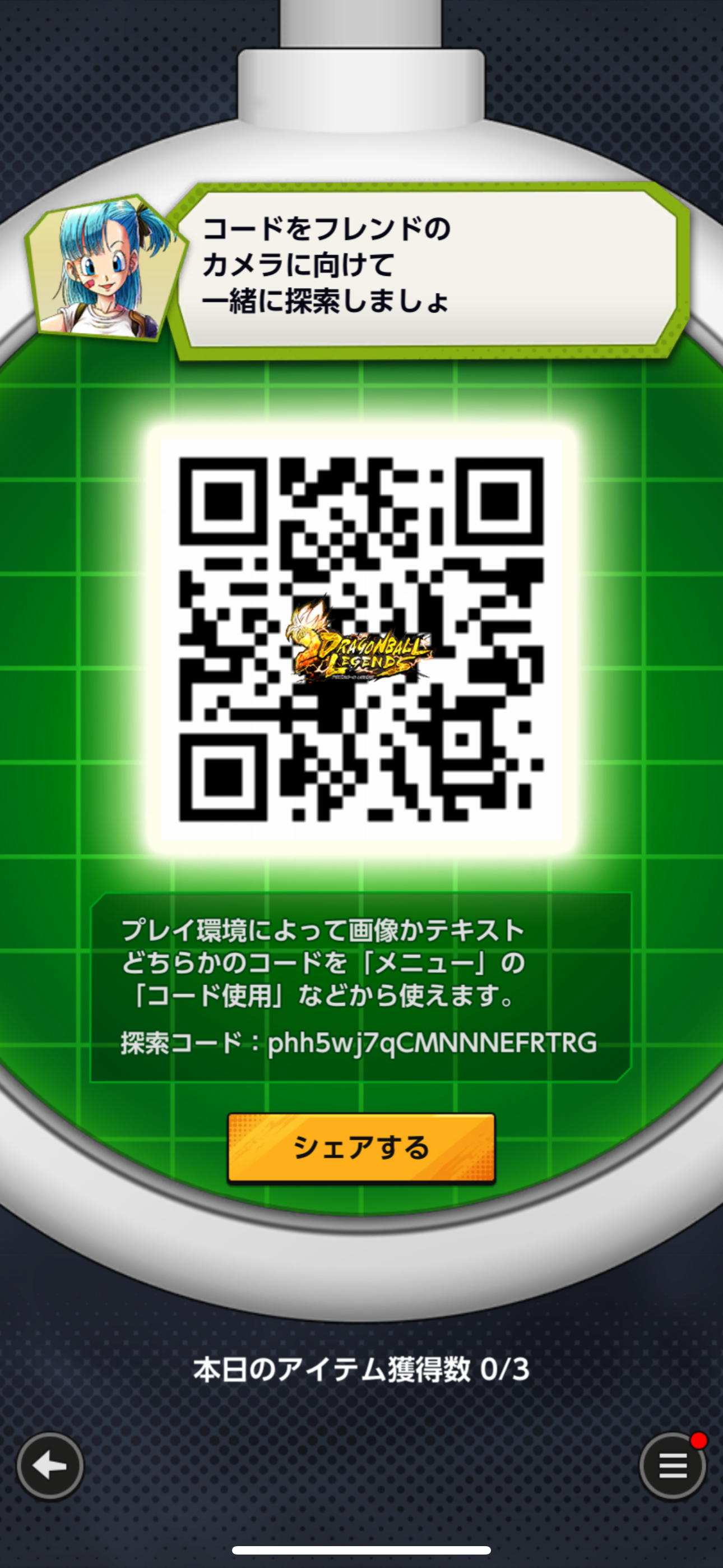 - フレンドのQRコードを読み込む事でドラゴンボールを探索できる