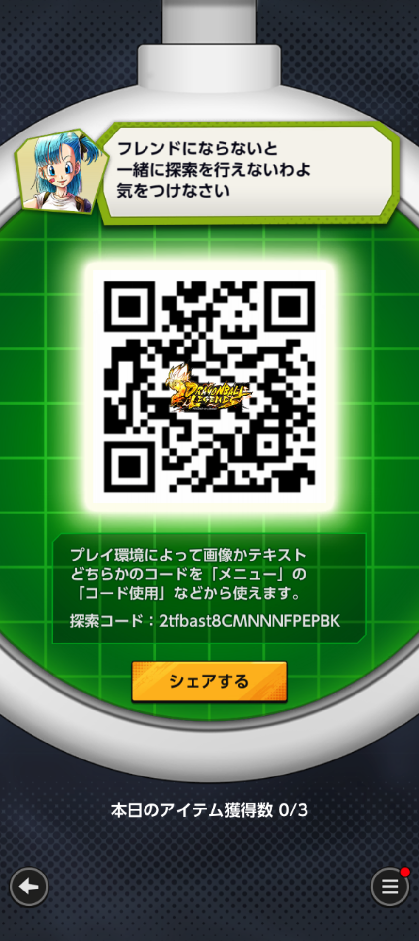 - フレンドのQRコードを読み込む事でドラゴンボールを探索できる