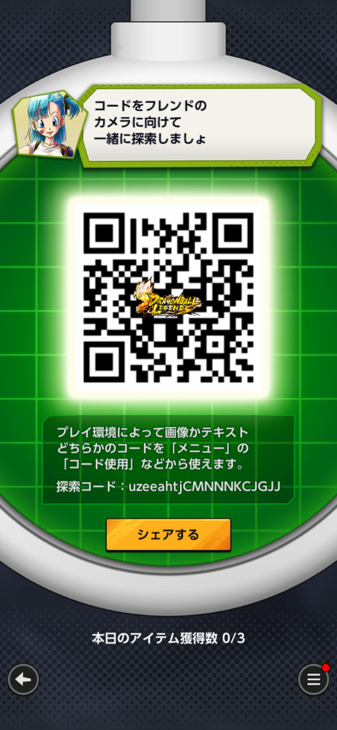 • フレンドのQRコードを読み込む事でドラゴンボールを探索できる