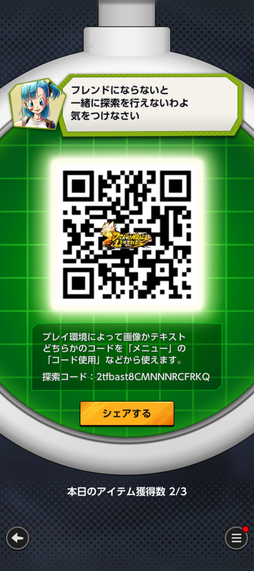 • フレンドのQRコードを読み込む事でドラゴンボールを探索できる