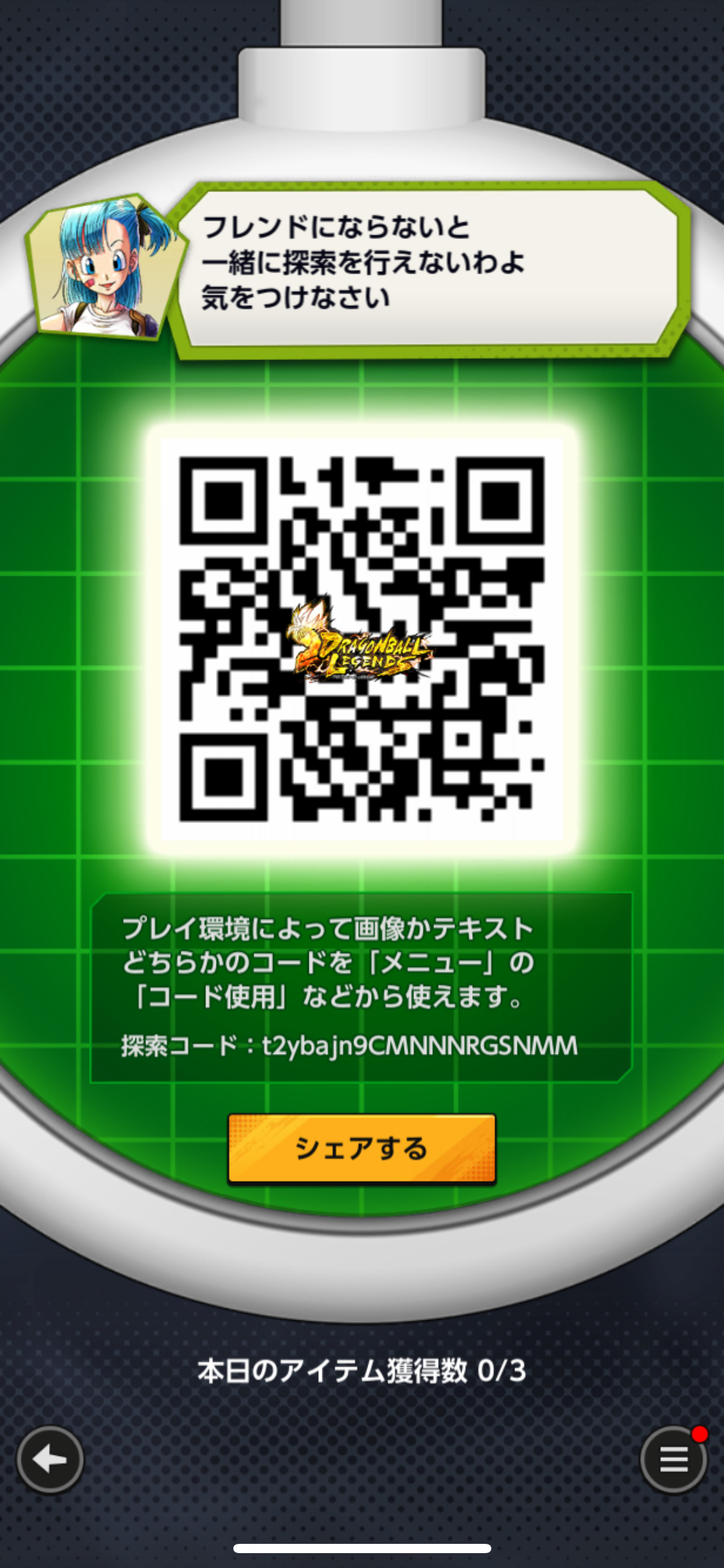 - フレンドのQRコードを読み込む事でドラゴンボールを探索できる