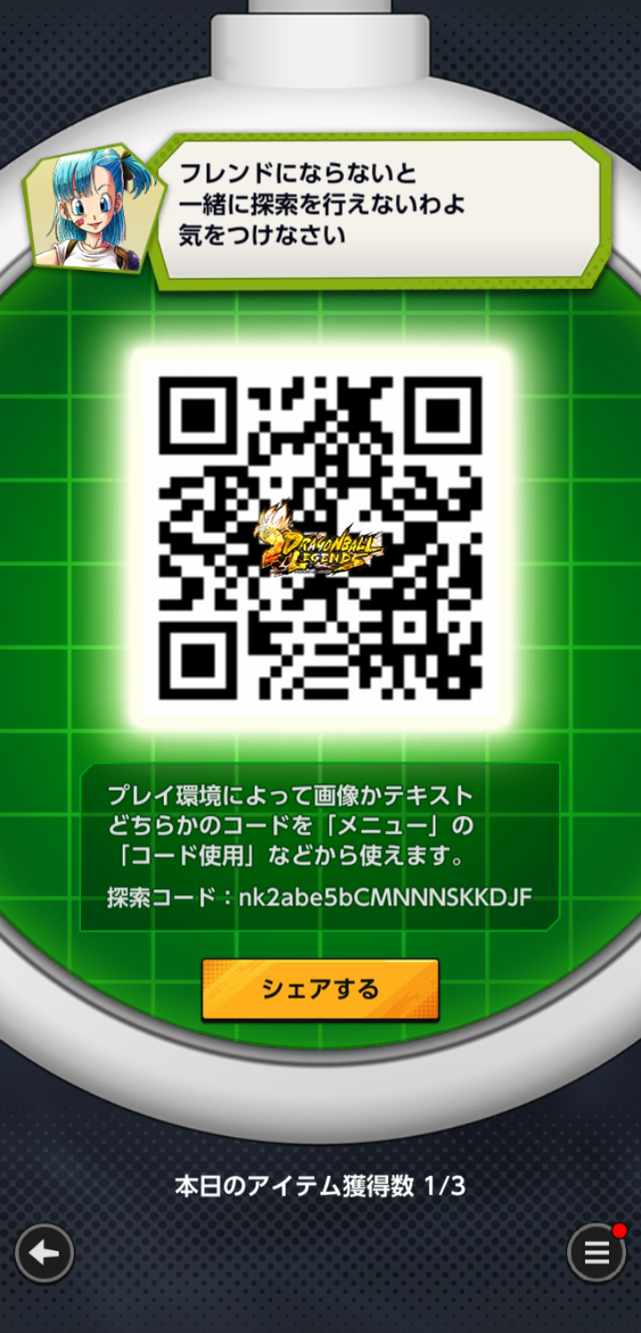 - フレンドのQRコードを読み込む事でドラゴンボールを探索できる