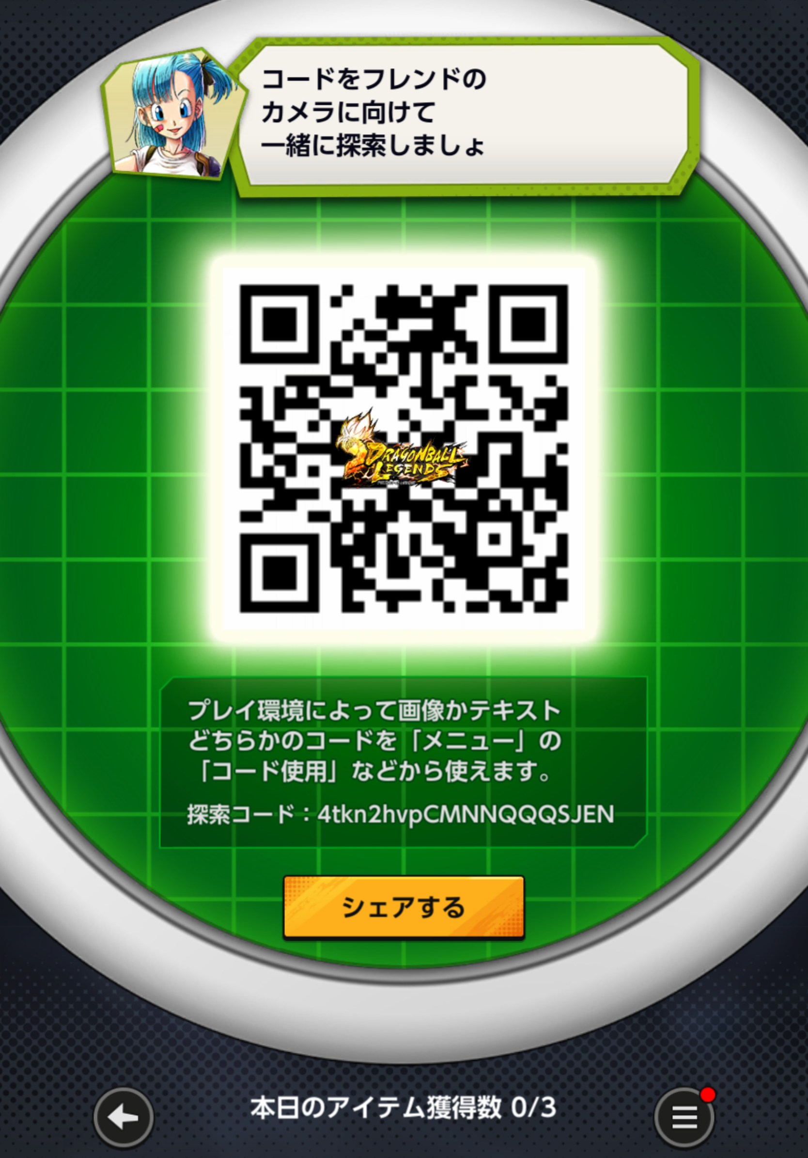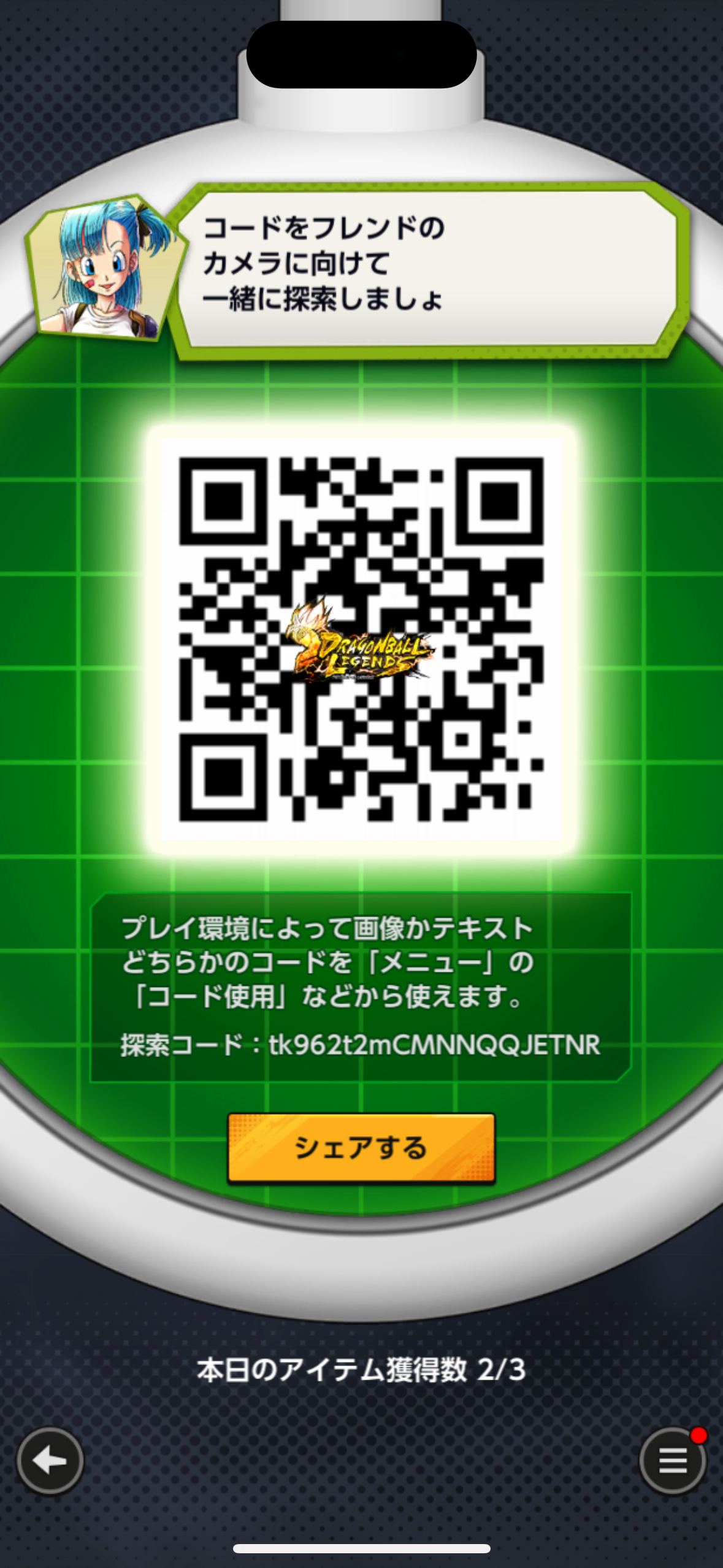 • フレンドのQRコードを読み込む事でドラゴンボールを探索できる