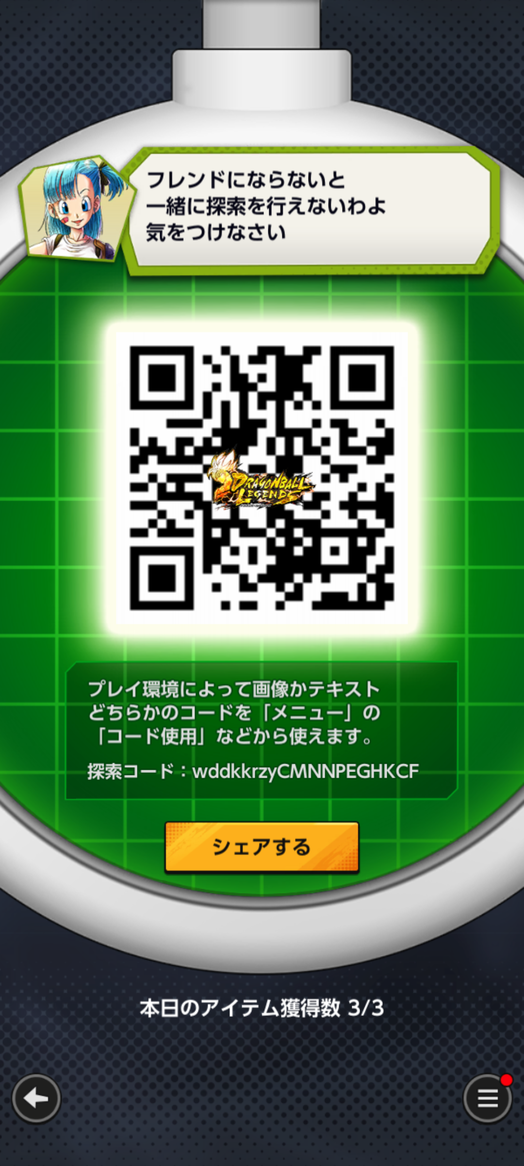 - フレンドのQRコードを読み込む事でドラゴンボールを探索できる