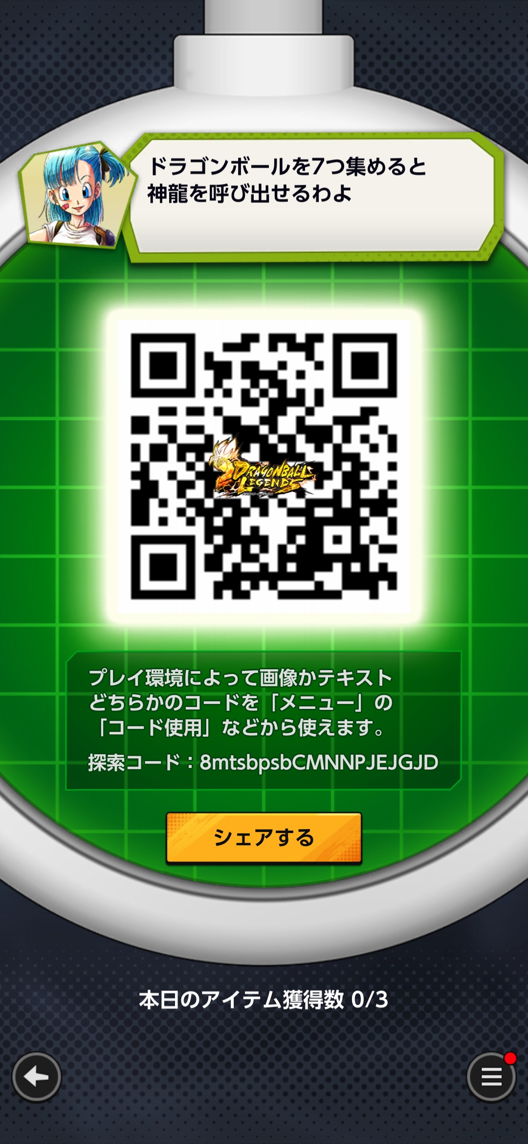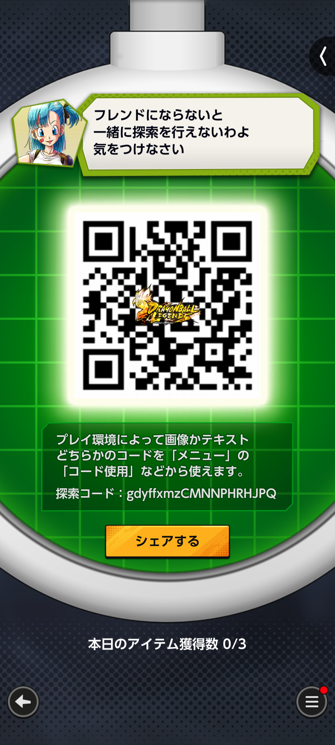 - フレンドのQRコードを読み込む事でドラゴンボールを探索できる