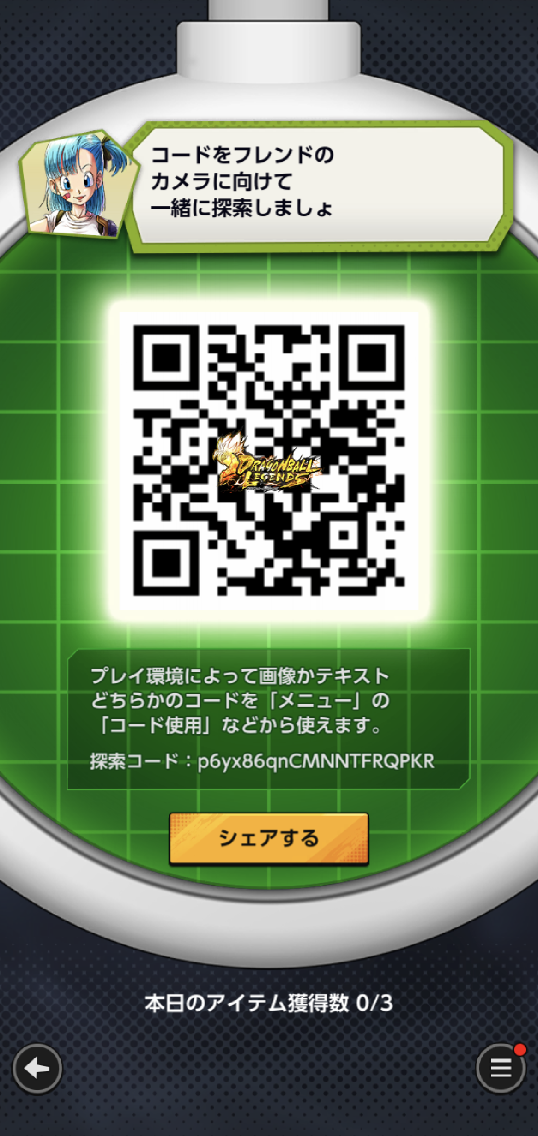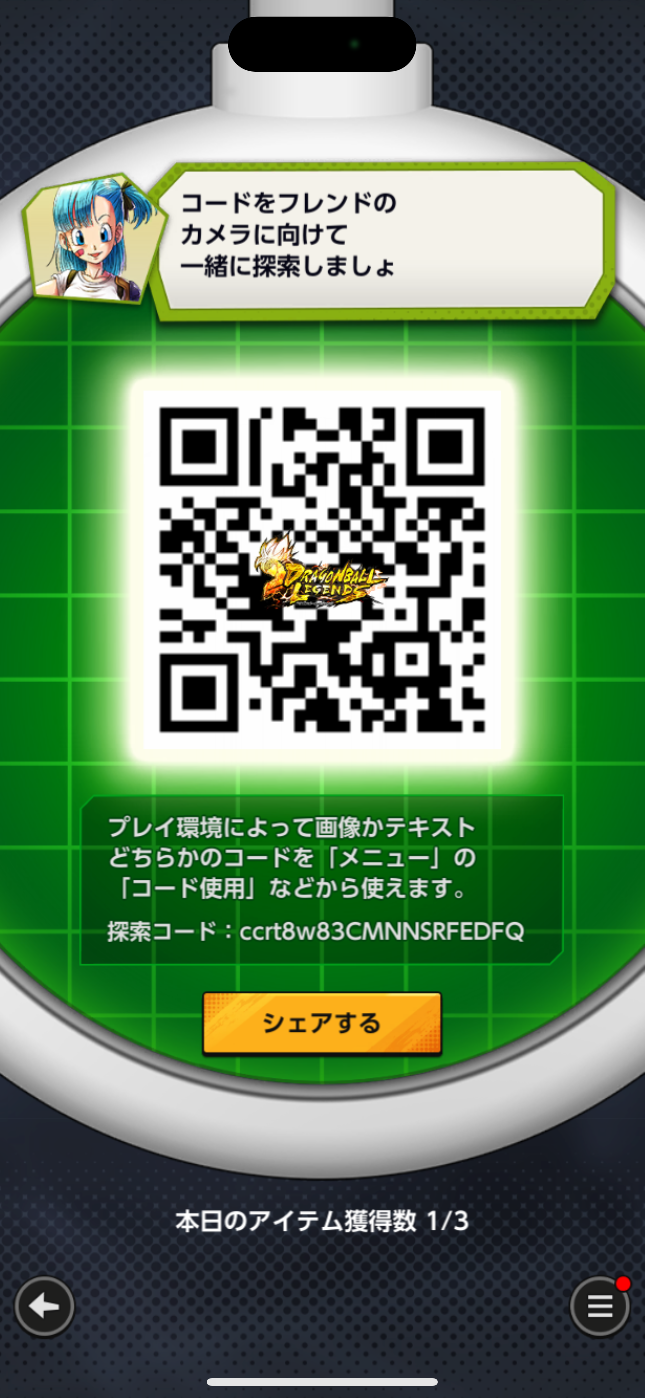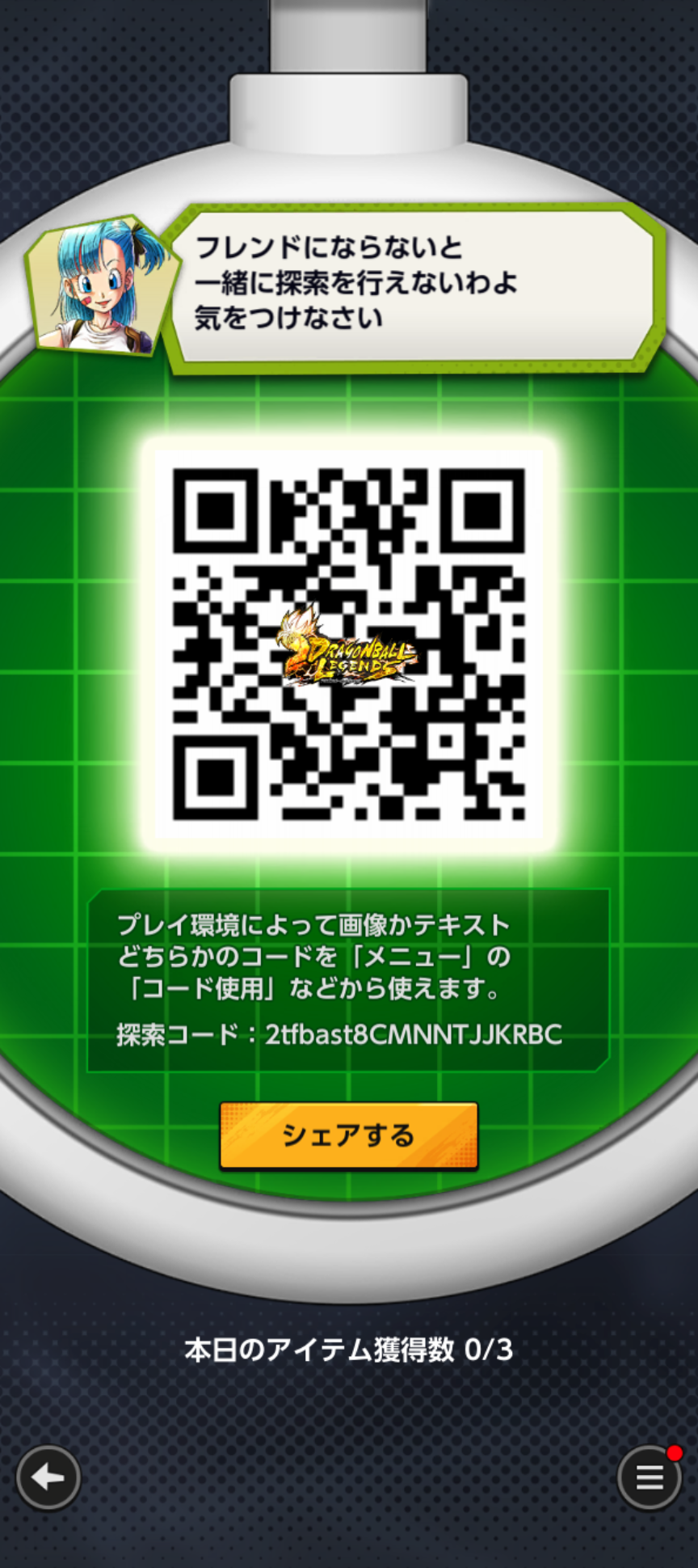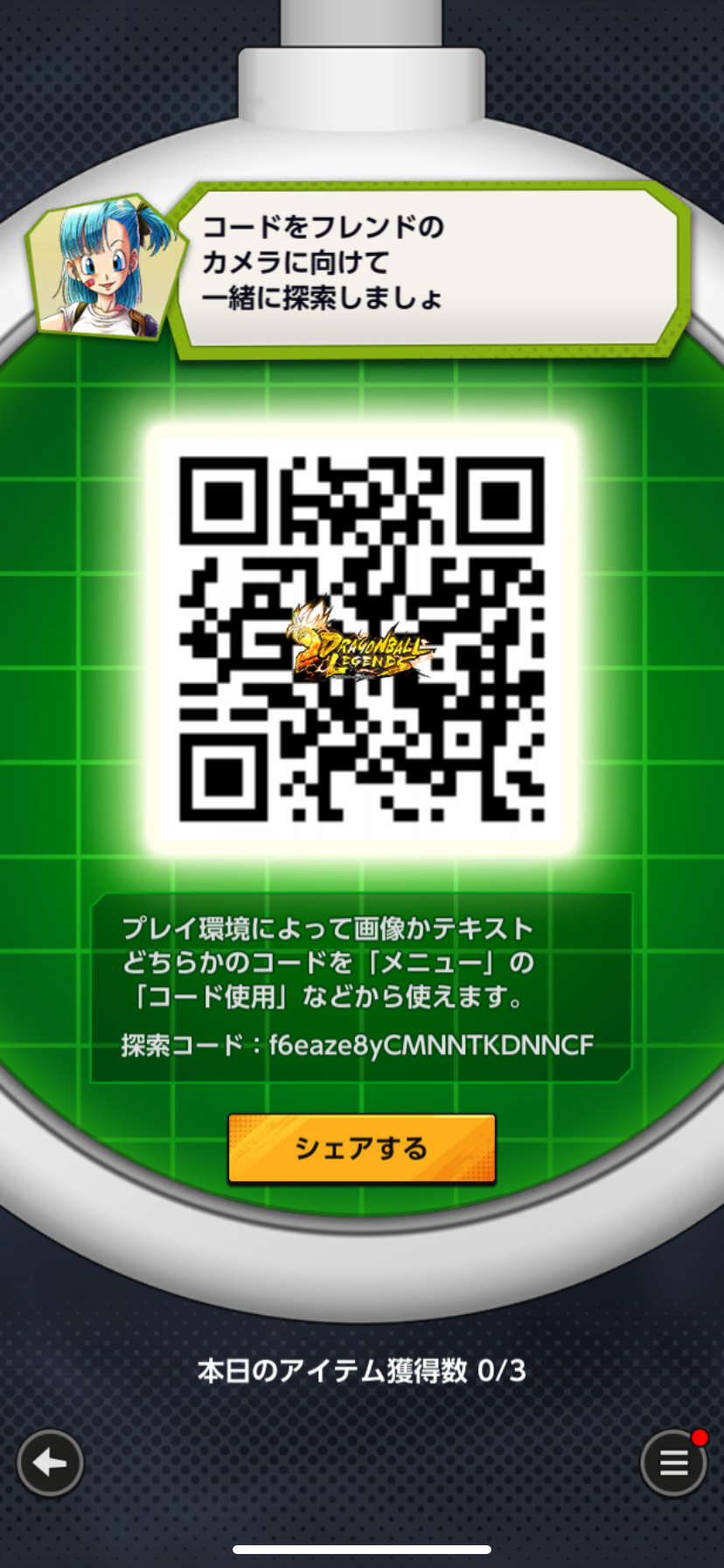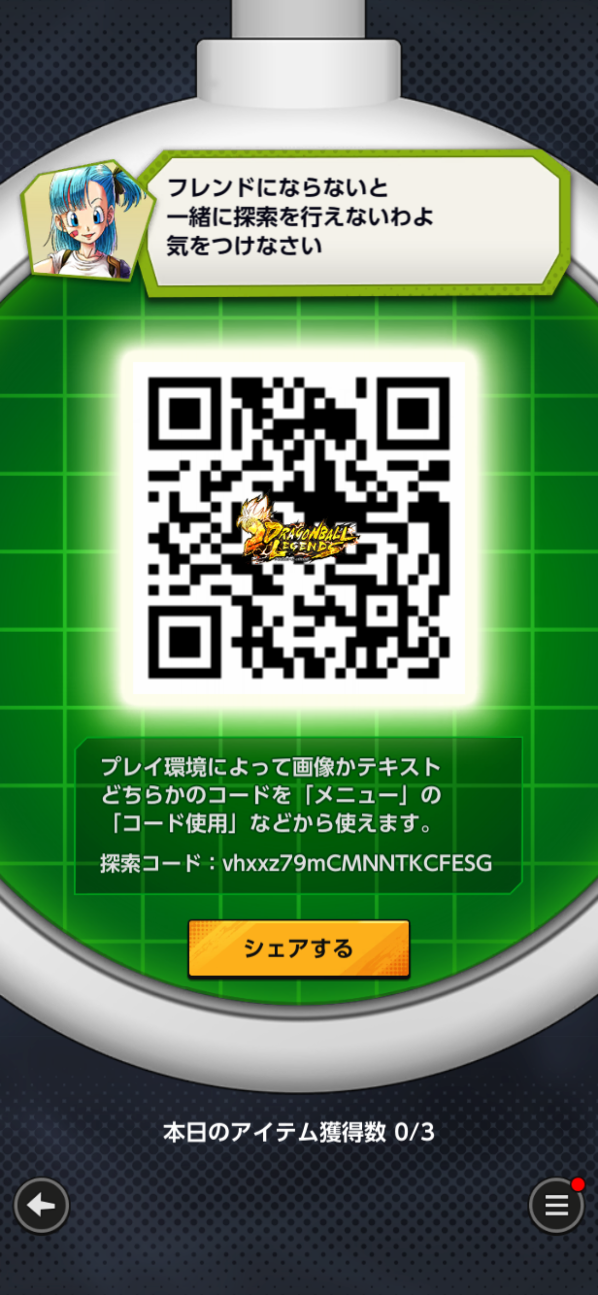 - フレンドのQRコードを読み込む事でドラゴンボールを探索できる