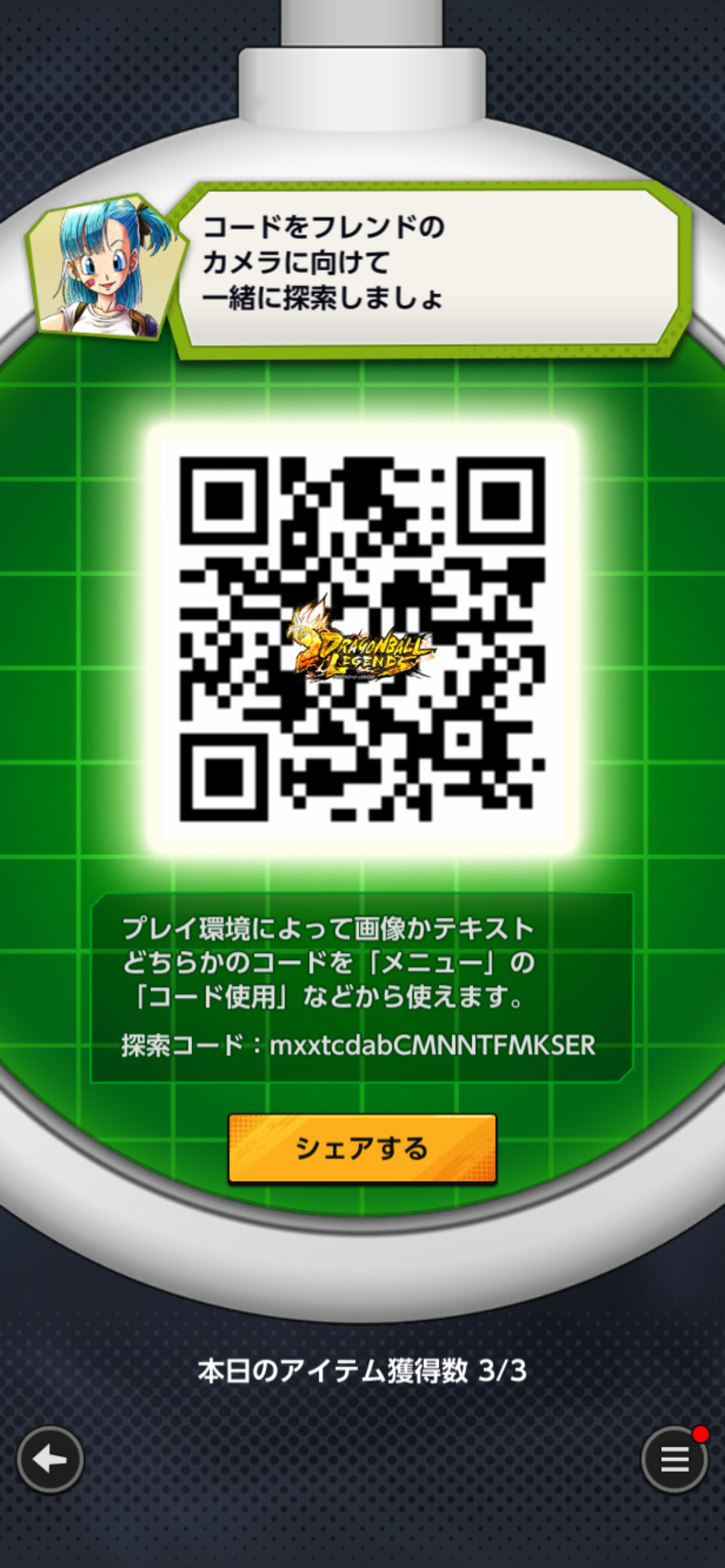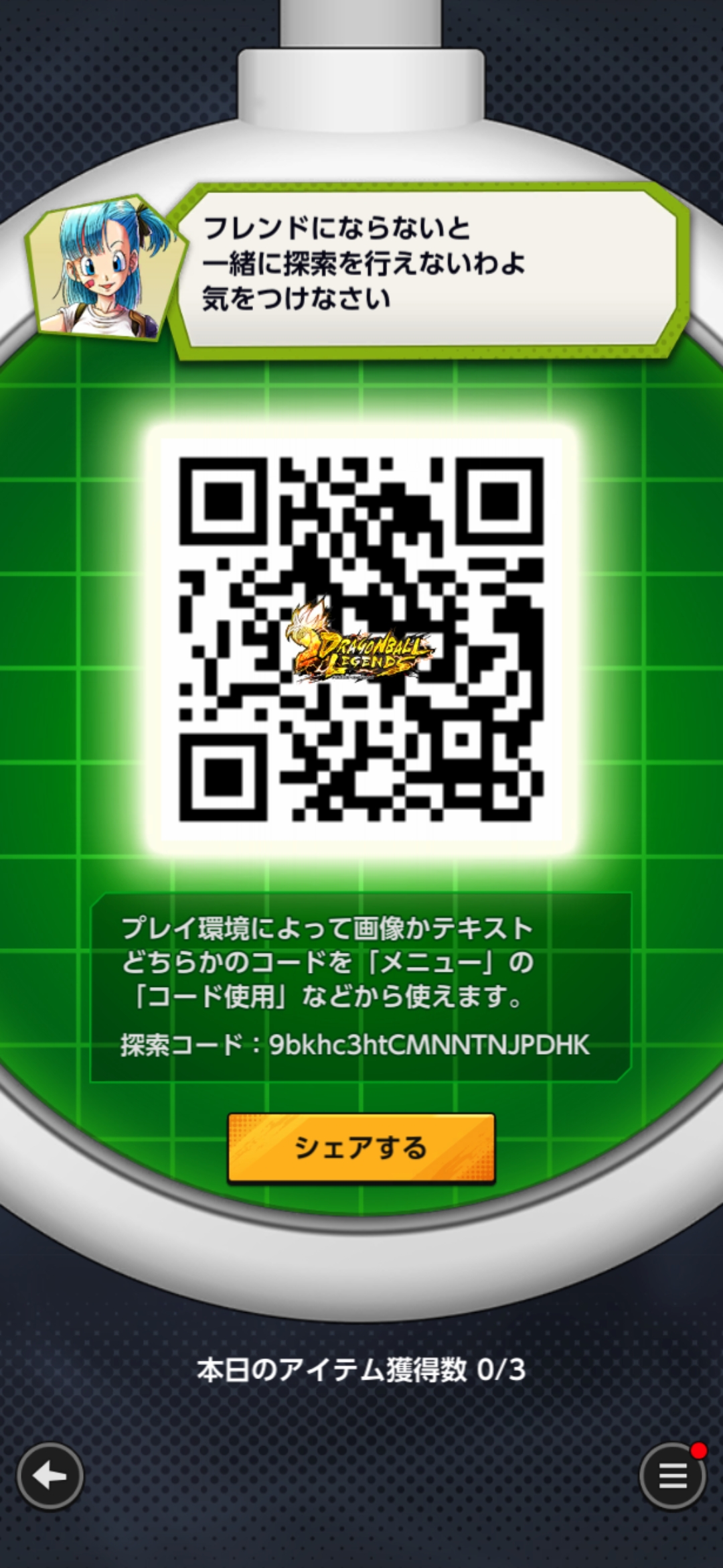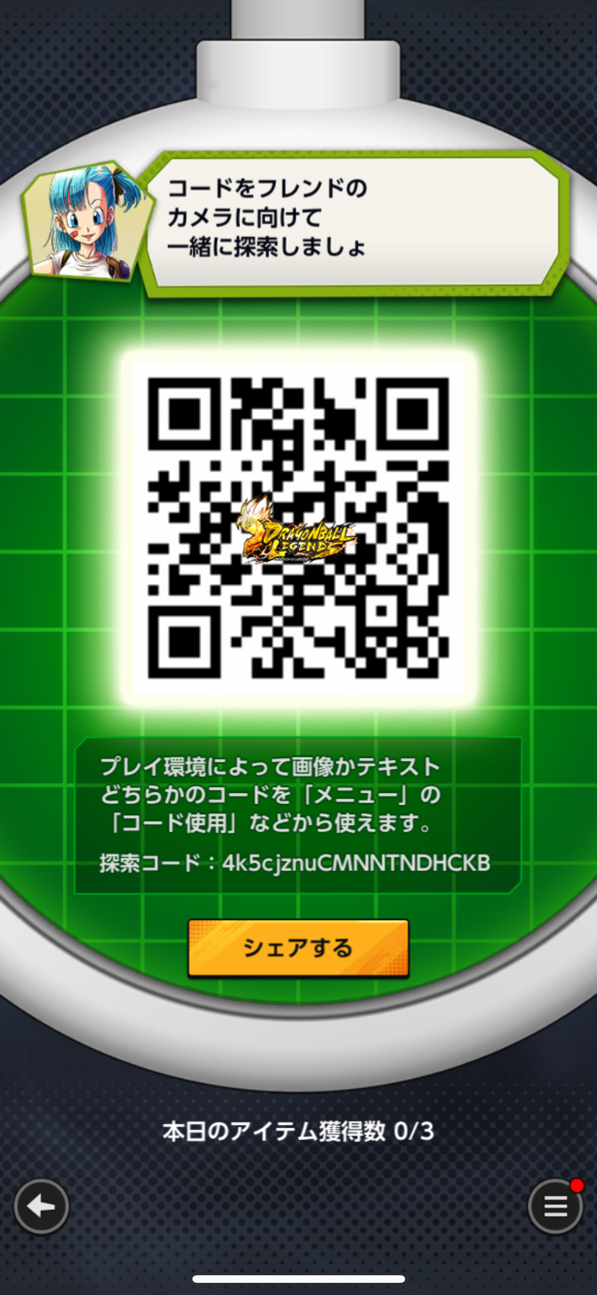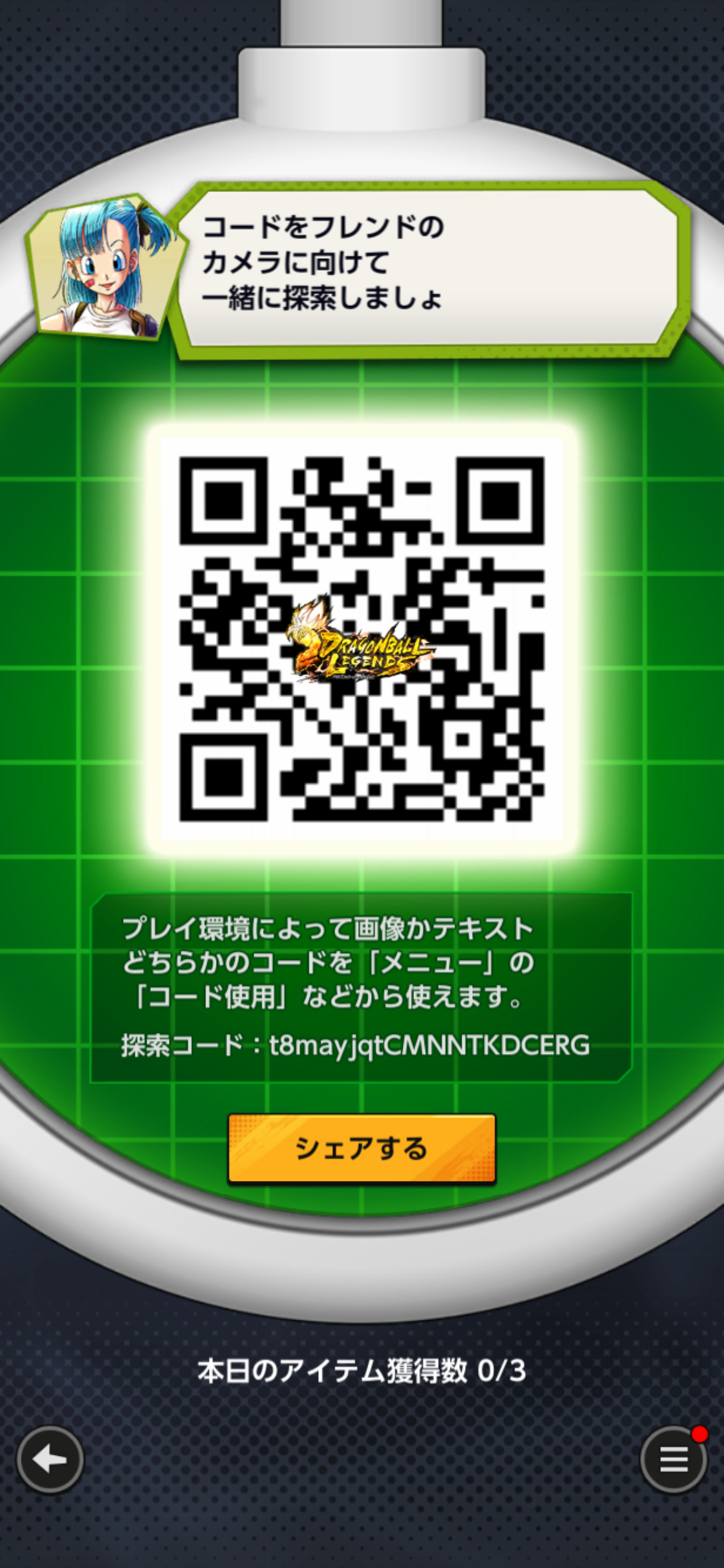 - フレンドのQRコードを読み込む事でドラゴンボールを探索できる
