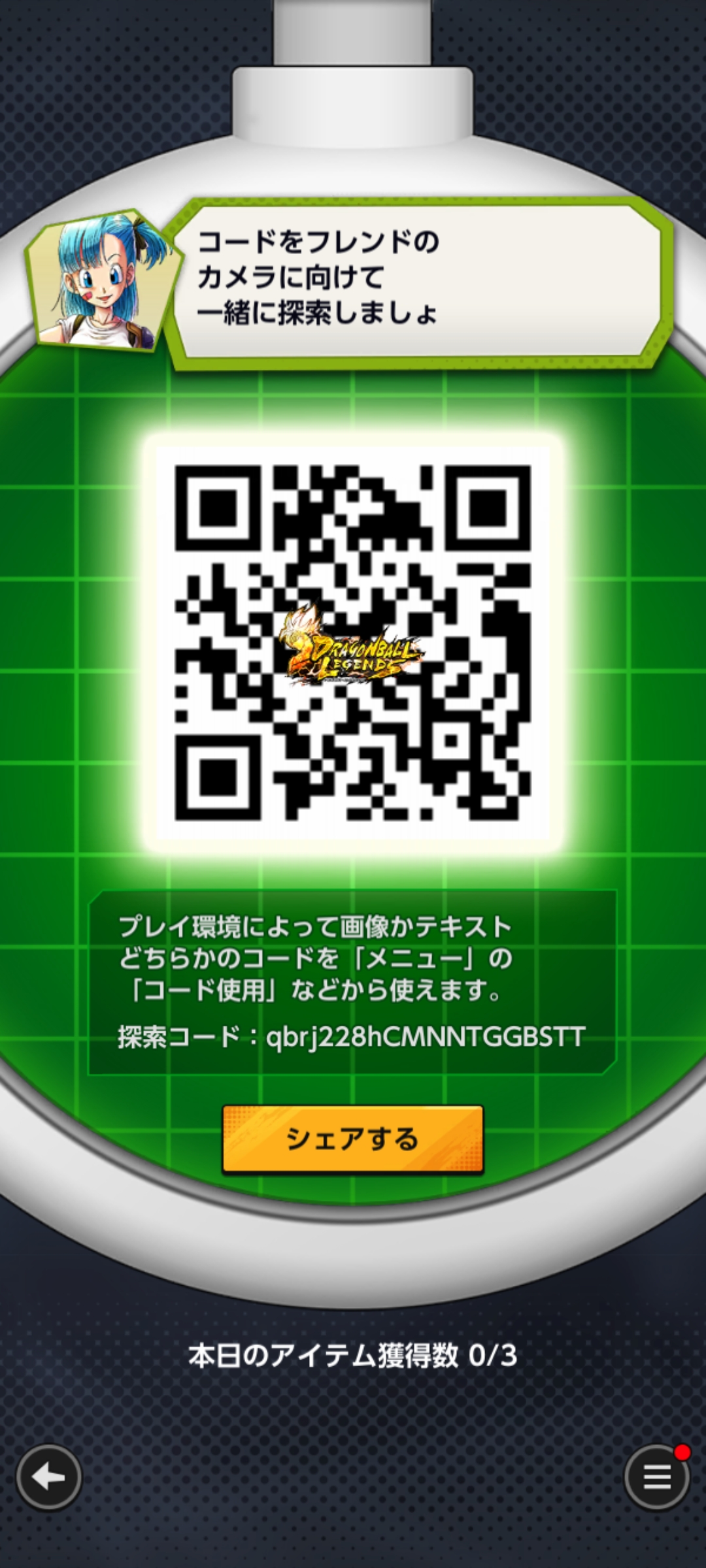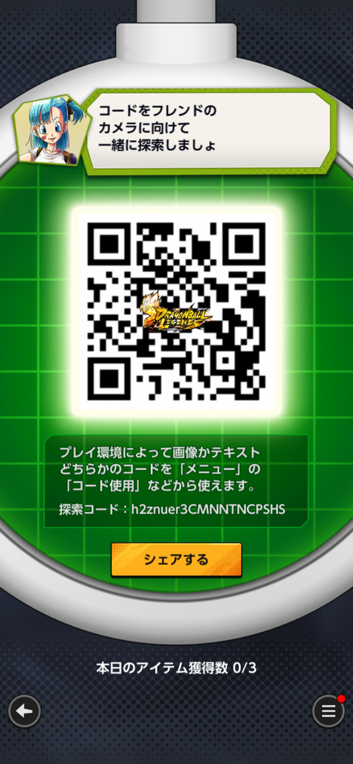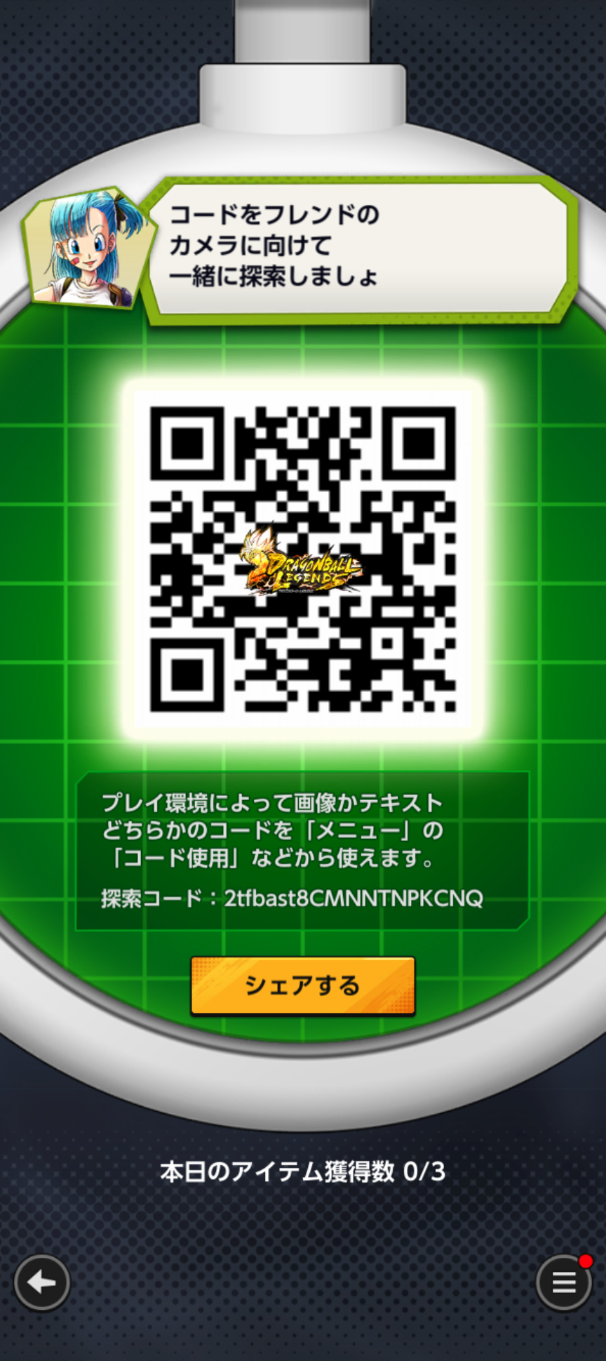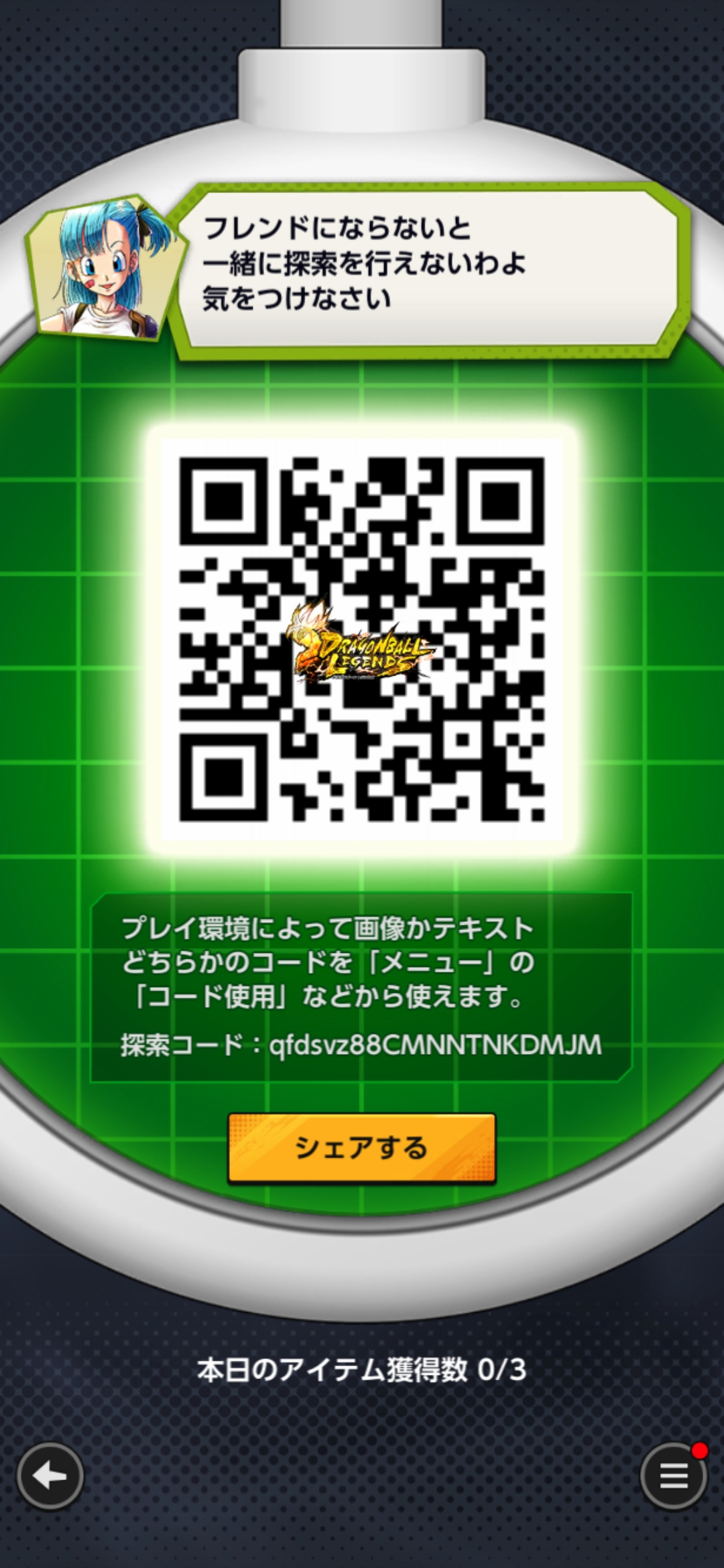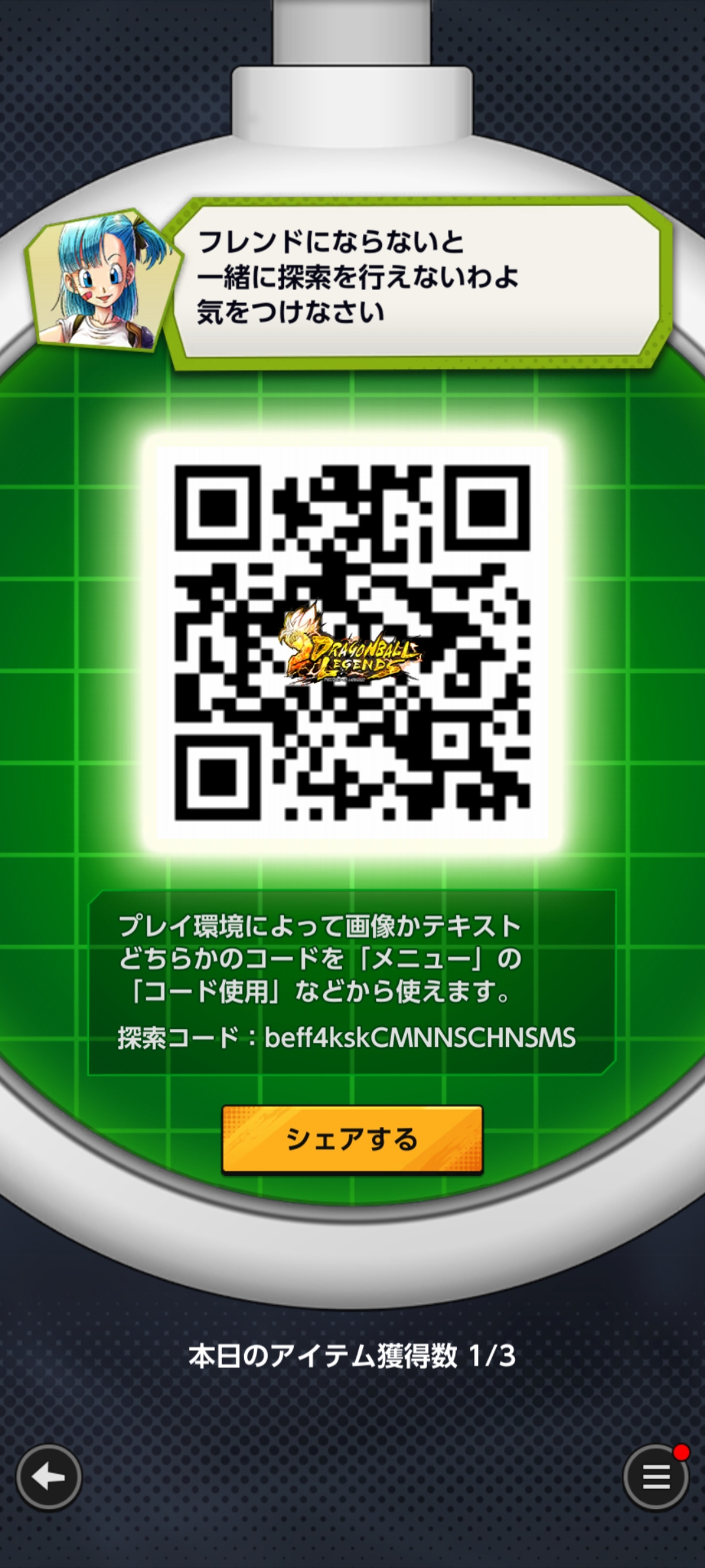 - フレンドのQRコードを読み込む事でドラゴンボールを探索できる
