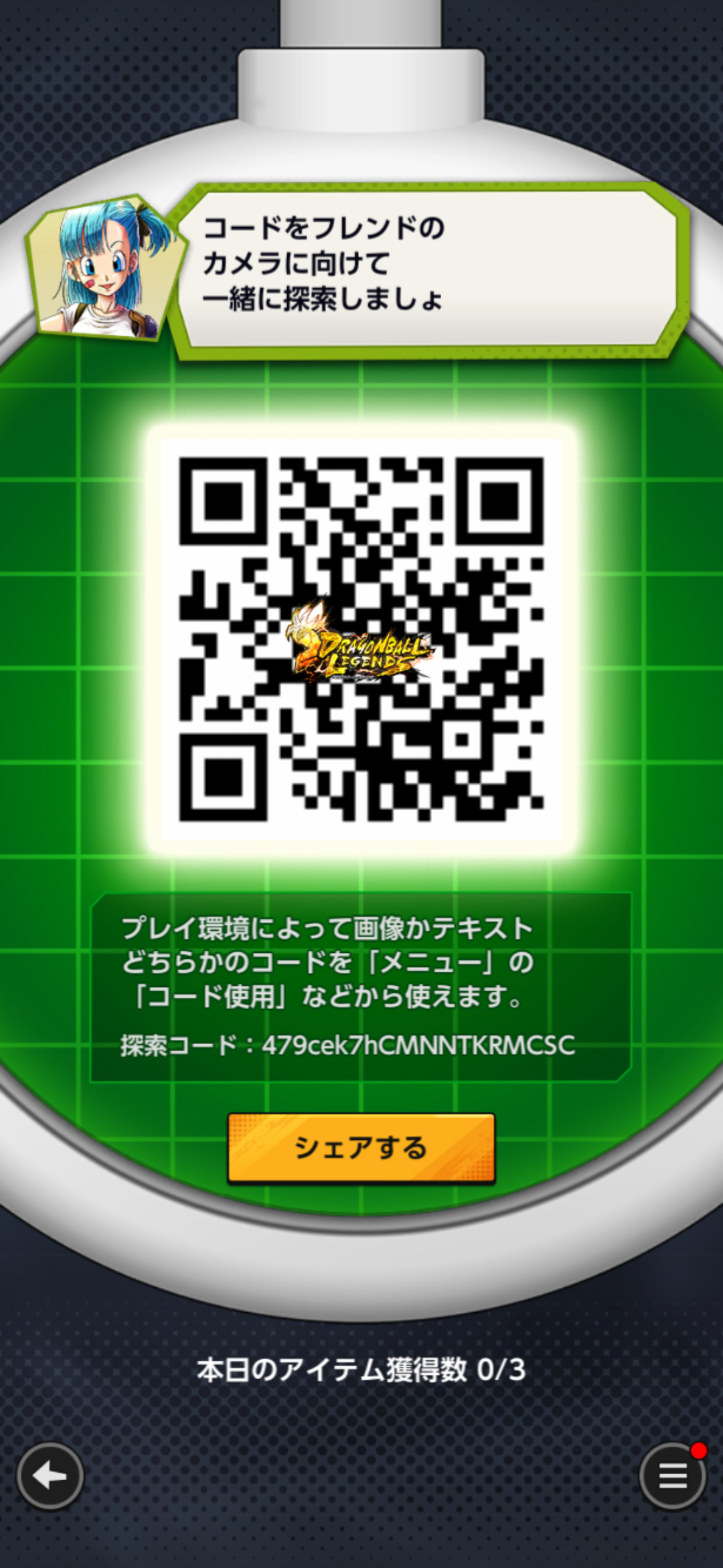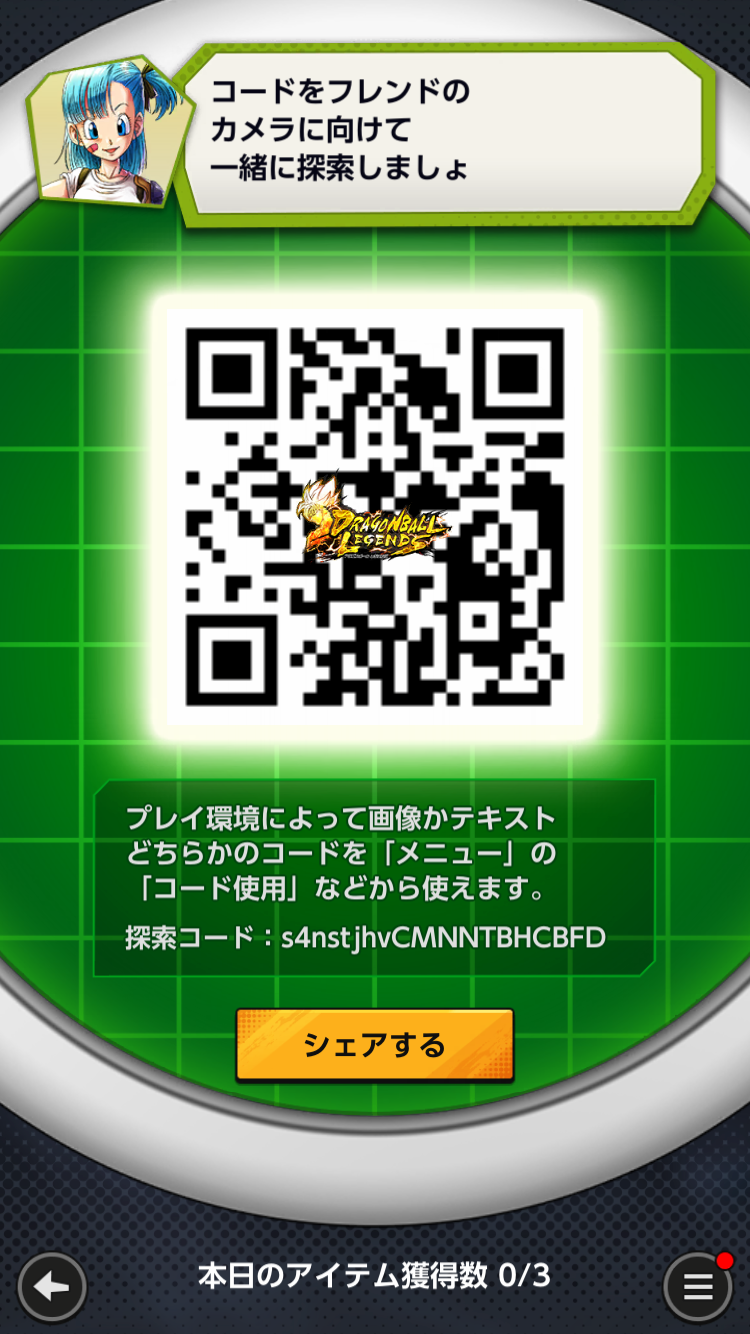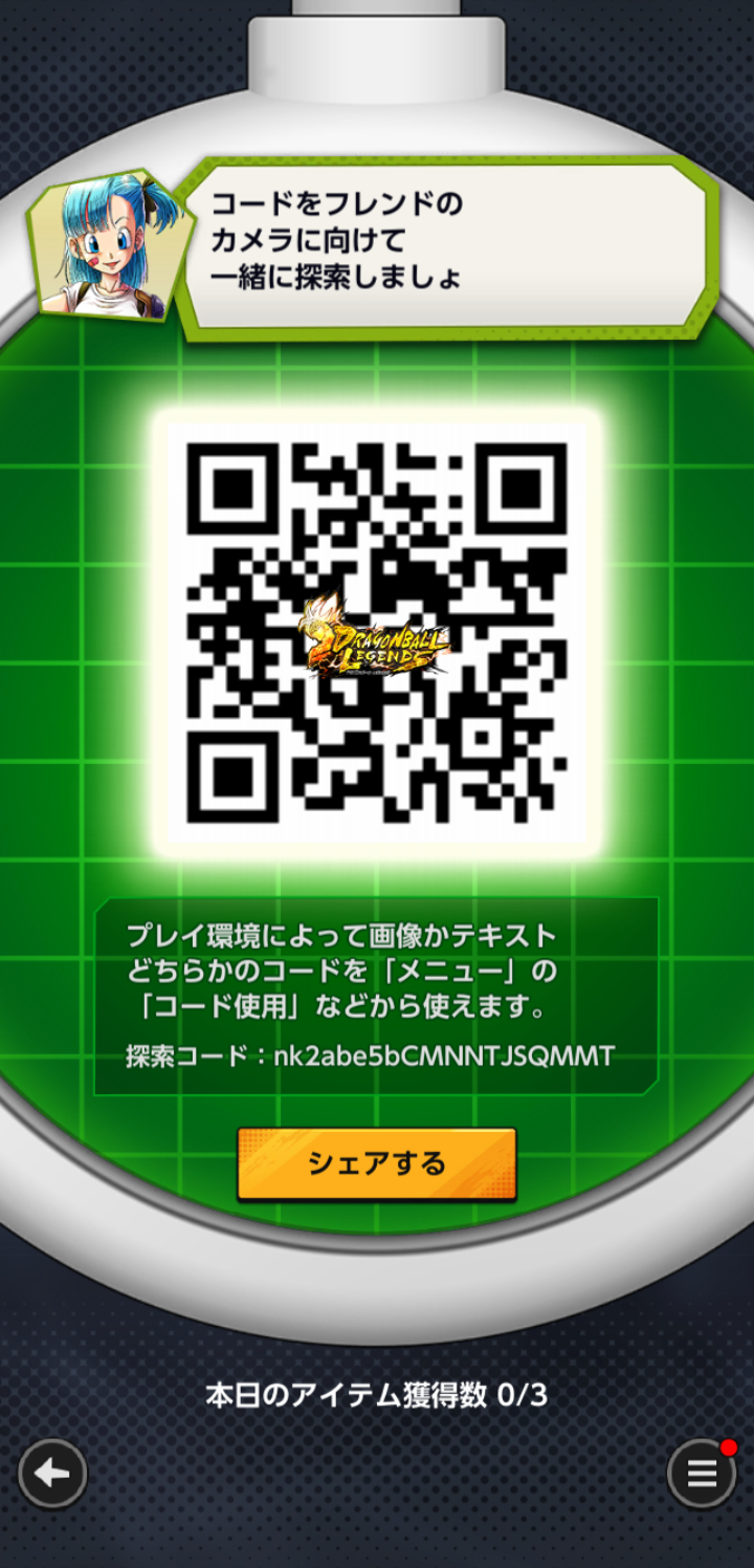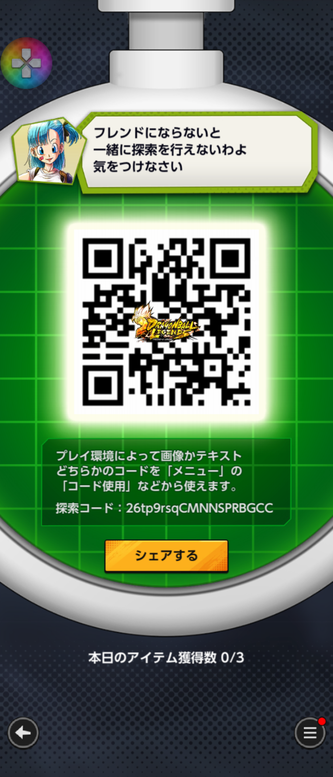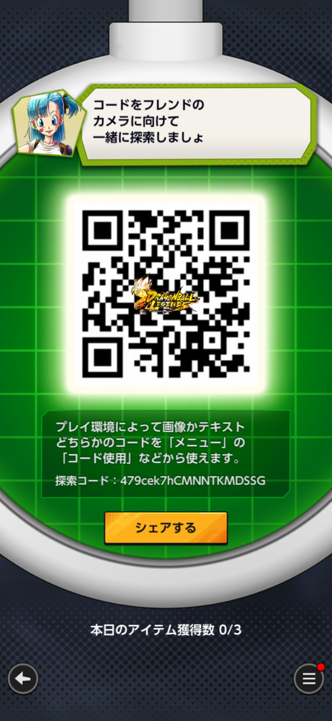 - フレンドのQRコードを読み込む事でドラゴンボールを探索できる
