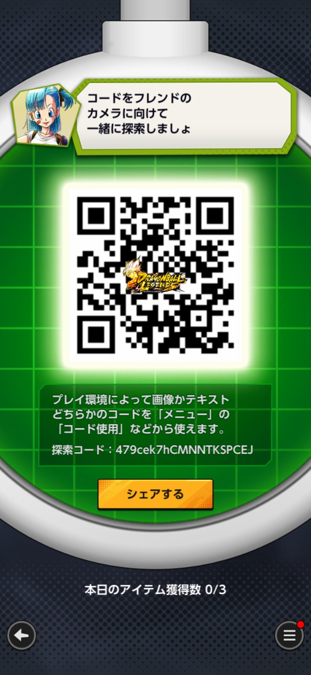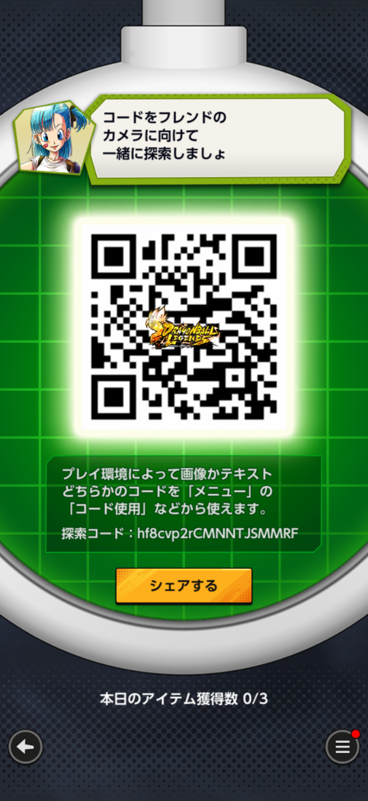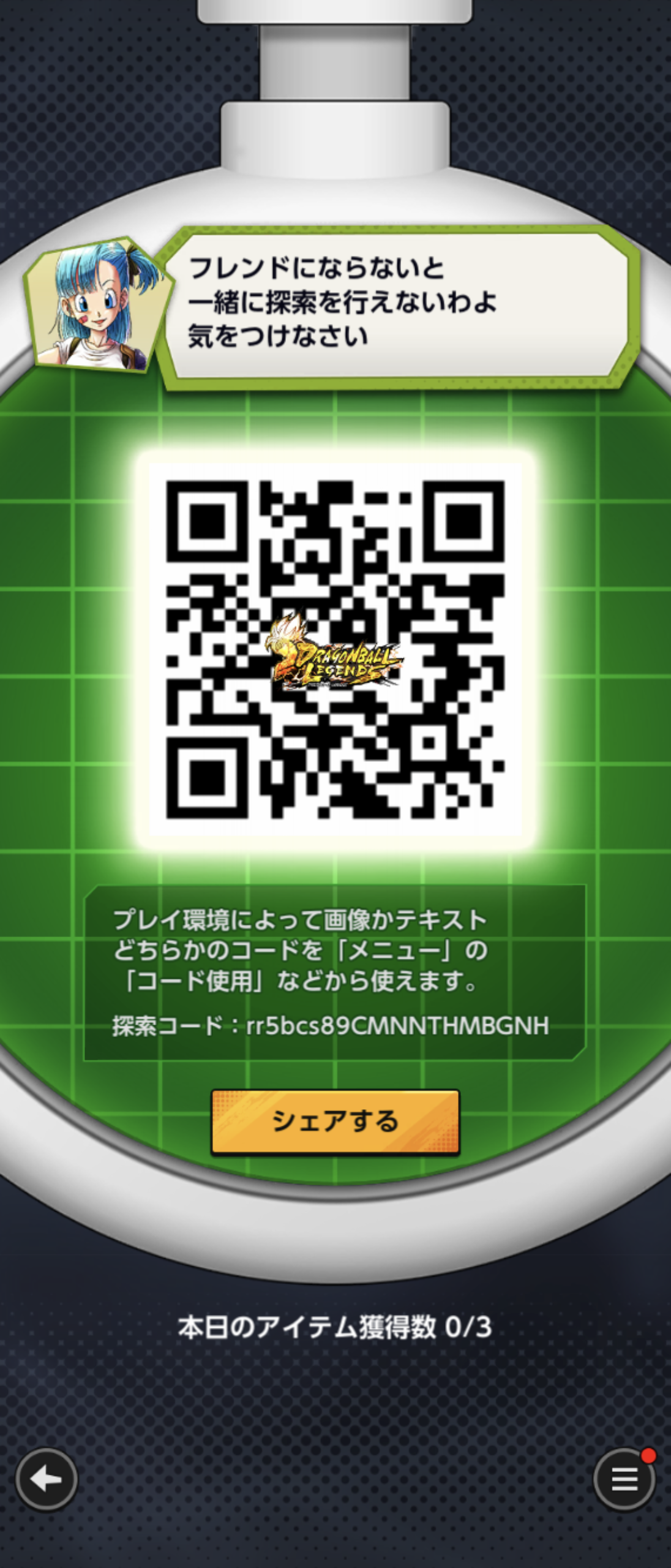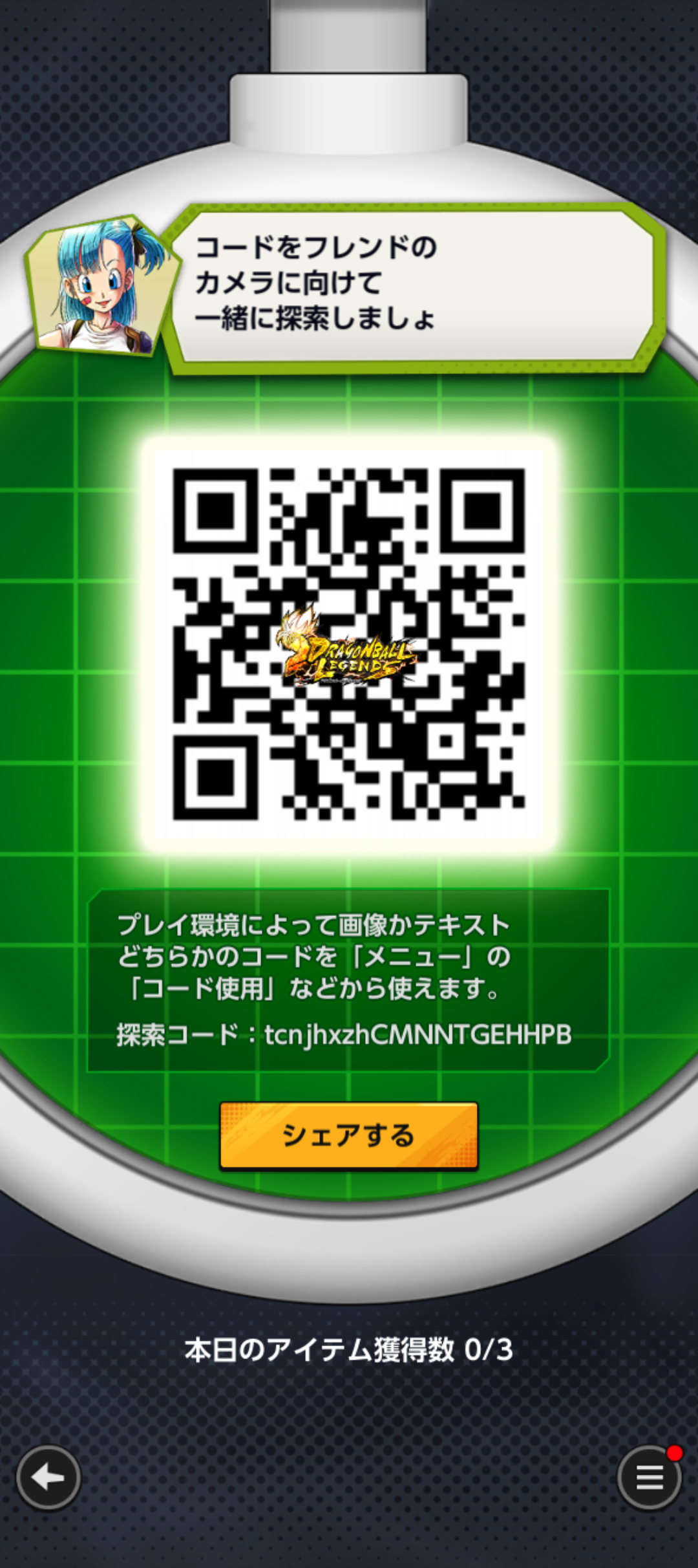 - フレンドのQRコードを読み込む事でドラゴンボールを探索できる