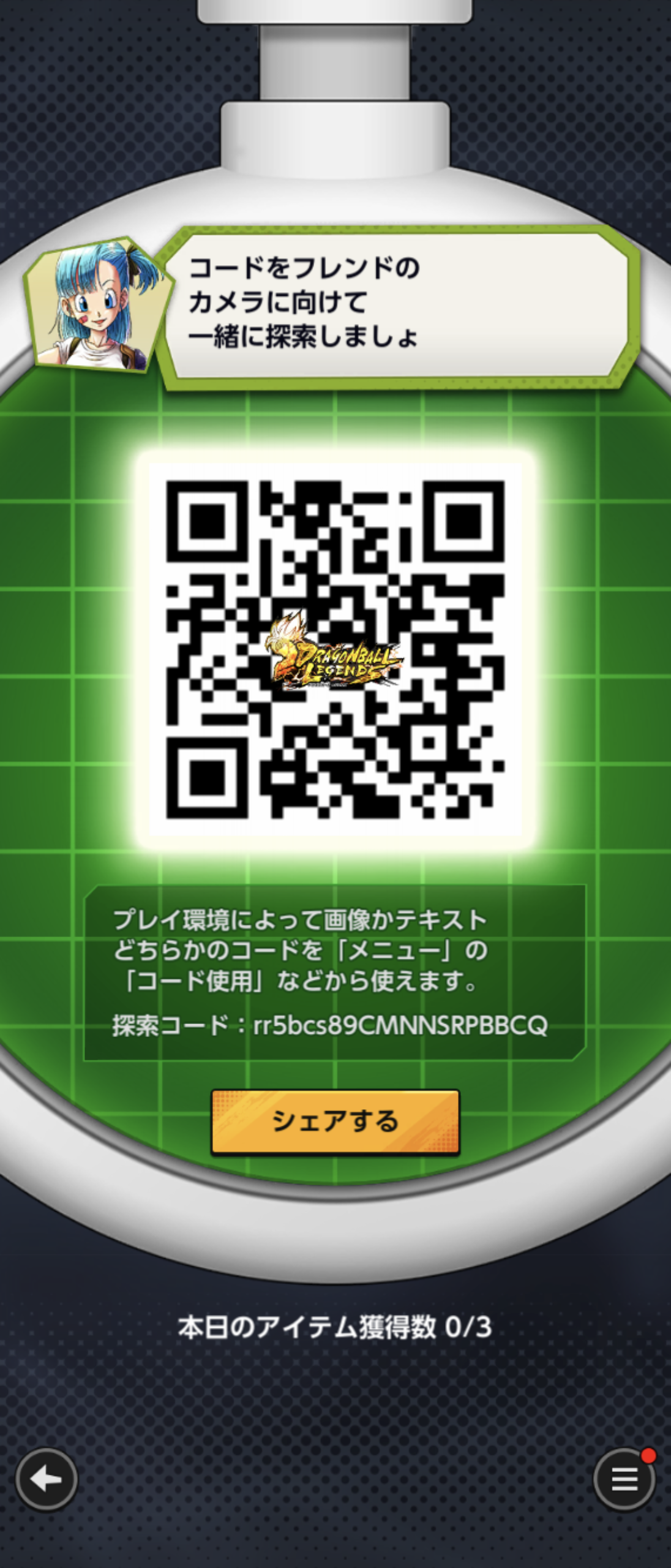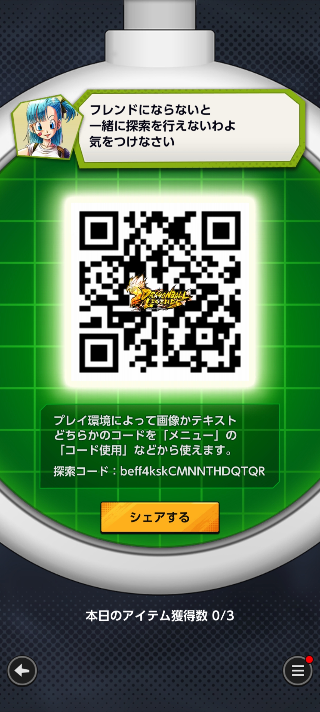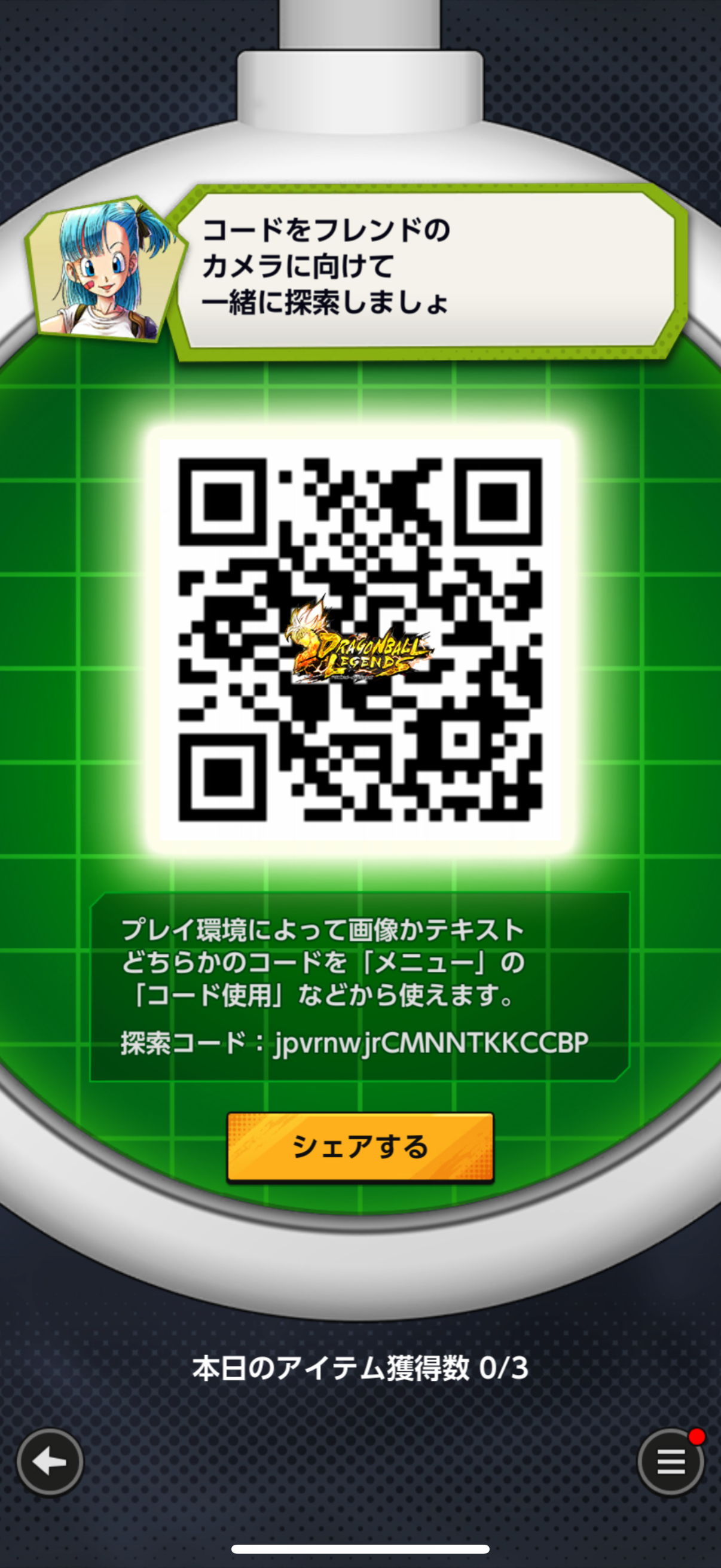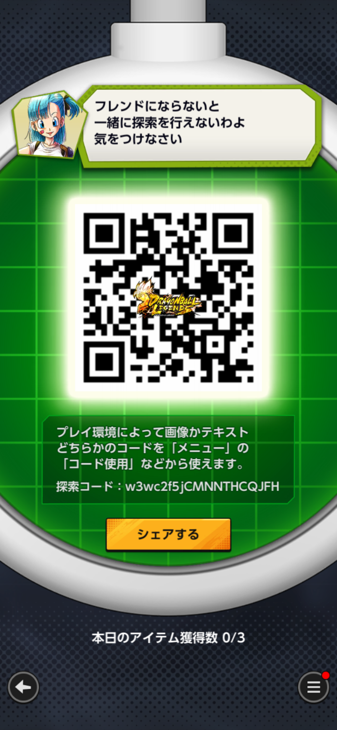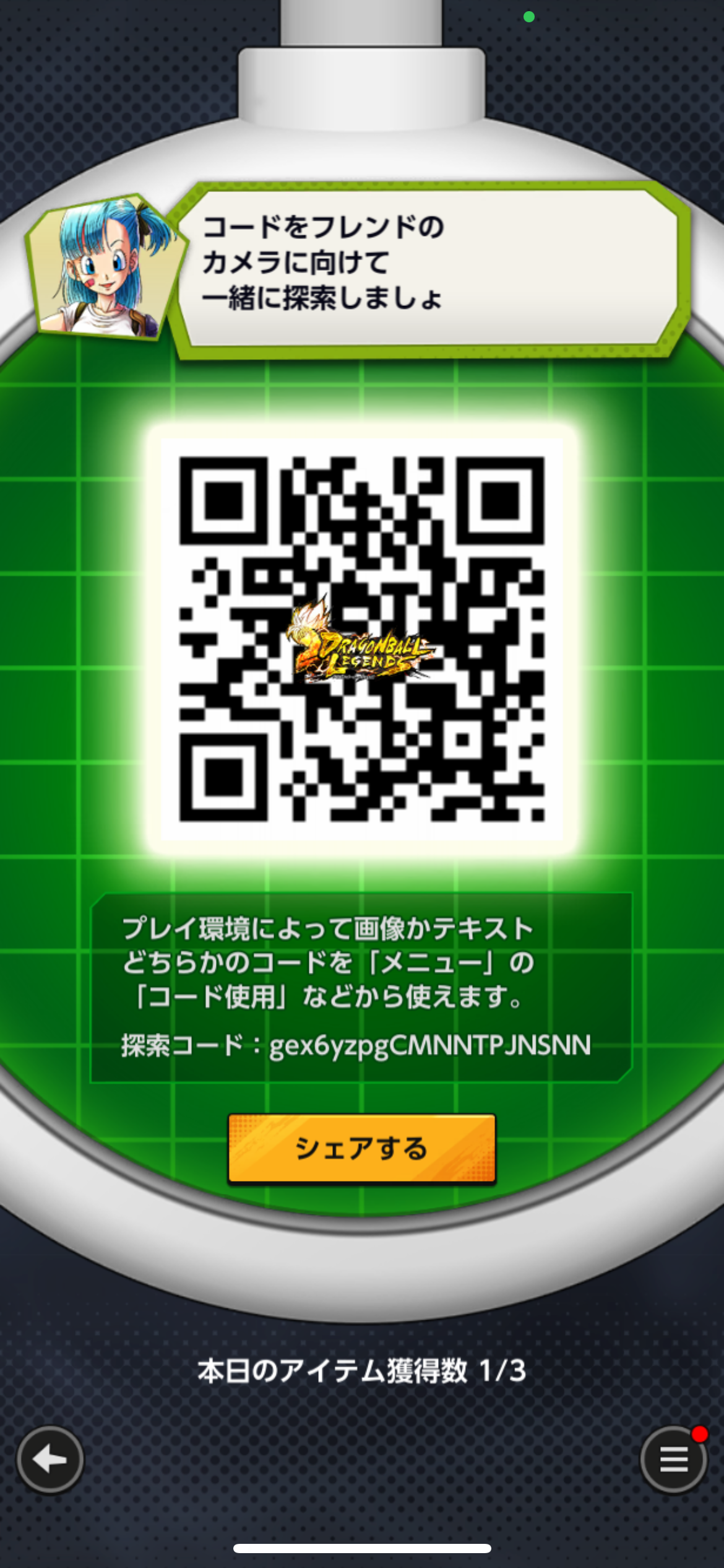 - フレンドのQRコードを読み込む事でドラゴンボールを探索できる