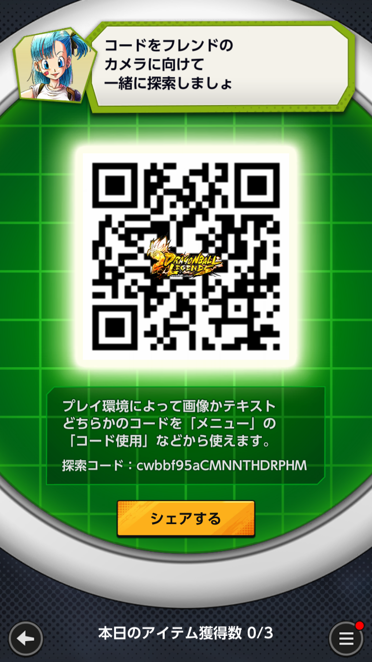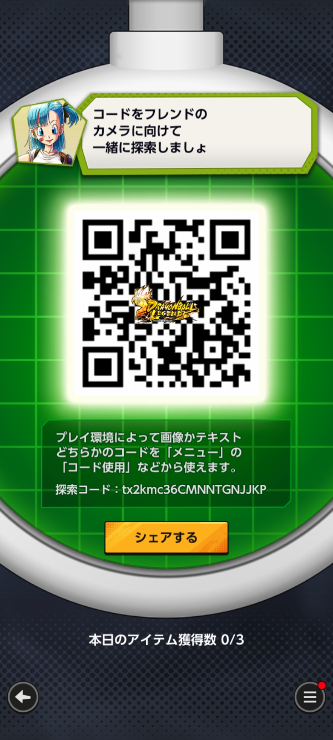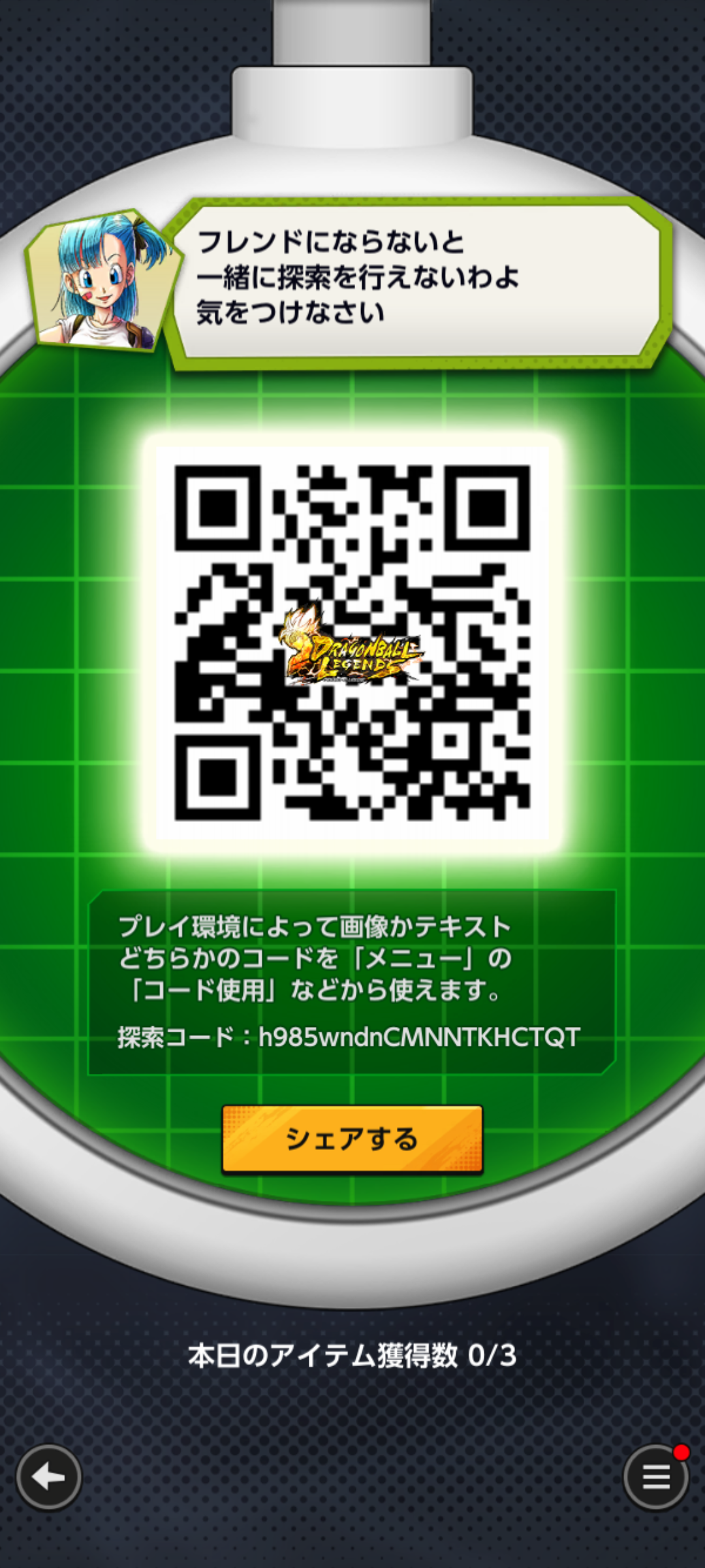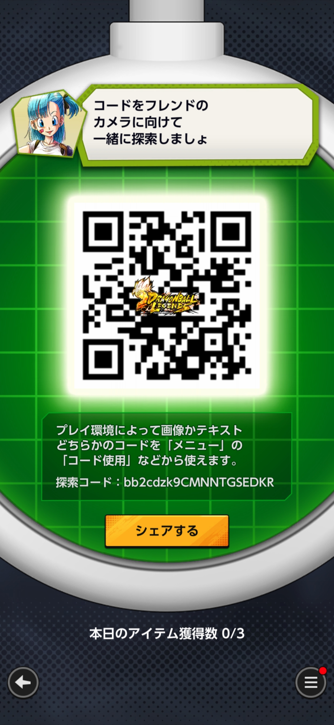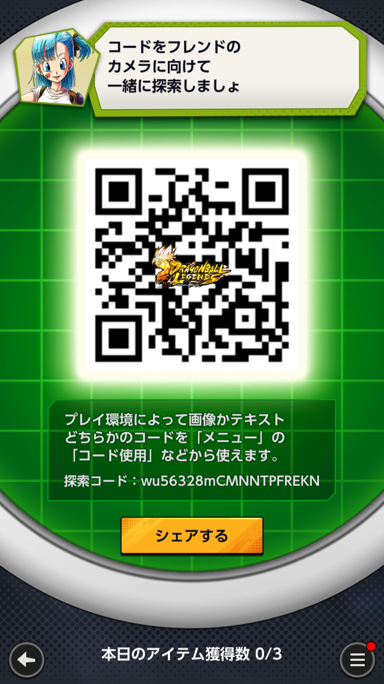 - フレンドのQRコードを読み込む事でドラゴンボールを探索できる