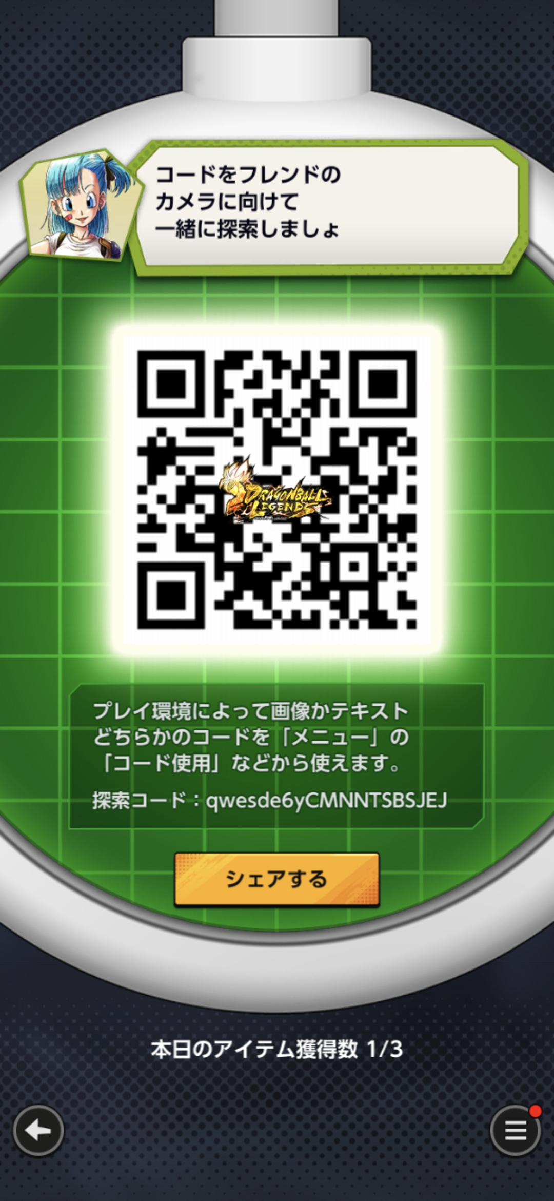 • フレンドのQRコードを読み込む事でドラゴンボールを探索できる