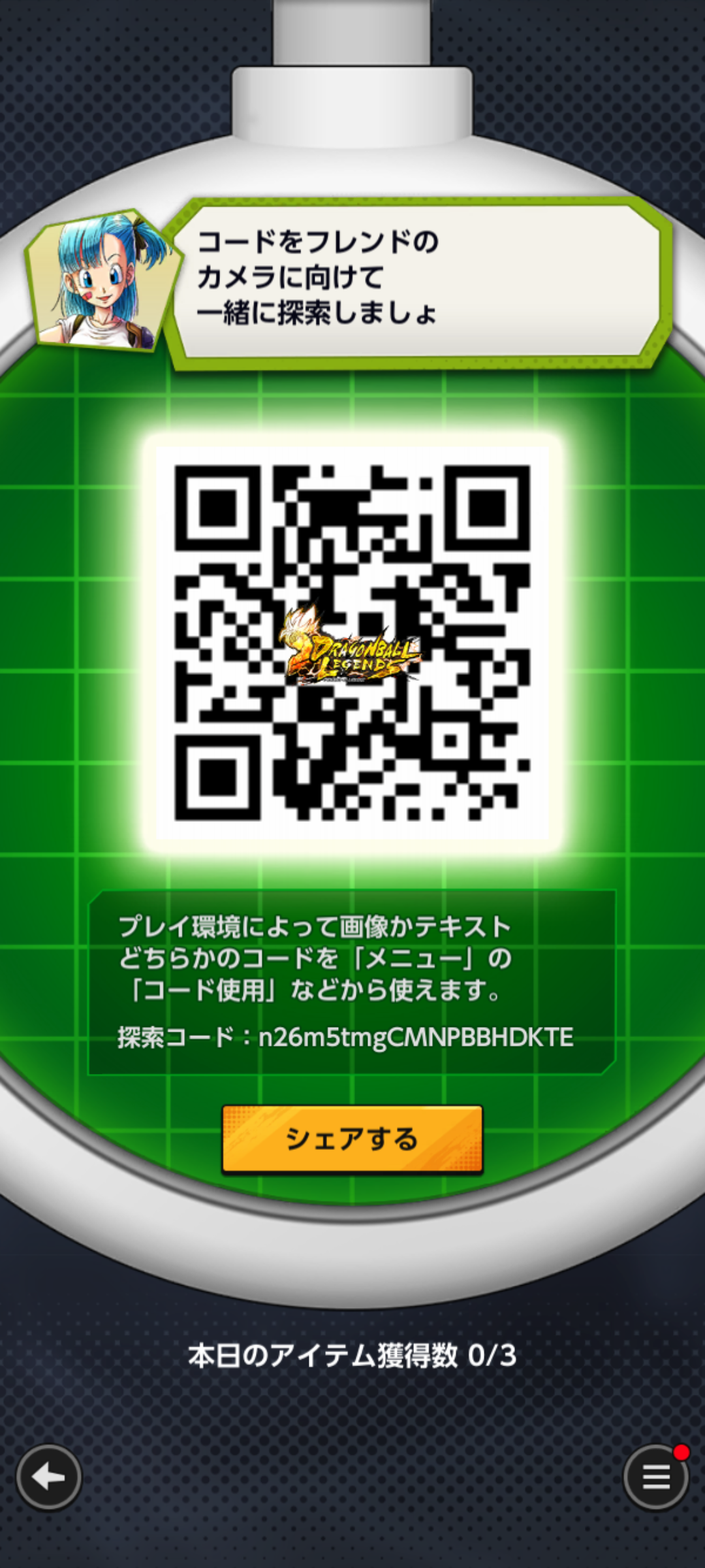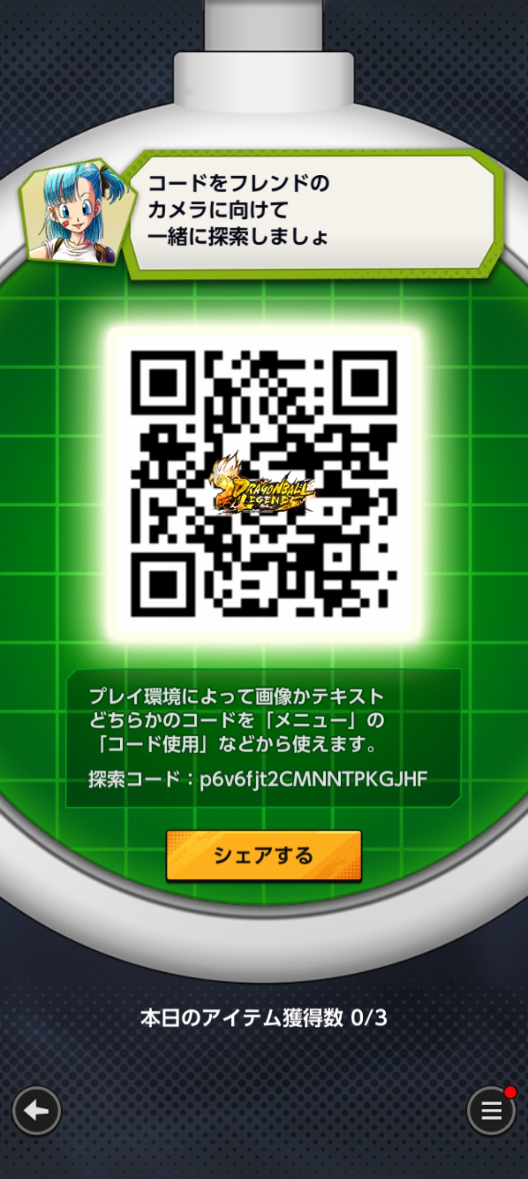 - フレンドのQRコードを読み込む事でドラゴンボールを探索できる