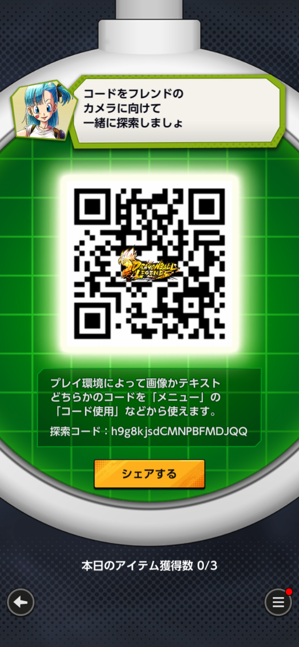 - フレンドのQRコードを読み込む事でドラゴンボールを探索できる
