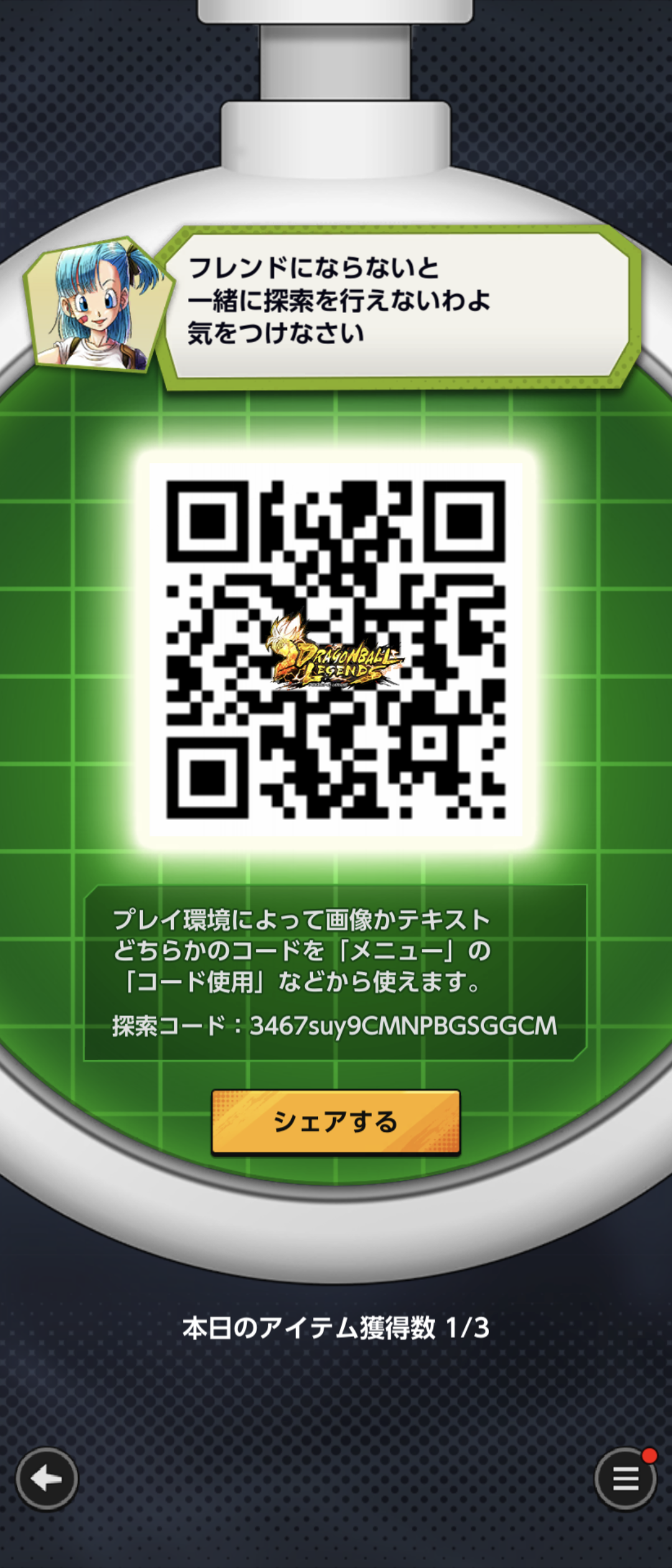 - フレンドのQRコードを読み込む事でドラゴンボールを探索できる