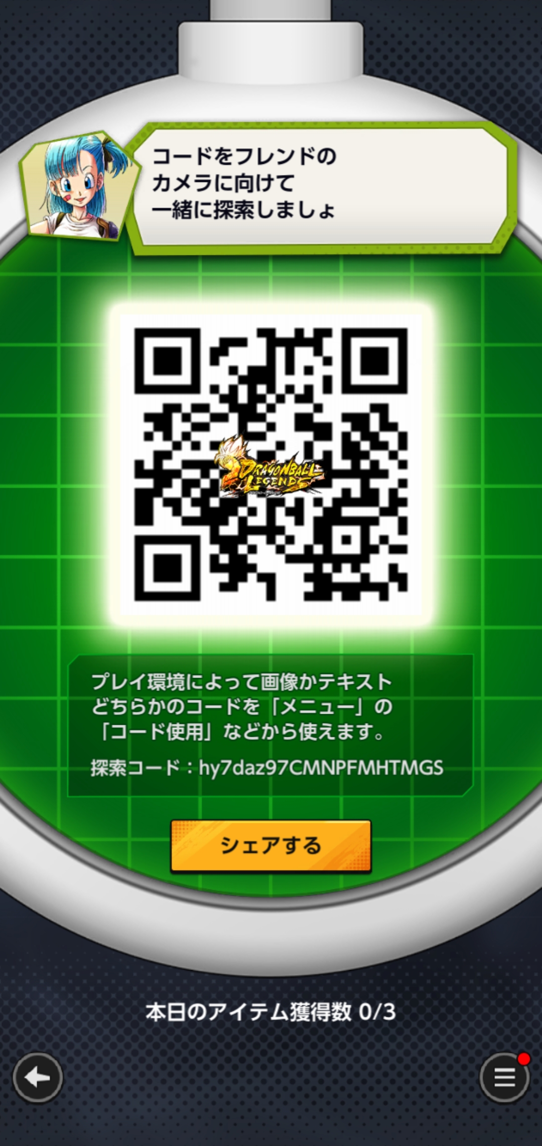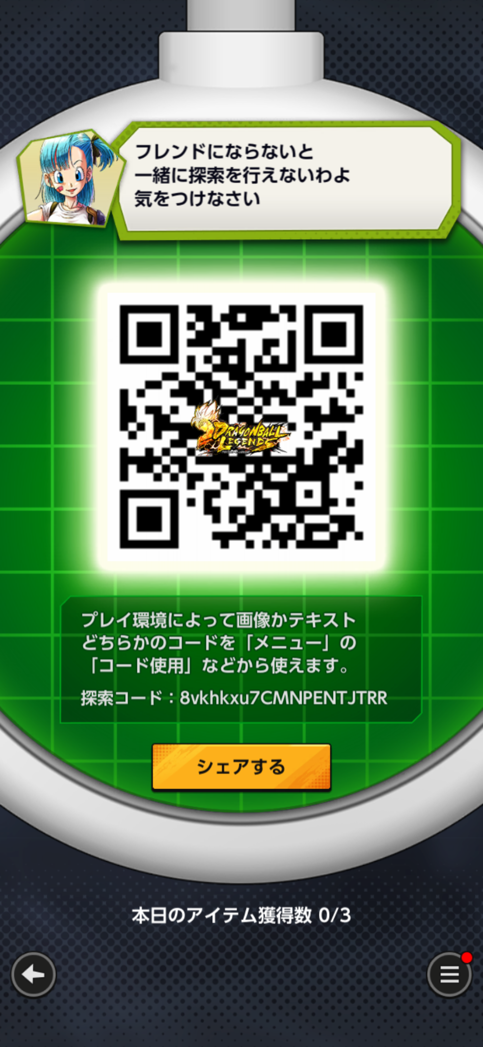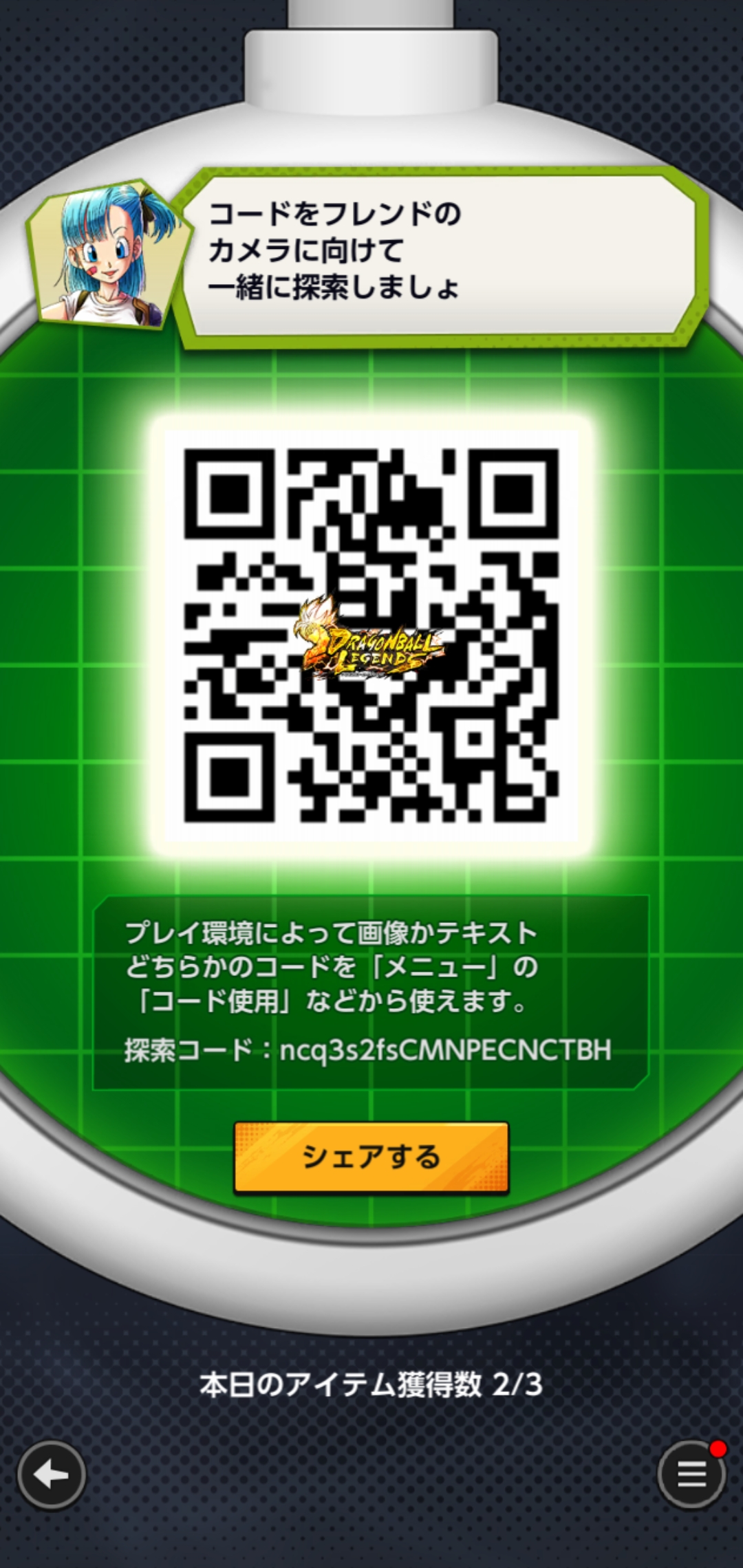 • フレンドのQRコードを読み込む事でドラゴンボールを探索できる