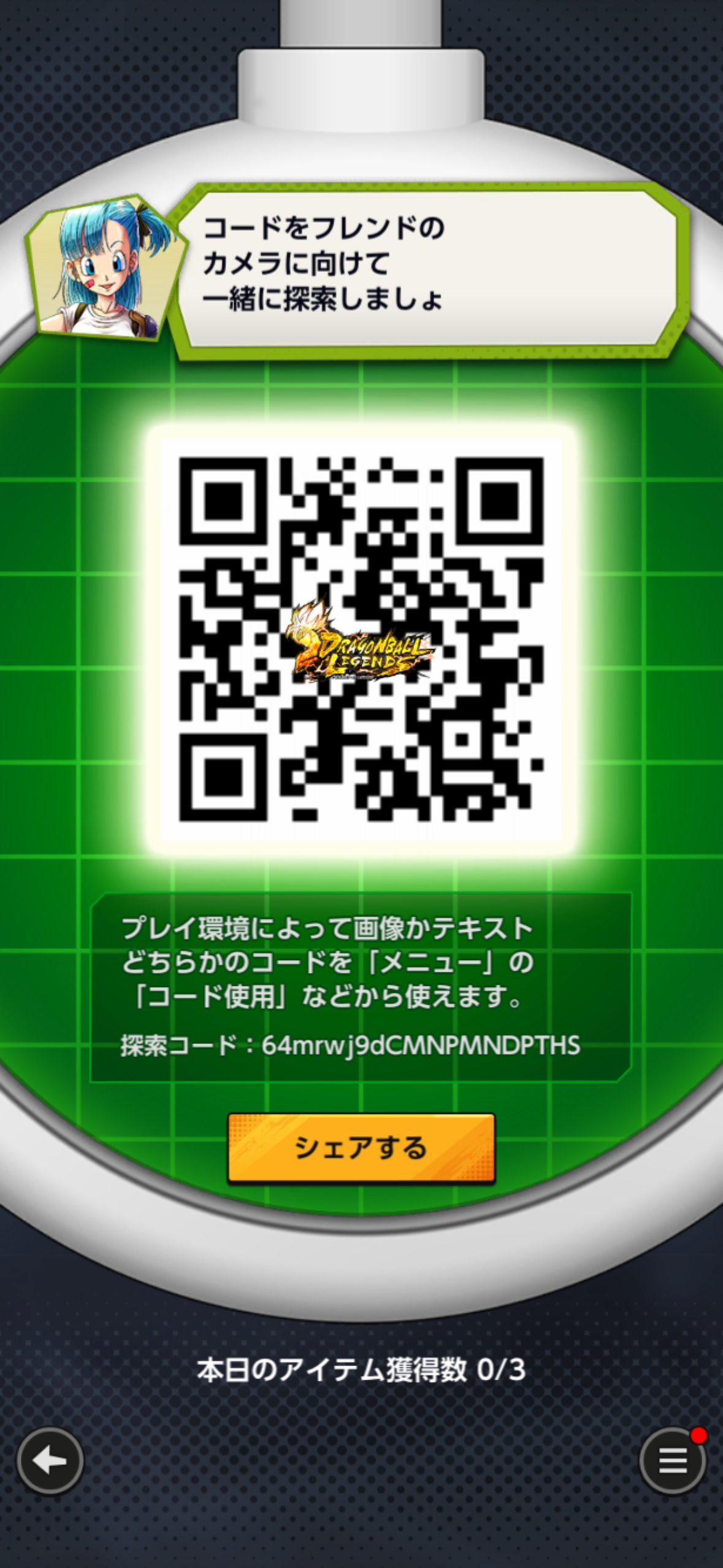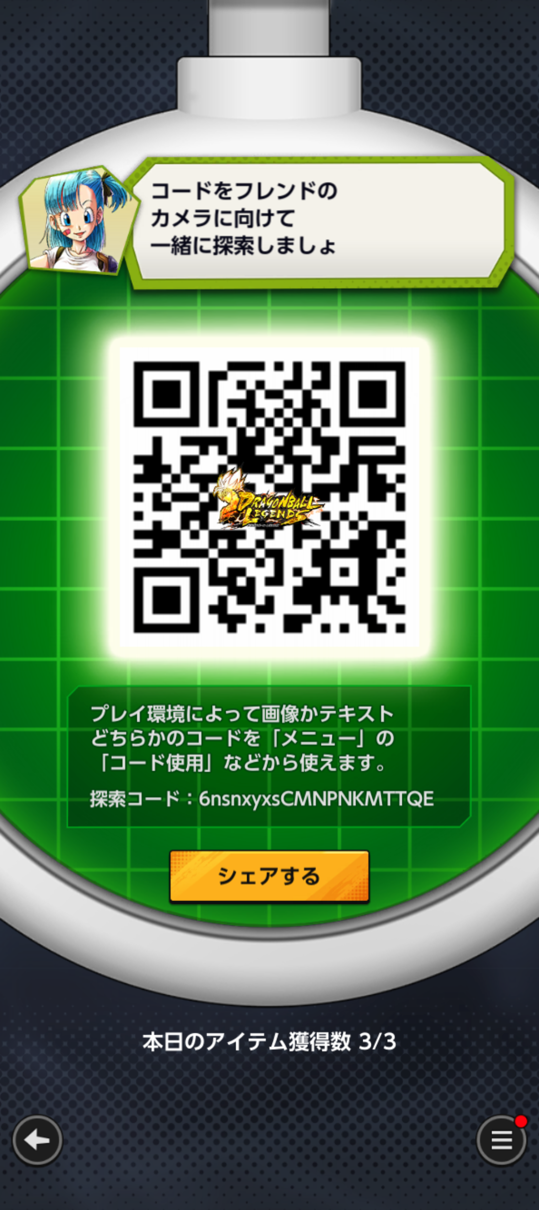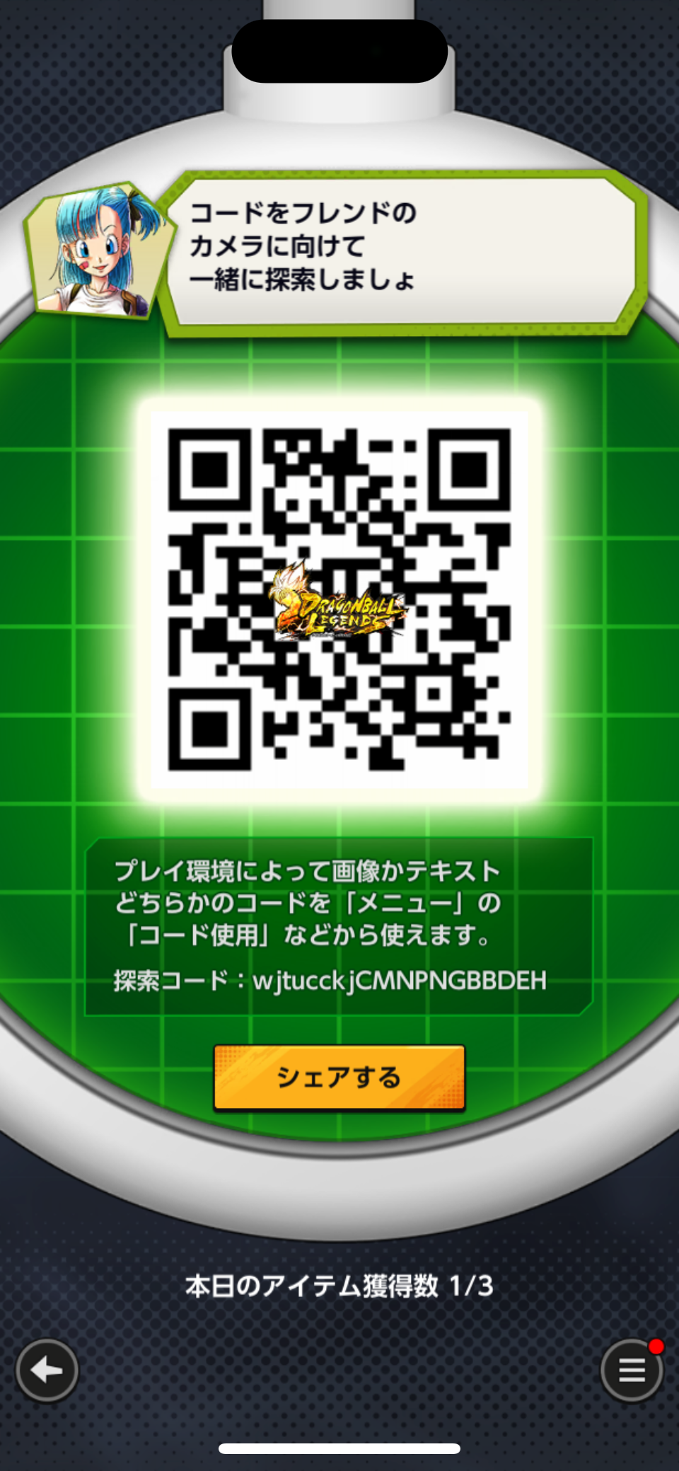 - フレンドのQRコードを読み込む事でドラゴンボールを探索できる