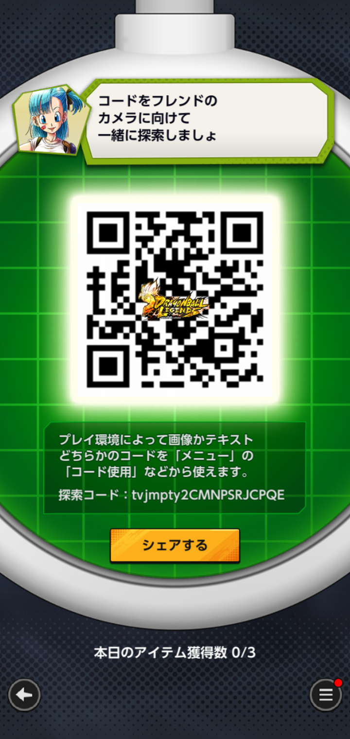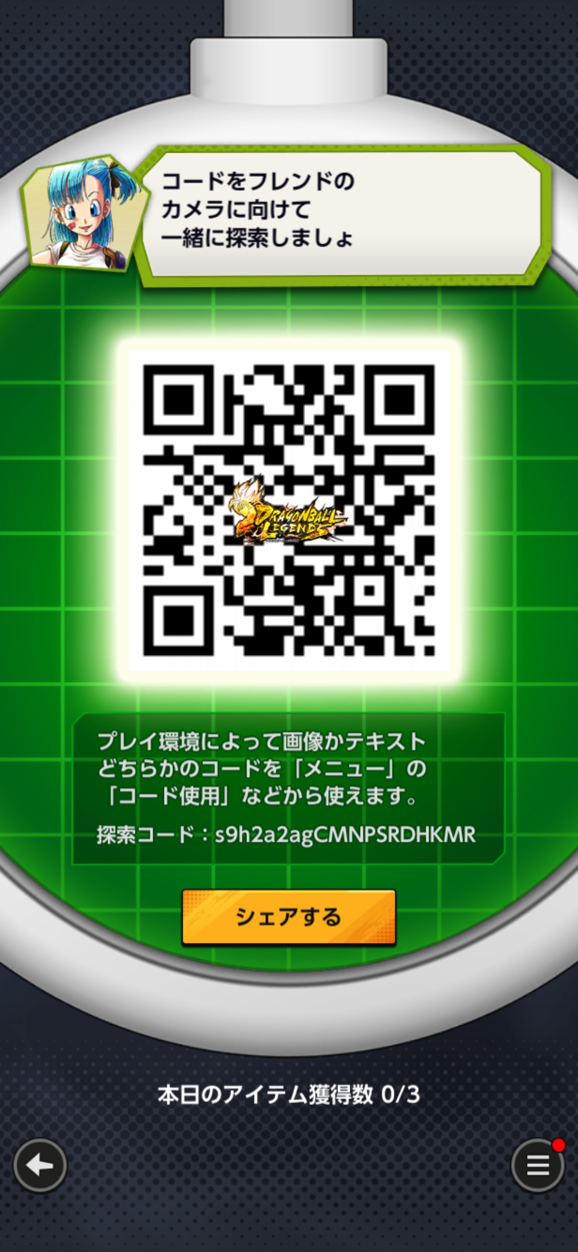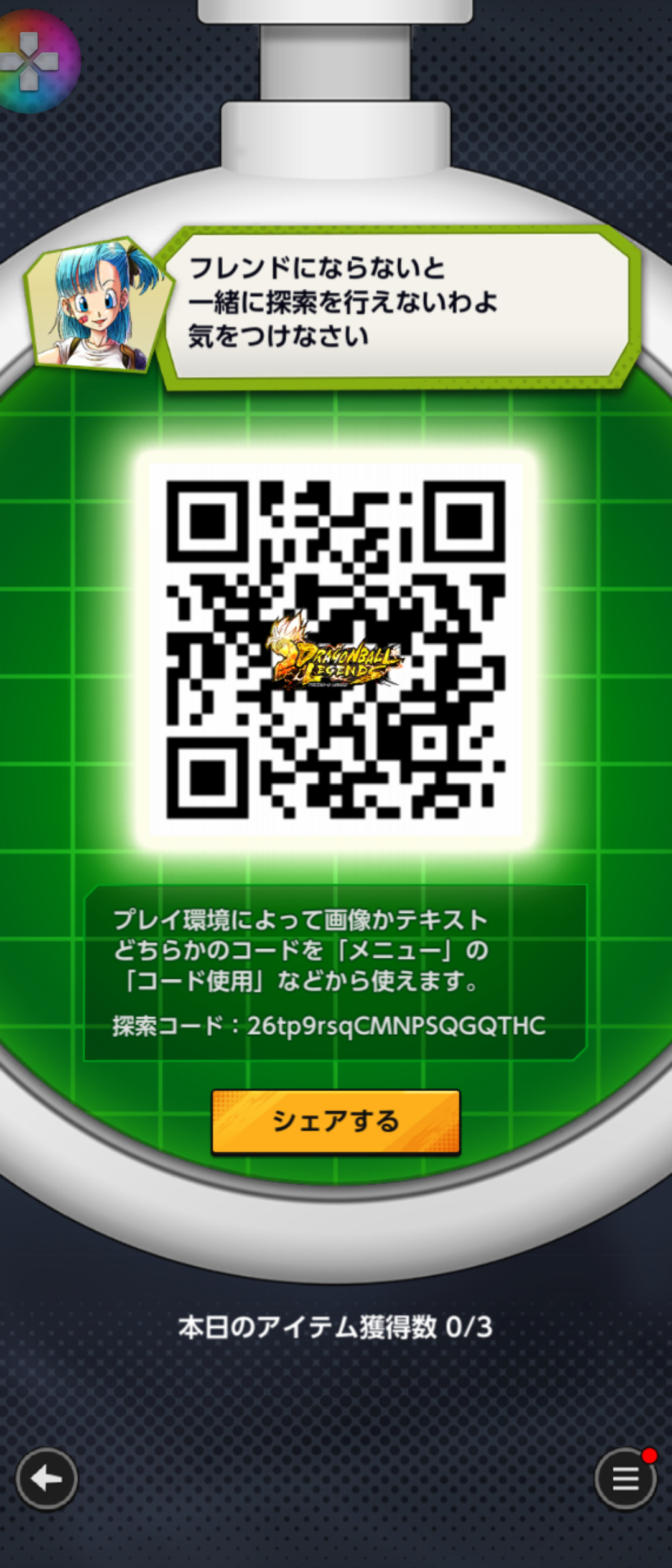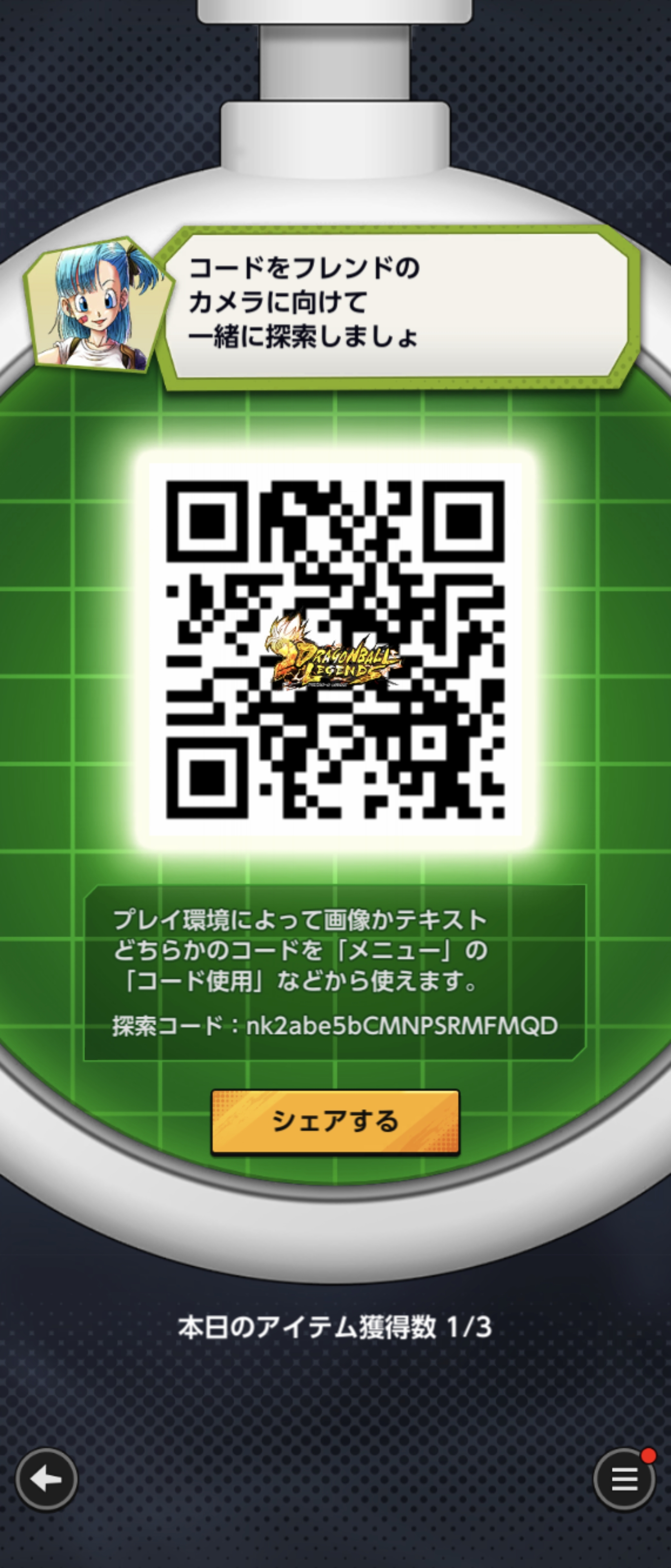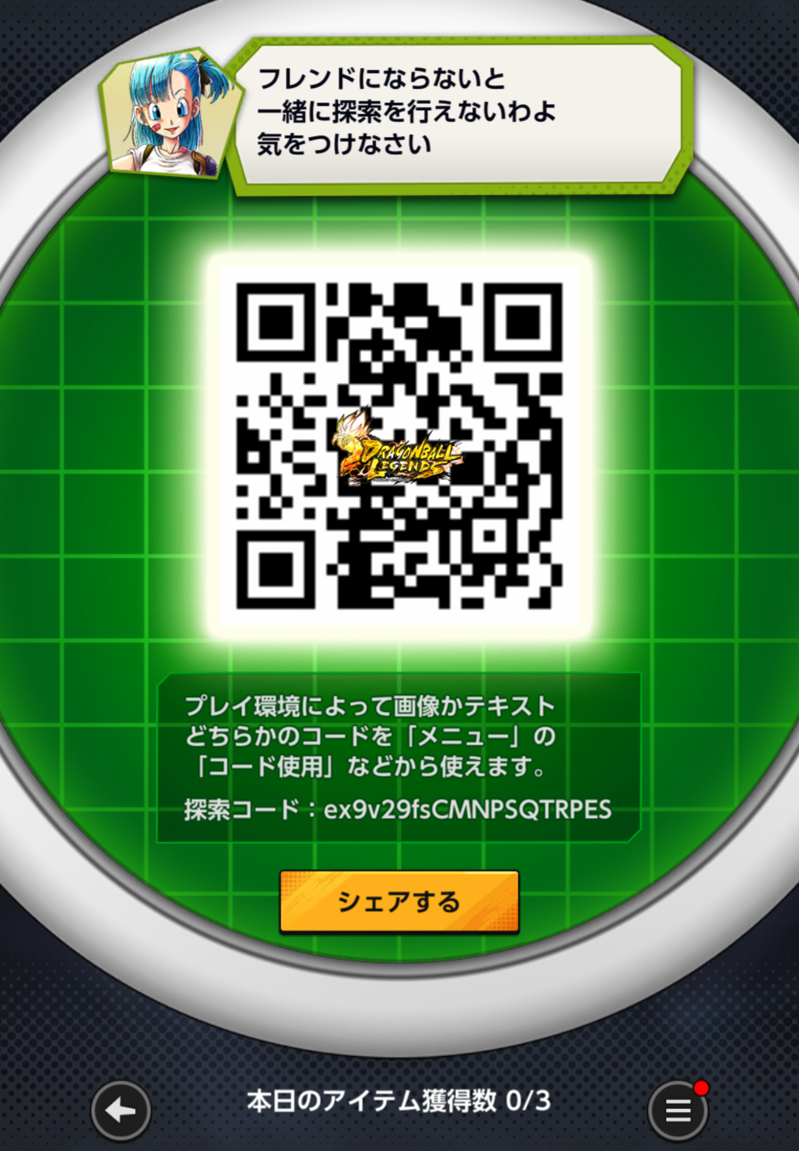 - フレンドのQRコードを読み込む事でドラゴンボールを探索できる