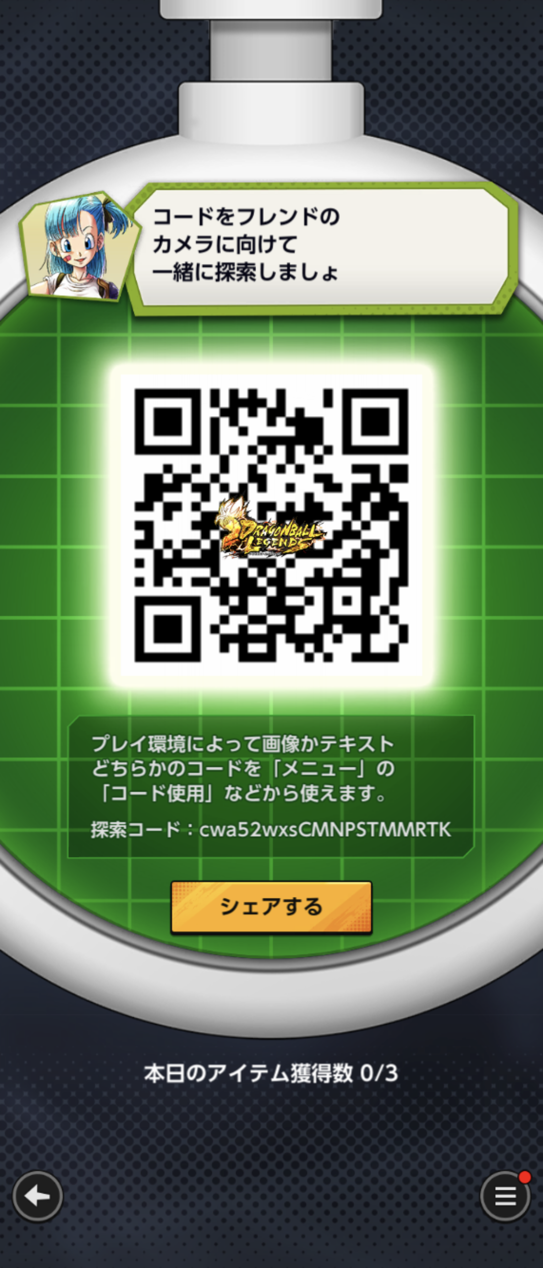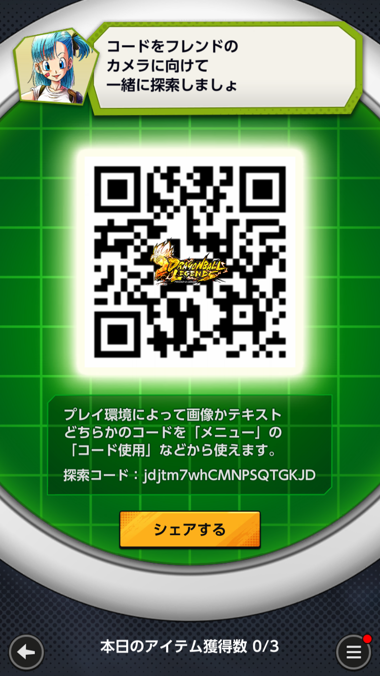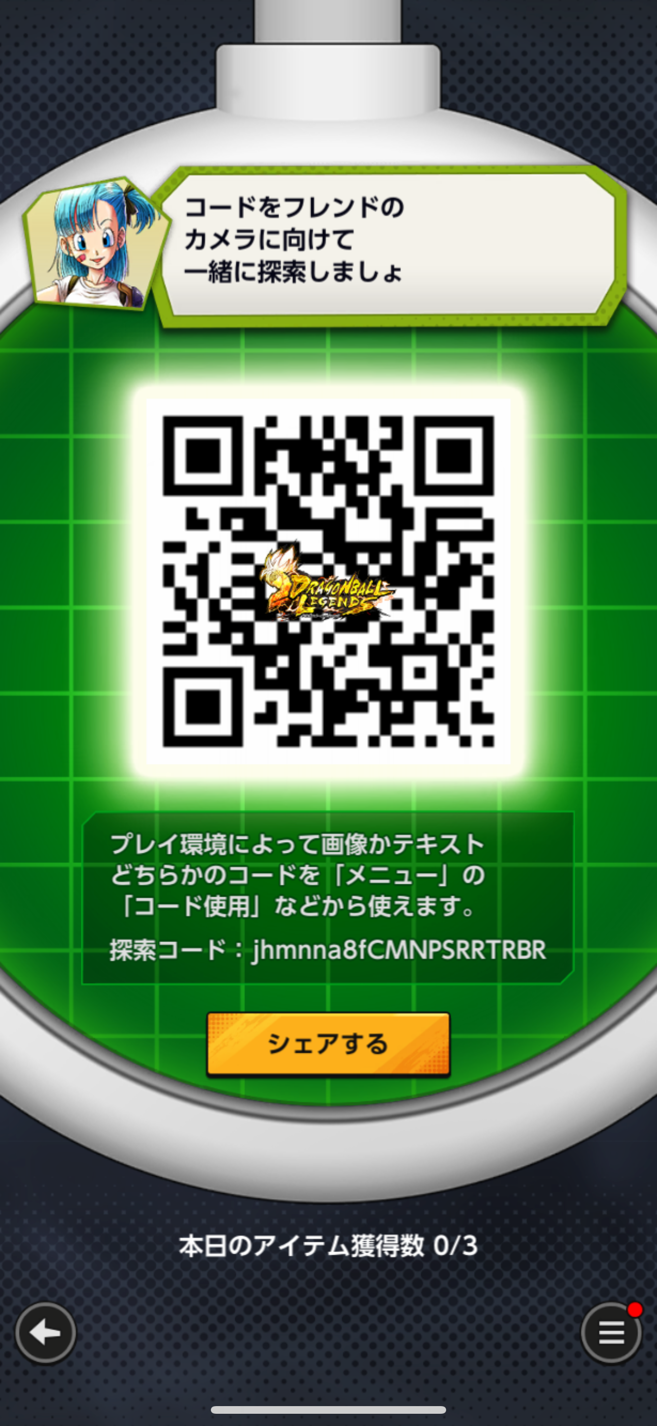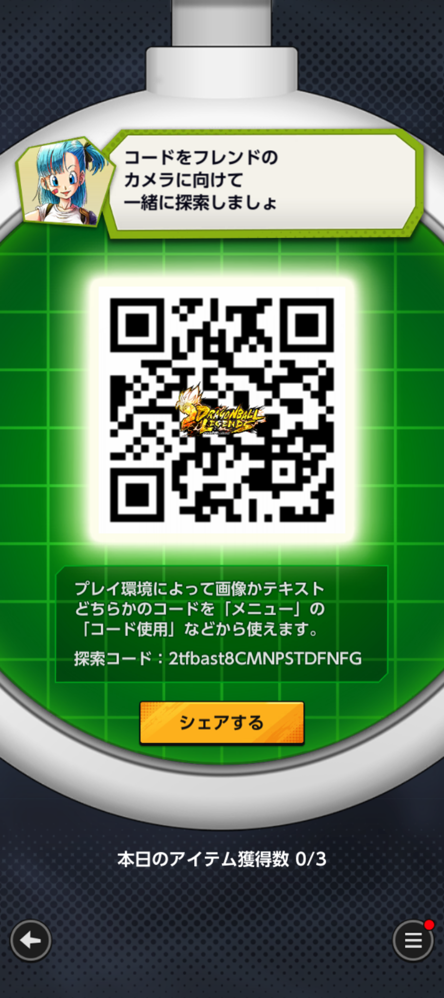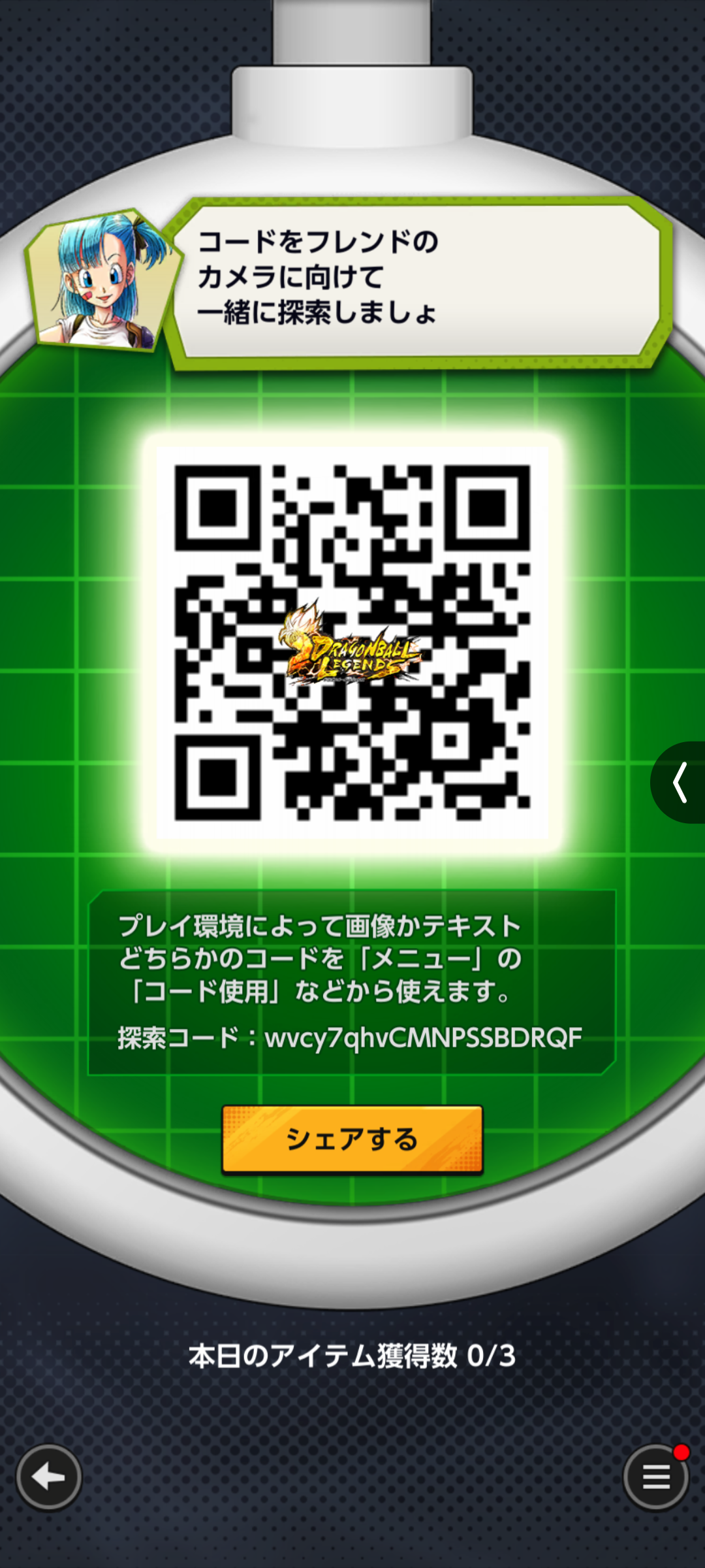 - フレンドのQRコードを読み込む事でドラゴンボールを探索できる