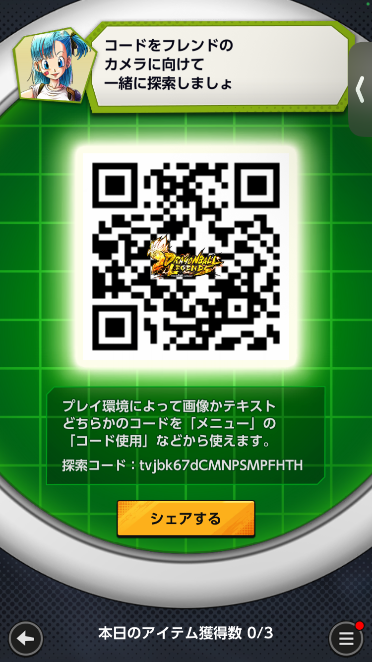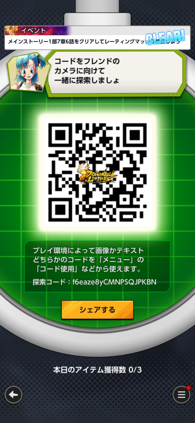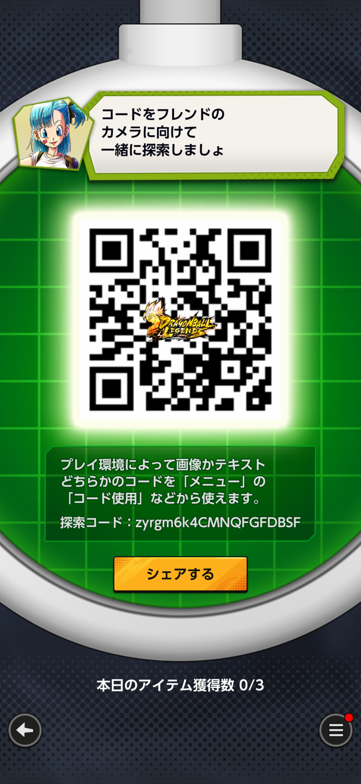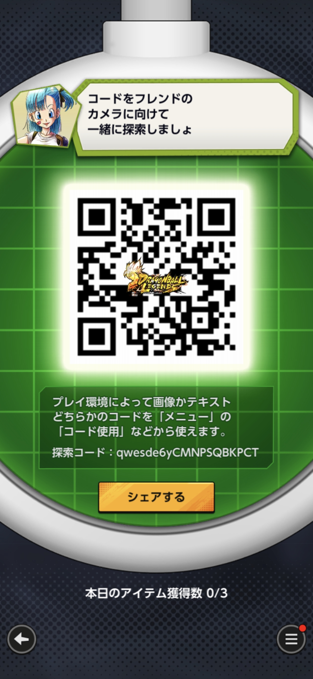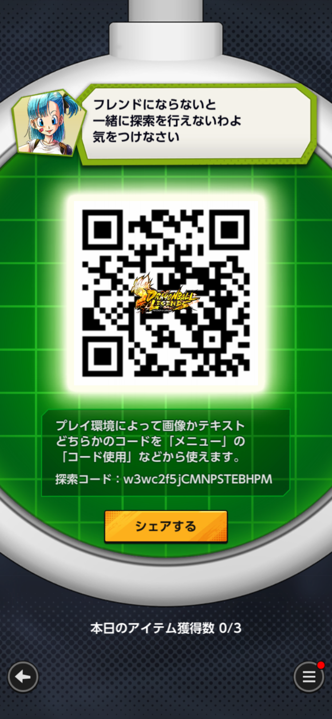 - フレンドのQRコードを読み込む事でドラゴンボールを探索できる