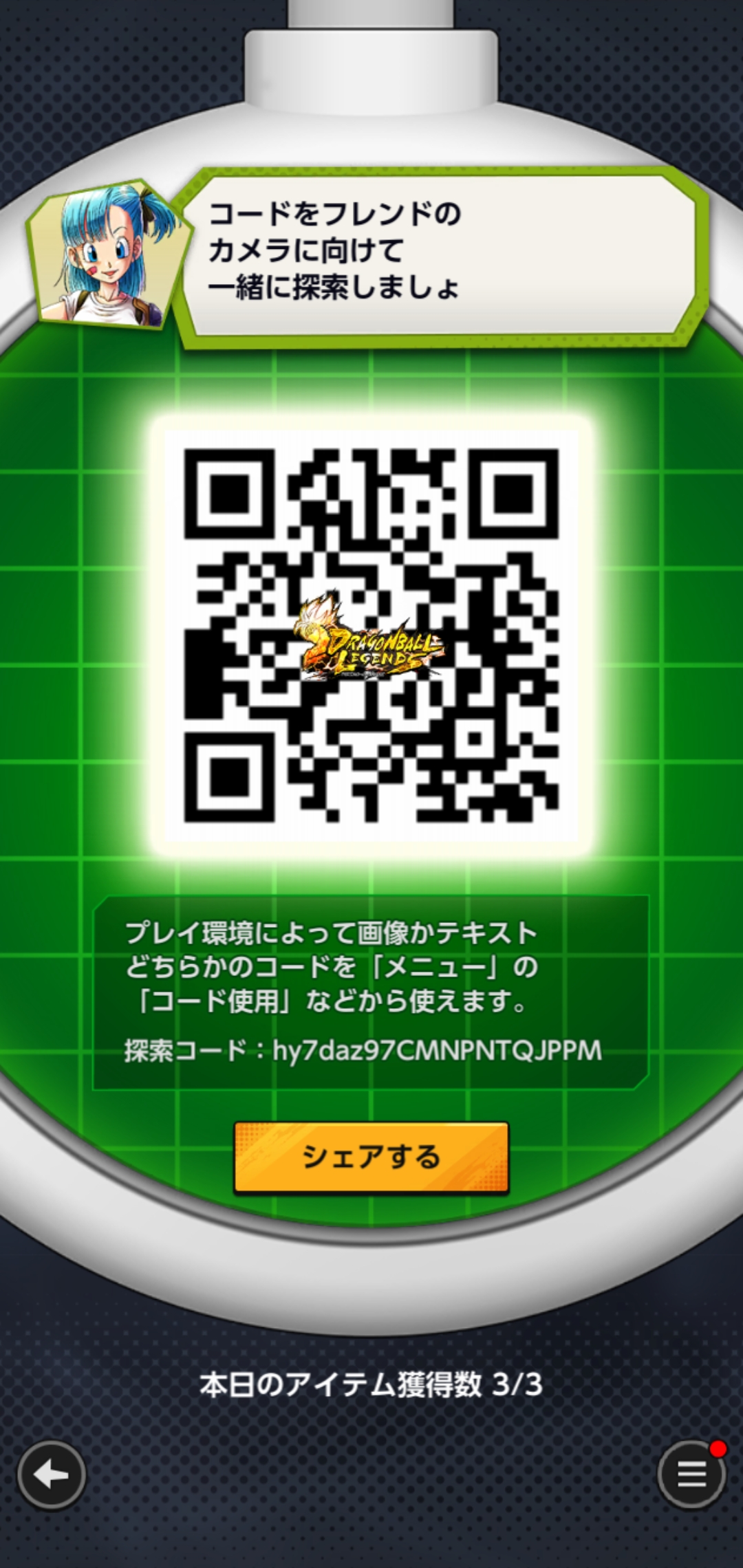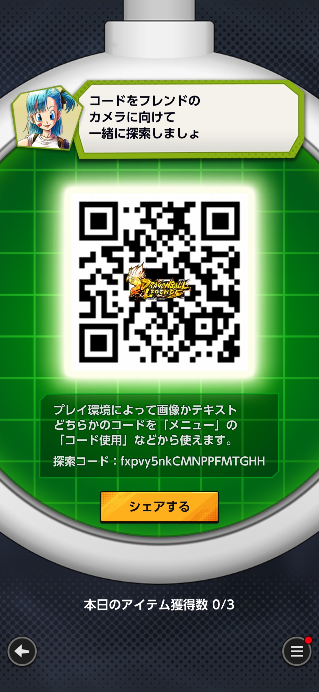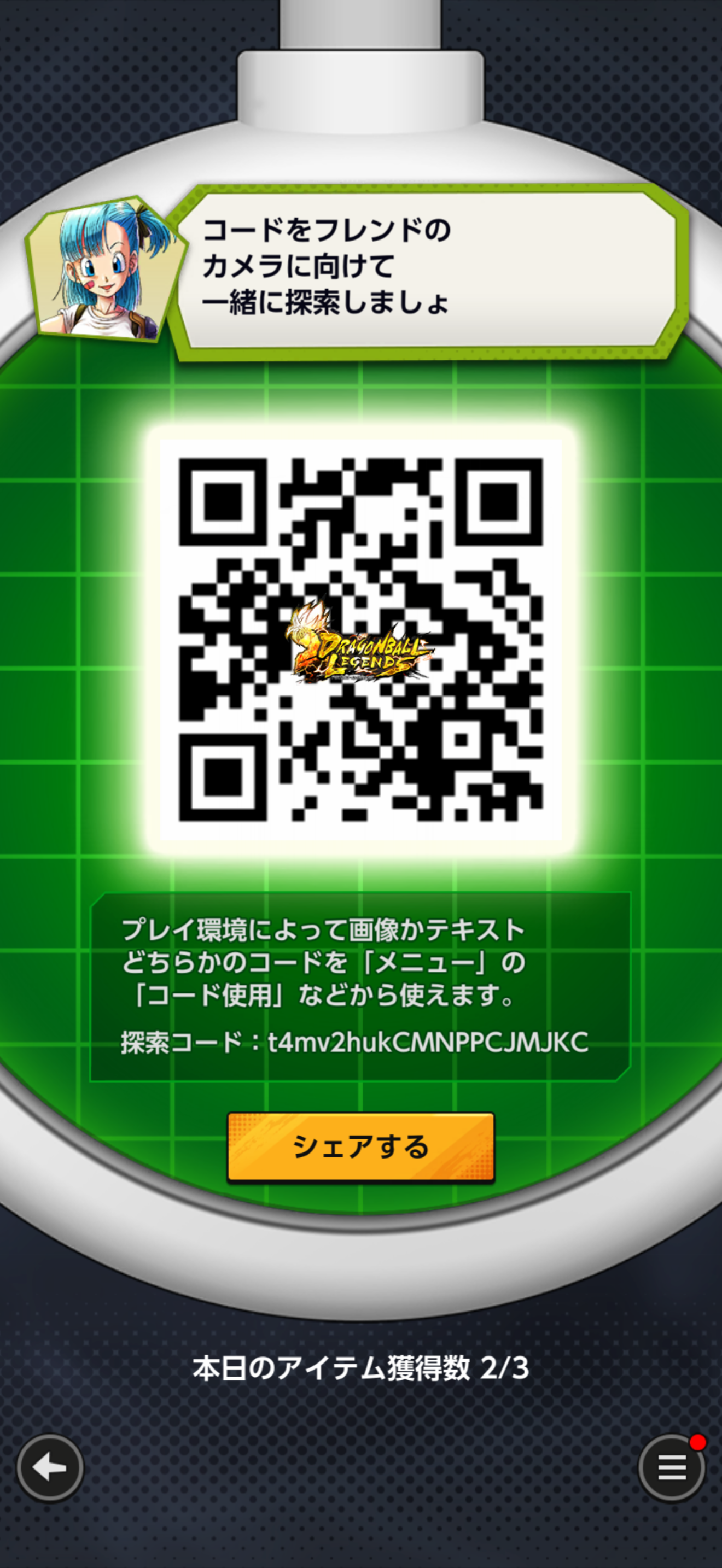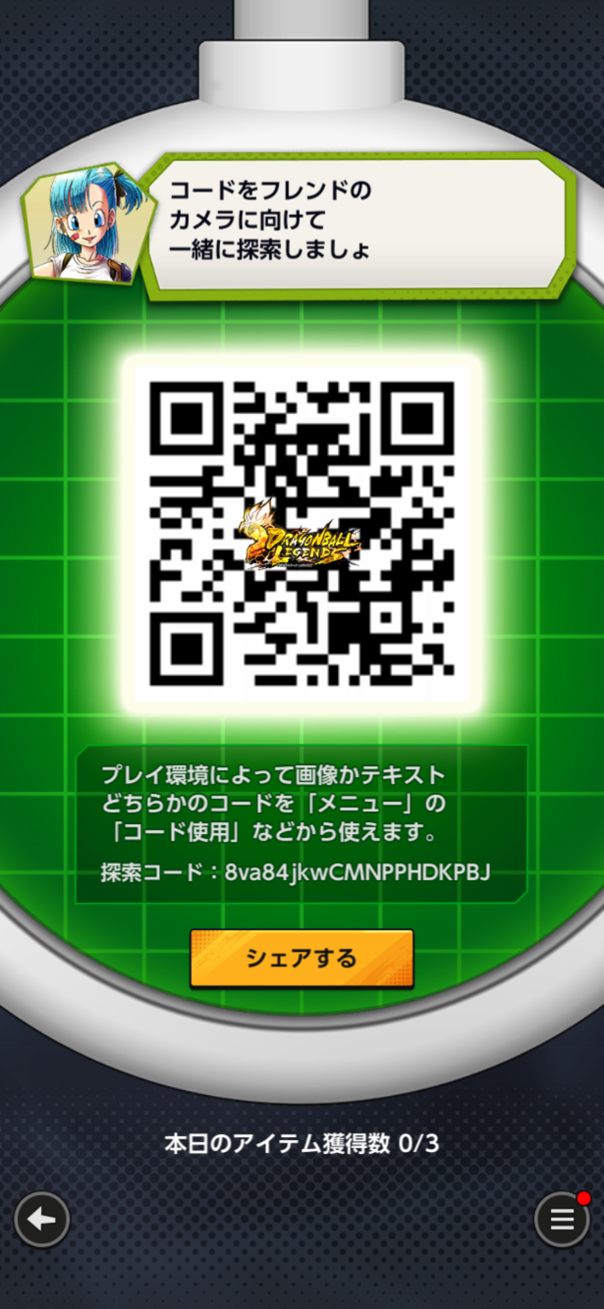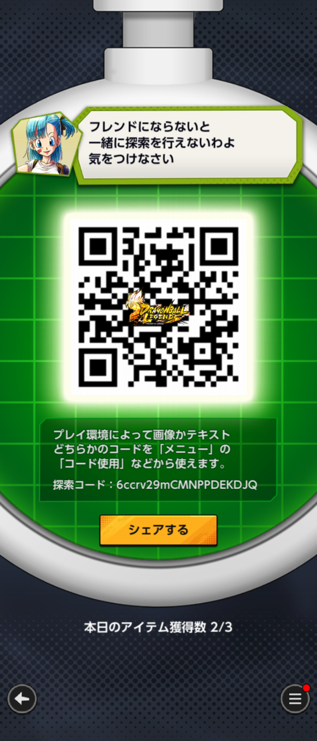 - フレンドのQRコードを読み込む事でドラゴンボールを探索できる