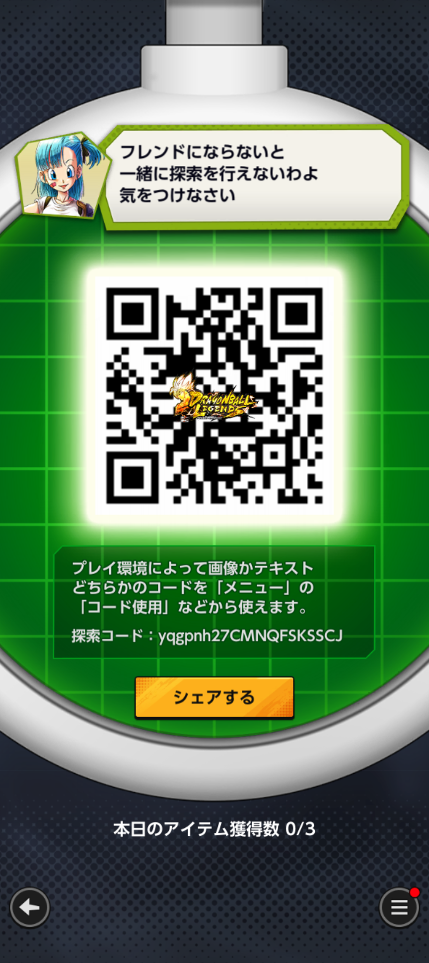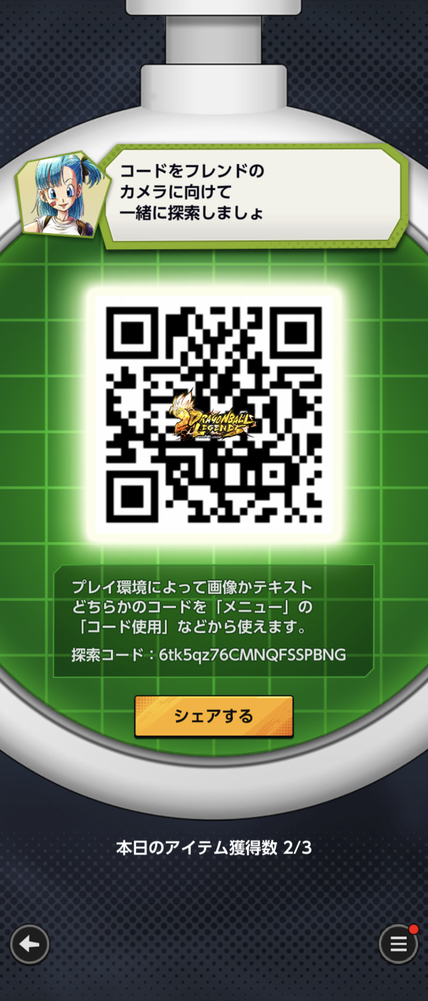• フレンドのQRコードを読み込む事でドラゴンボールを探索できる