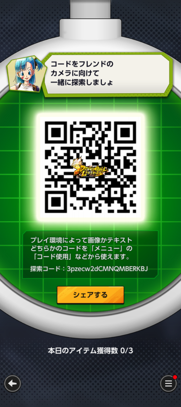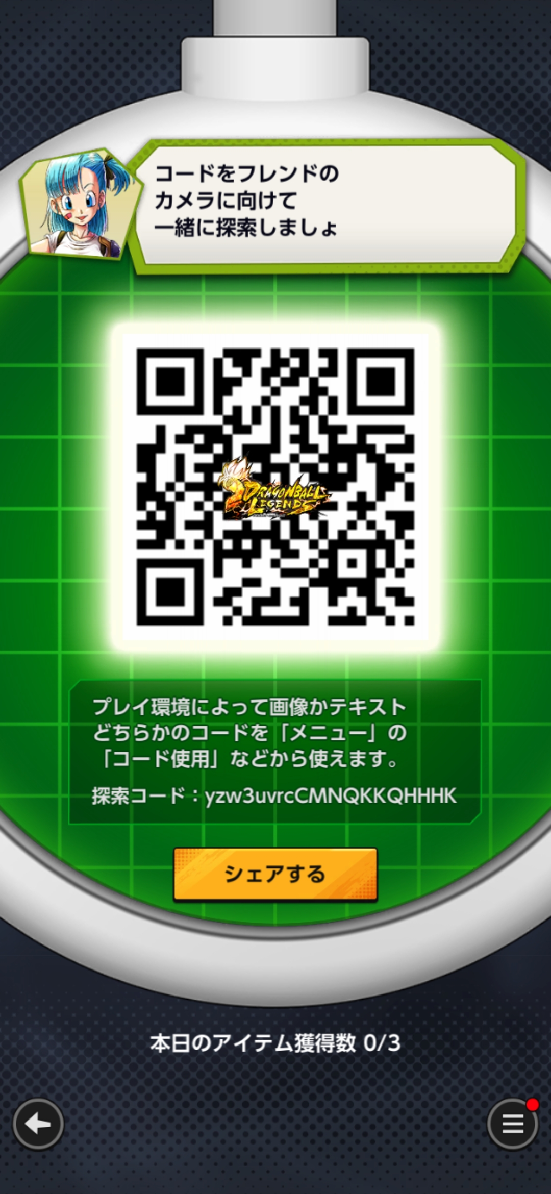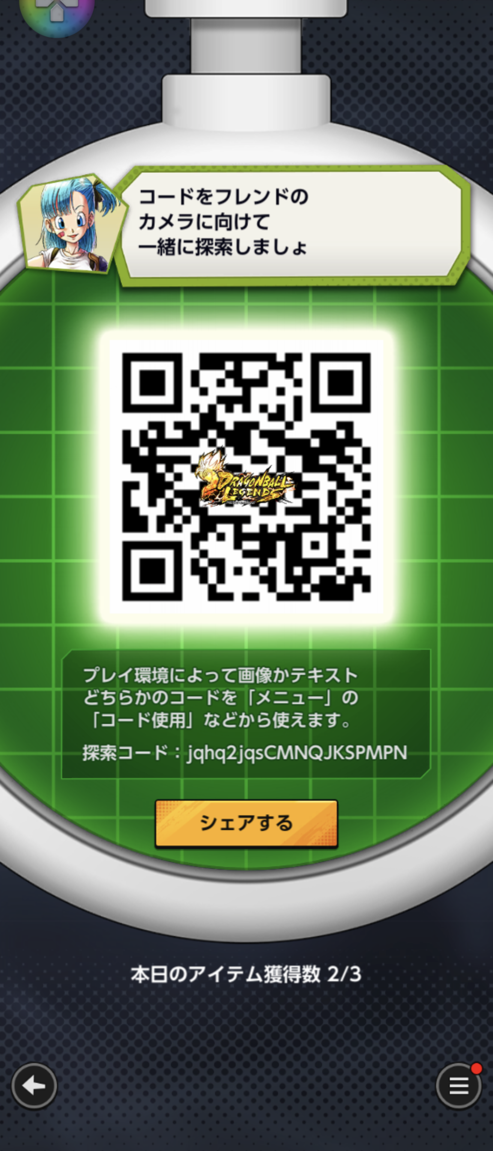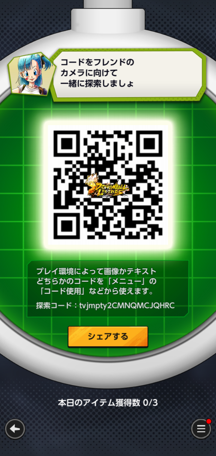 • フレンドのQRコードを読み込む事でドラゴンボールを探索できる