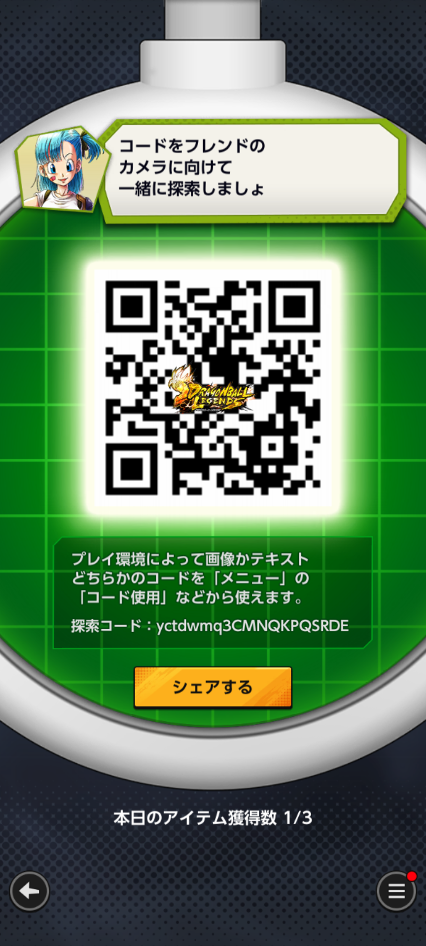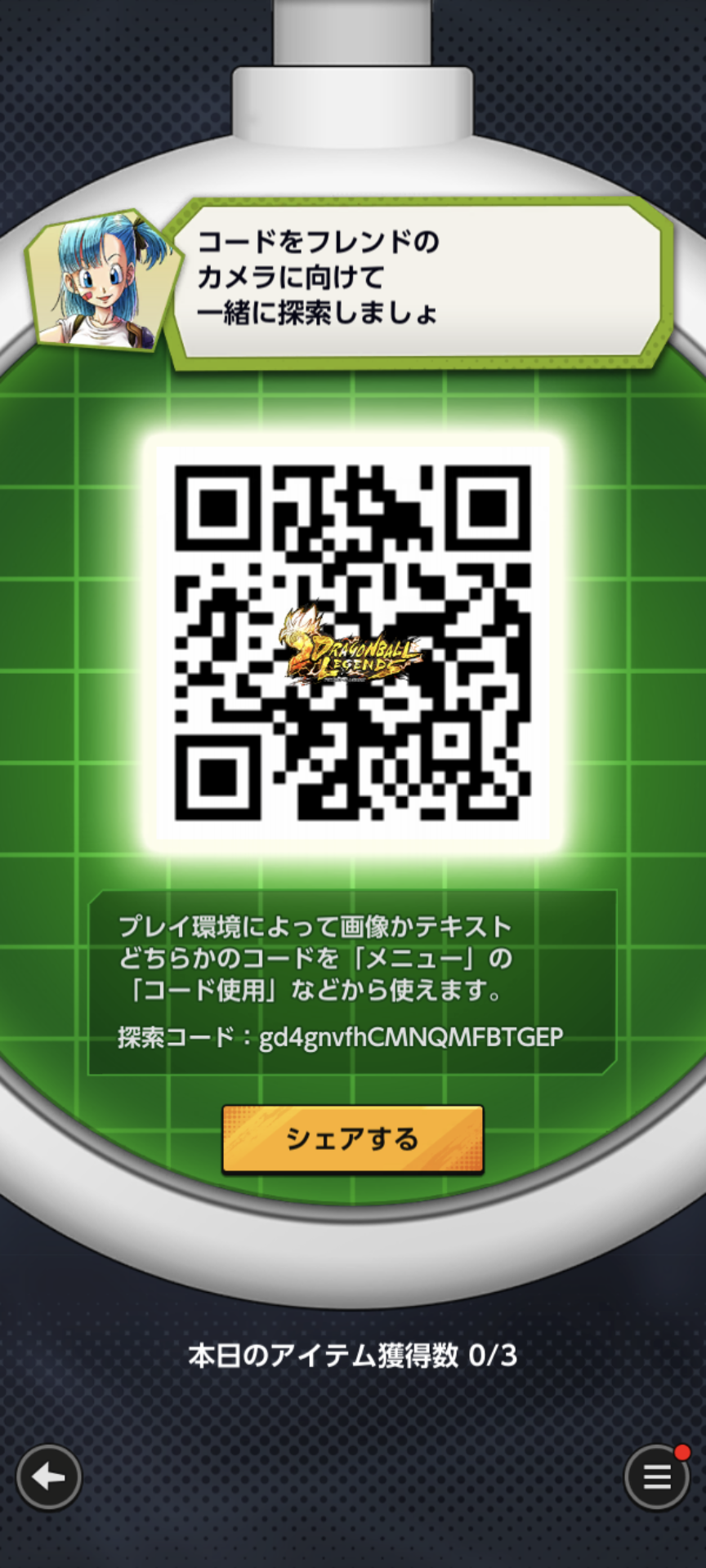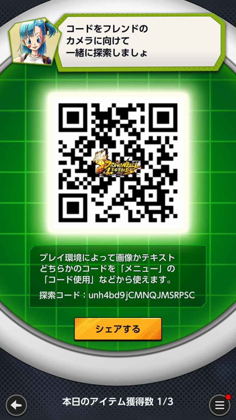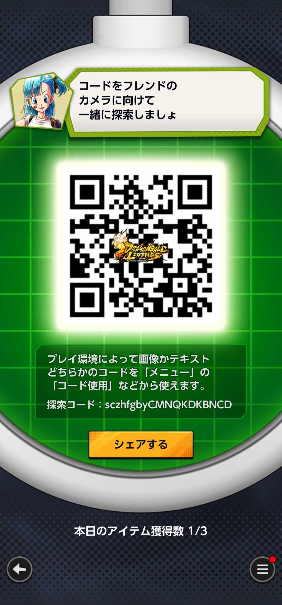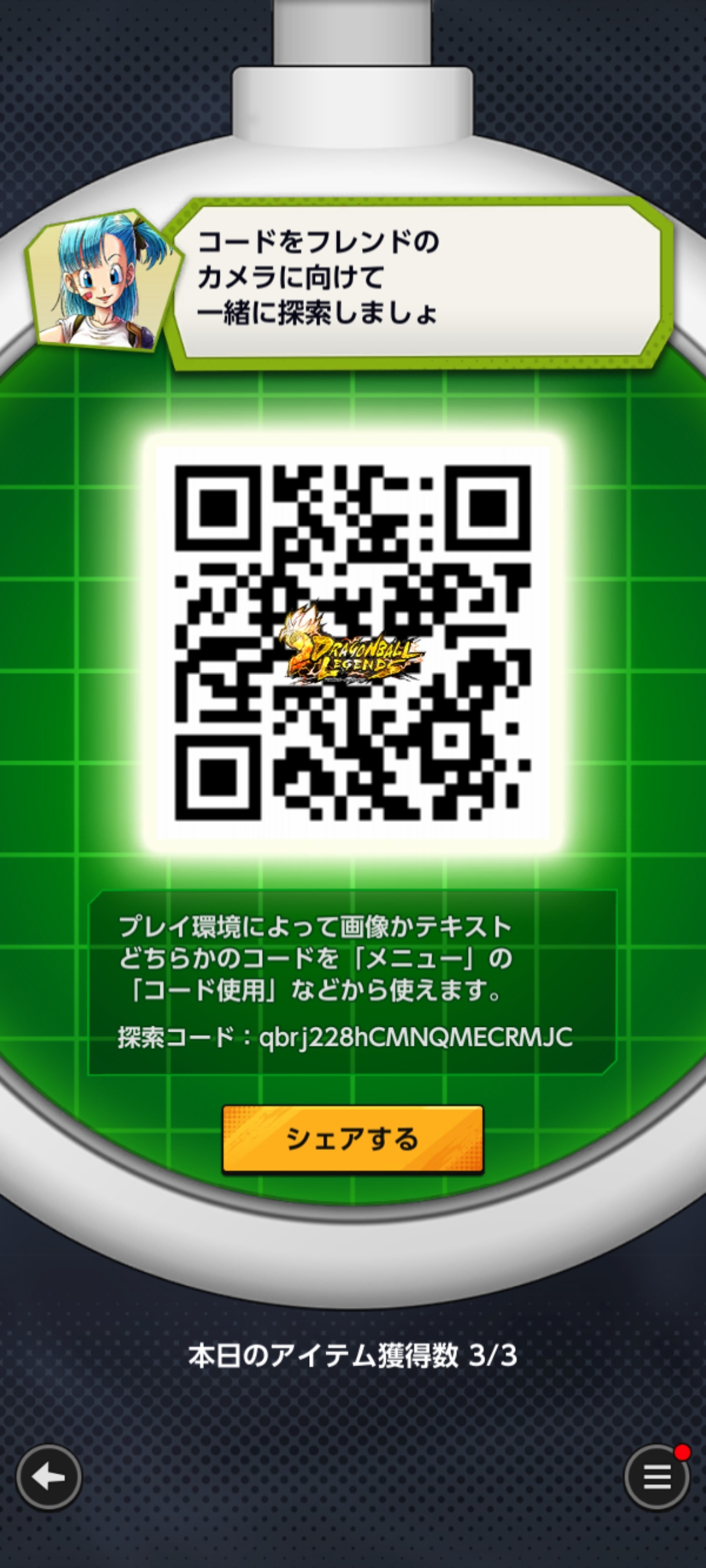 • フレンドのQRコードを読み込む事でドラゴンボールを探索できる