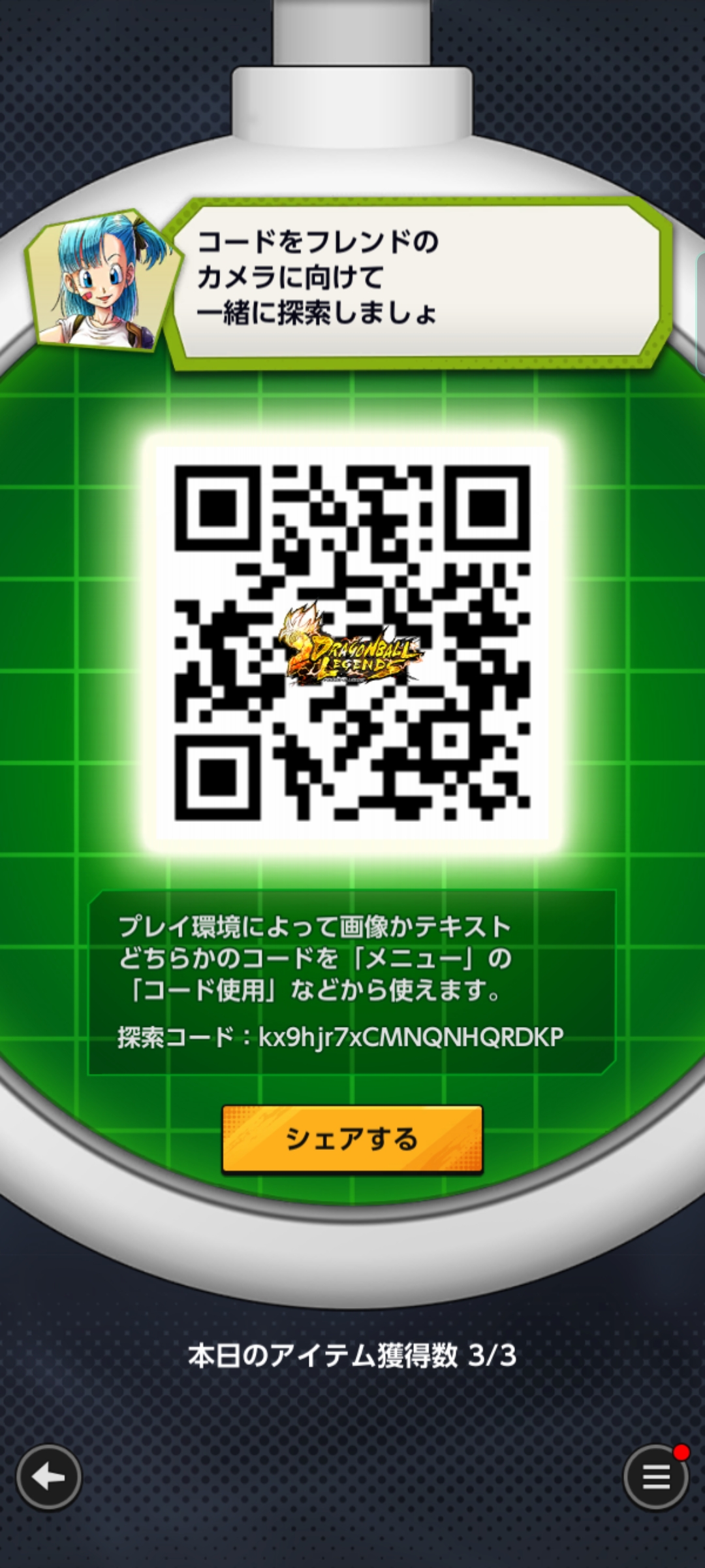 - フレンドのQRコードを読み込む事でドラゴンボールを探索できる