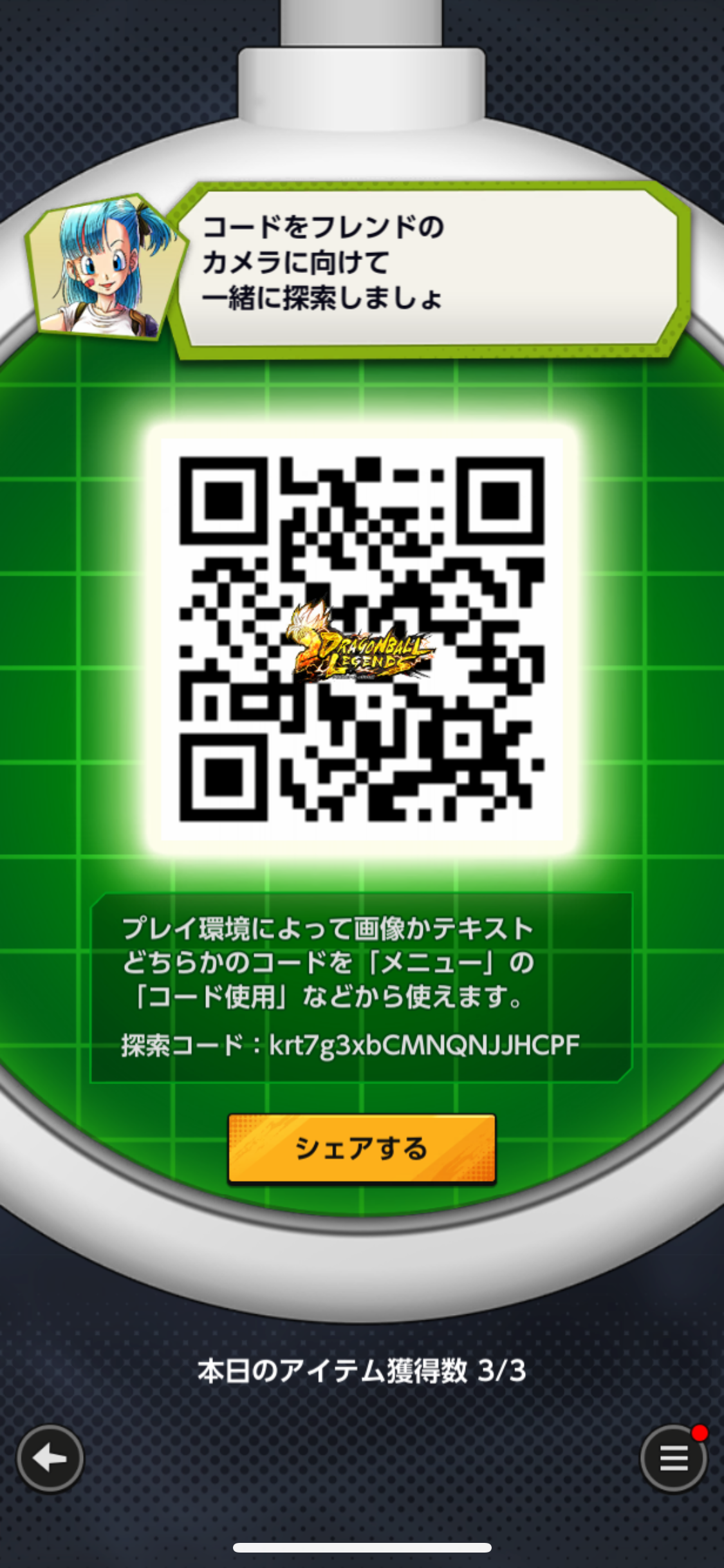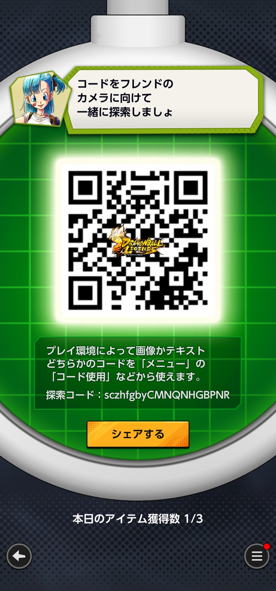 • フレンドのQRコードを読み込む事でドラゴンボールを探索できる
