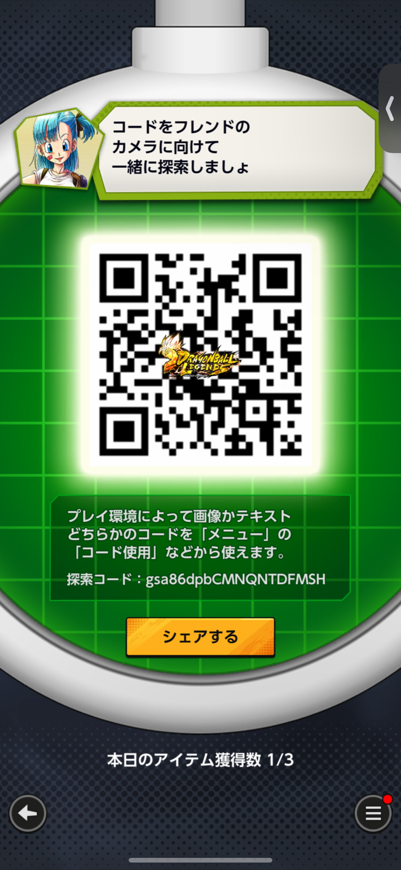 - フレンドのQRコードを読み込む事でドラゴンボールを探索できる