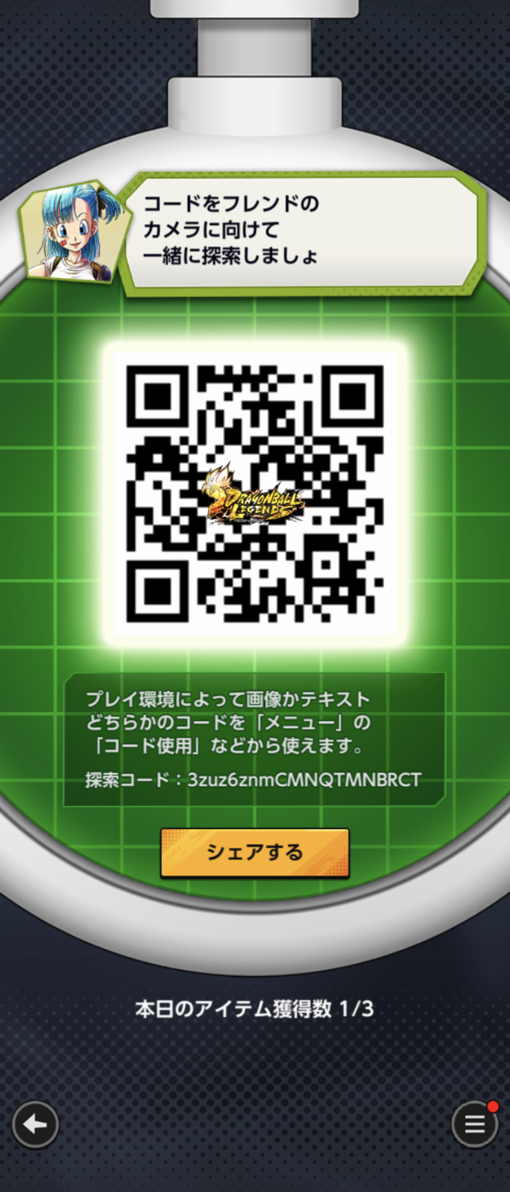 - フレンドのQRコードを読み込む事でドラゴンボールを探索できる