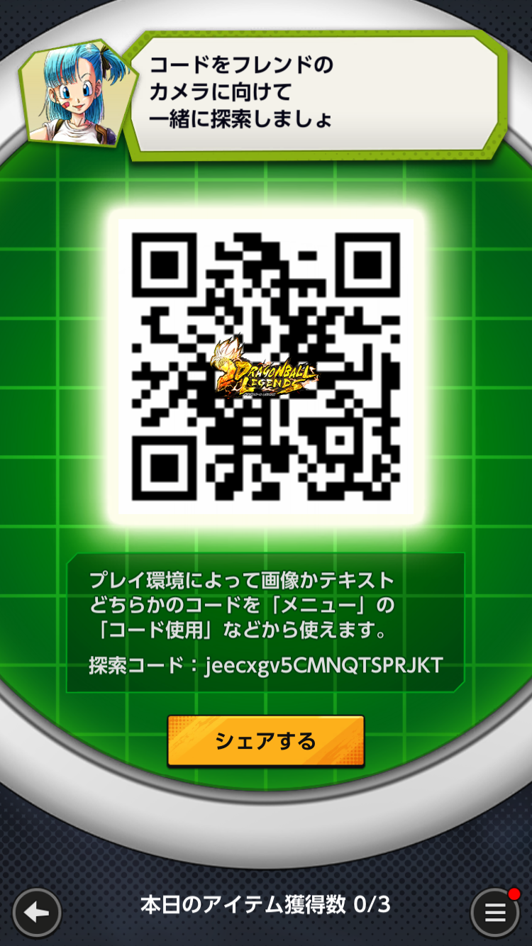 - フレンドのQRコードを読み込む事でドラゴンボールを探索できる